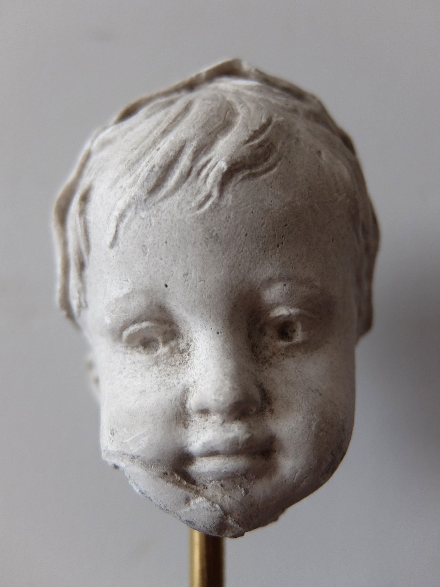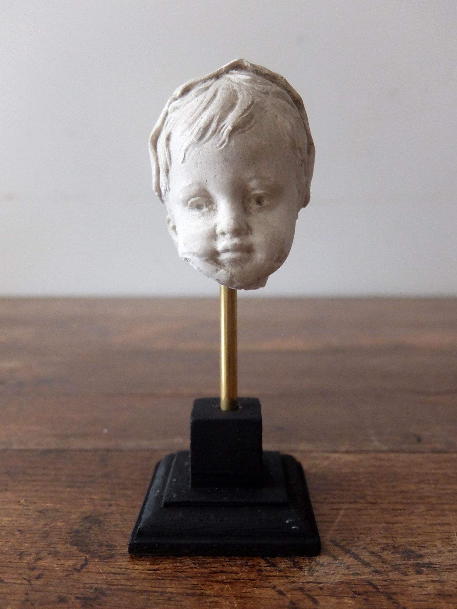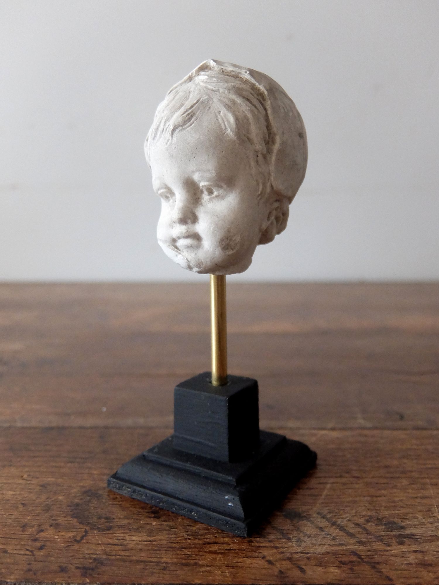 19世紀に石膏で製作された頭巾をかぶった少女の頭部 (スタンド付)