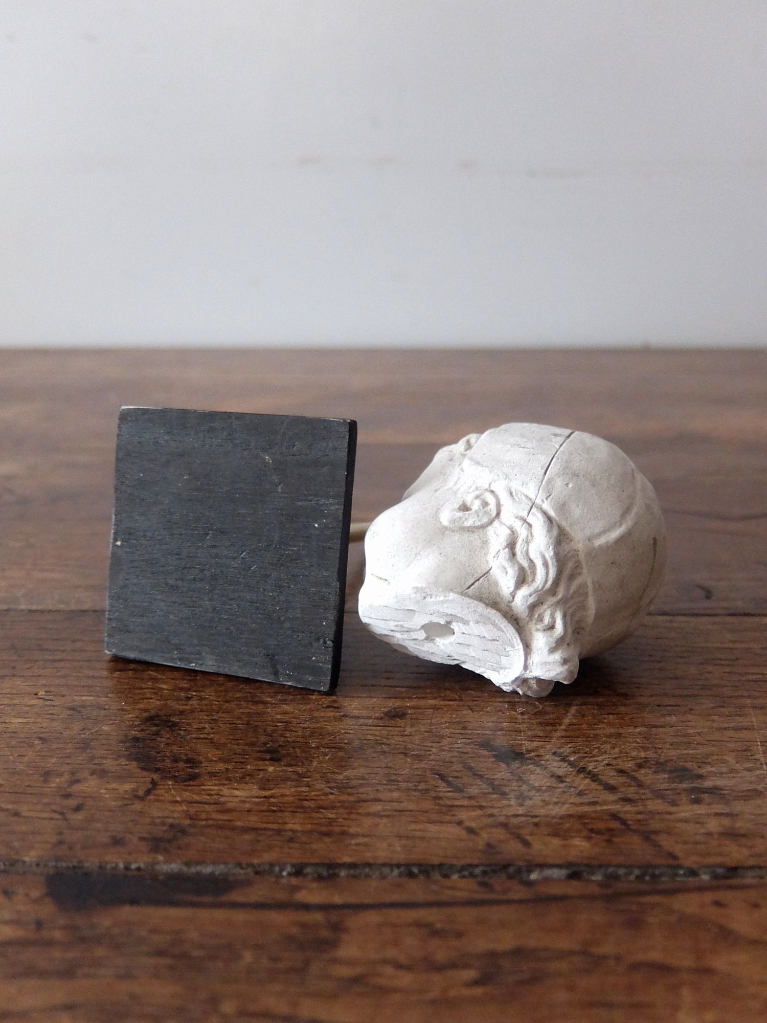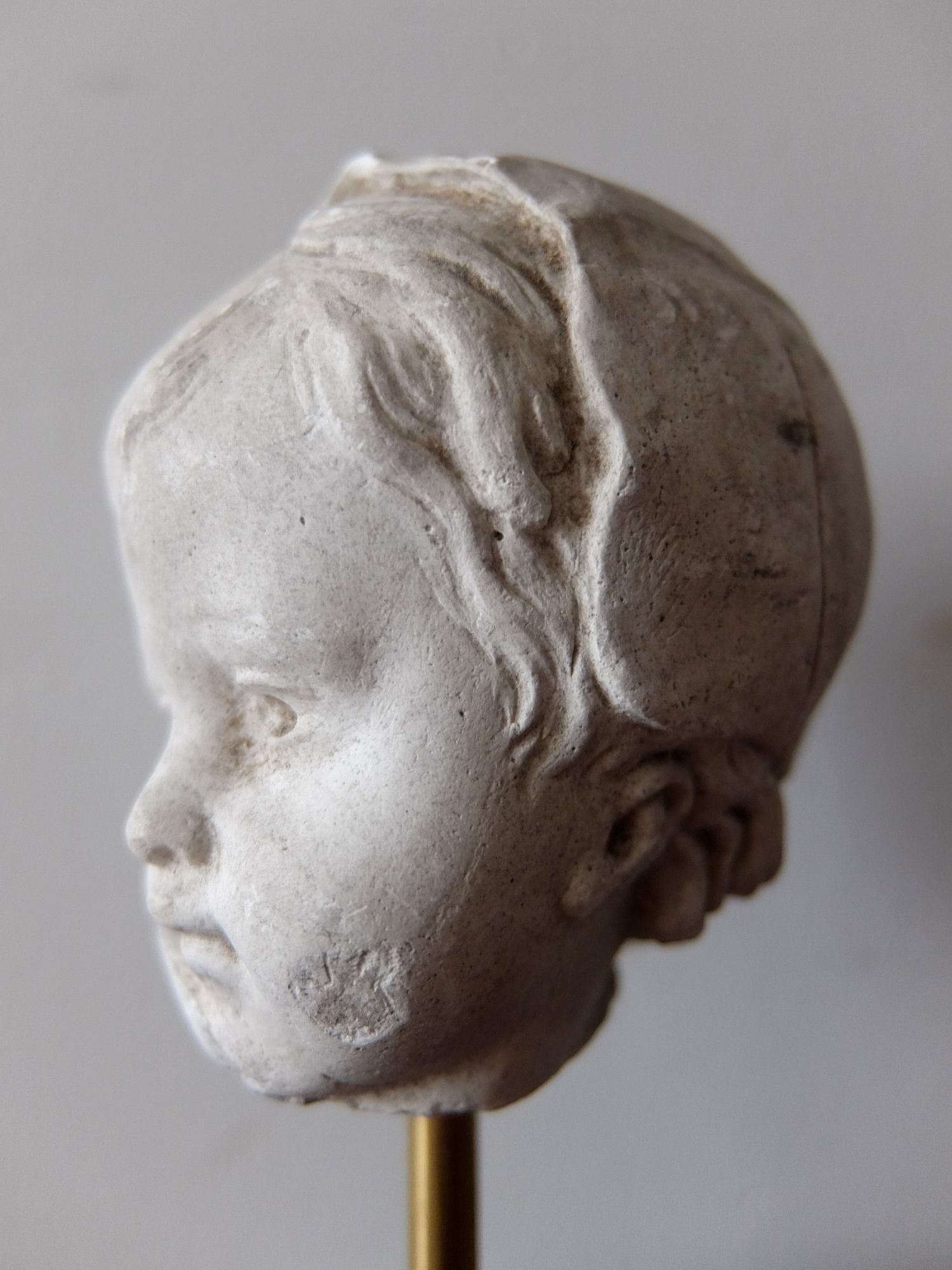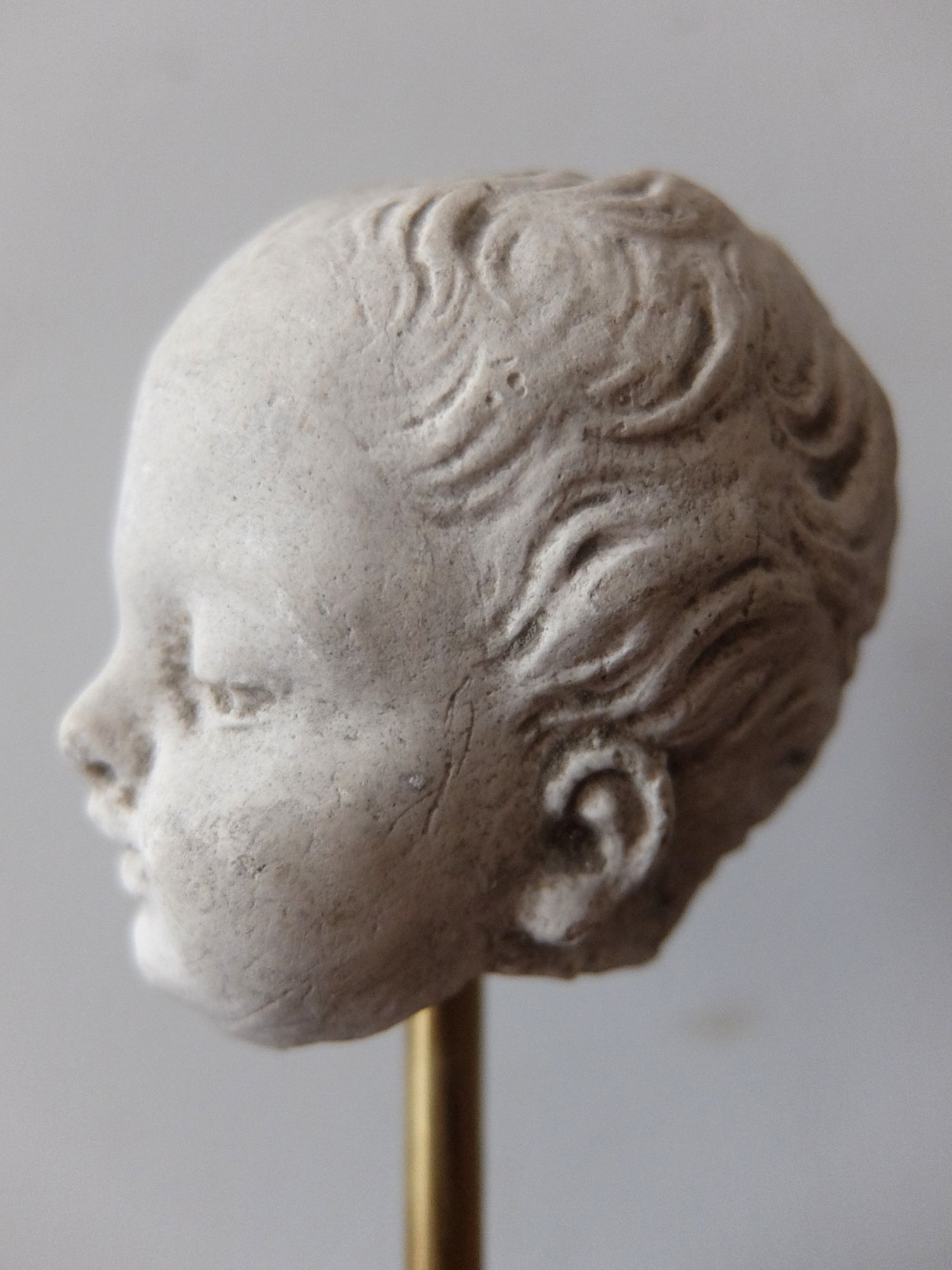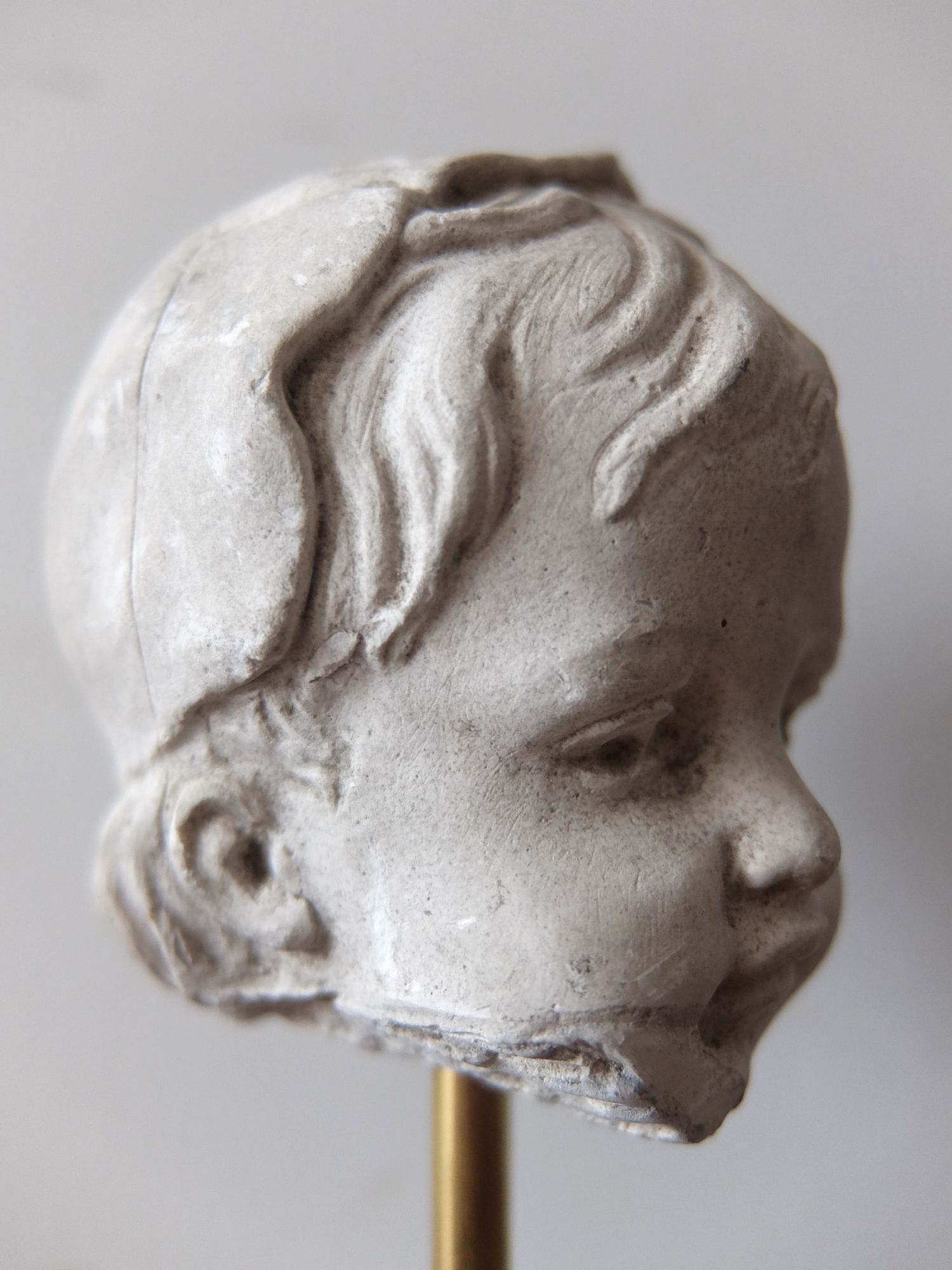19世紀に石膏で製作された頭巾をかぶった少女の頭部 (スタンド付)