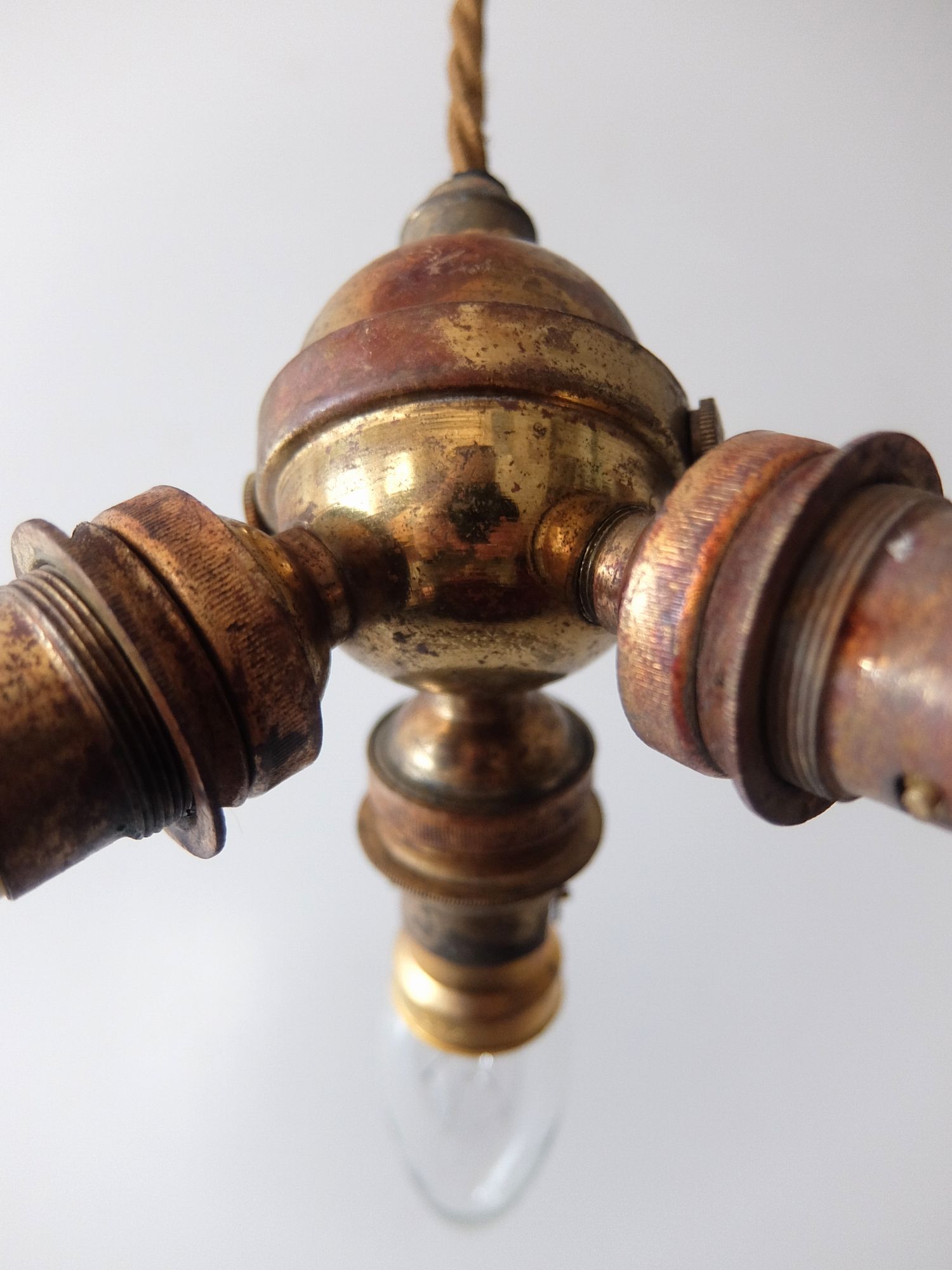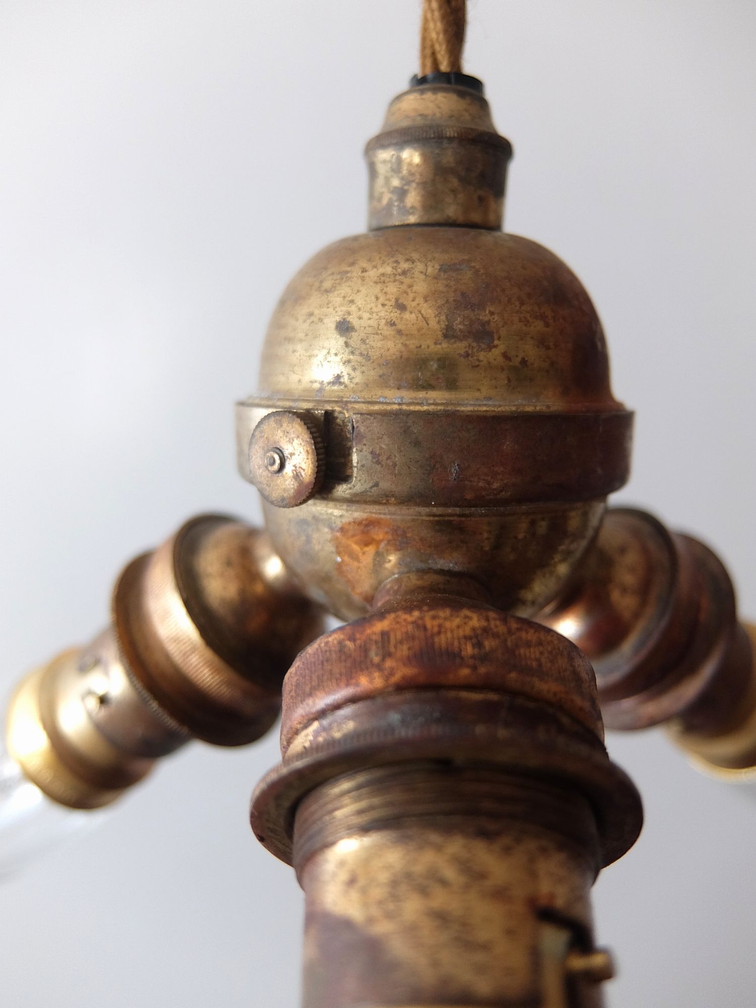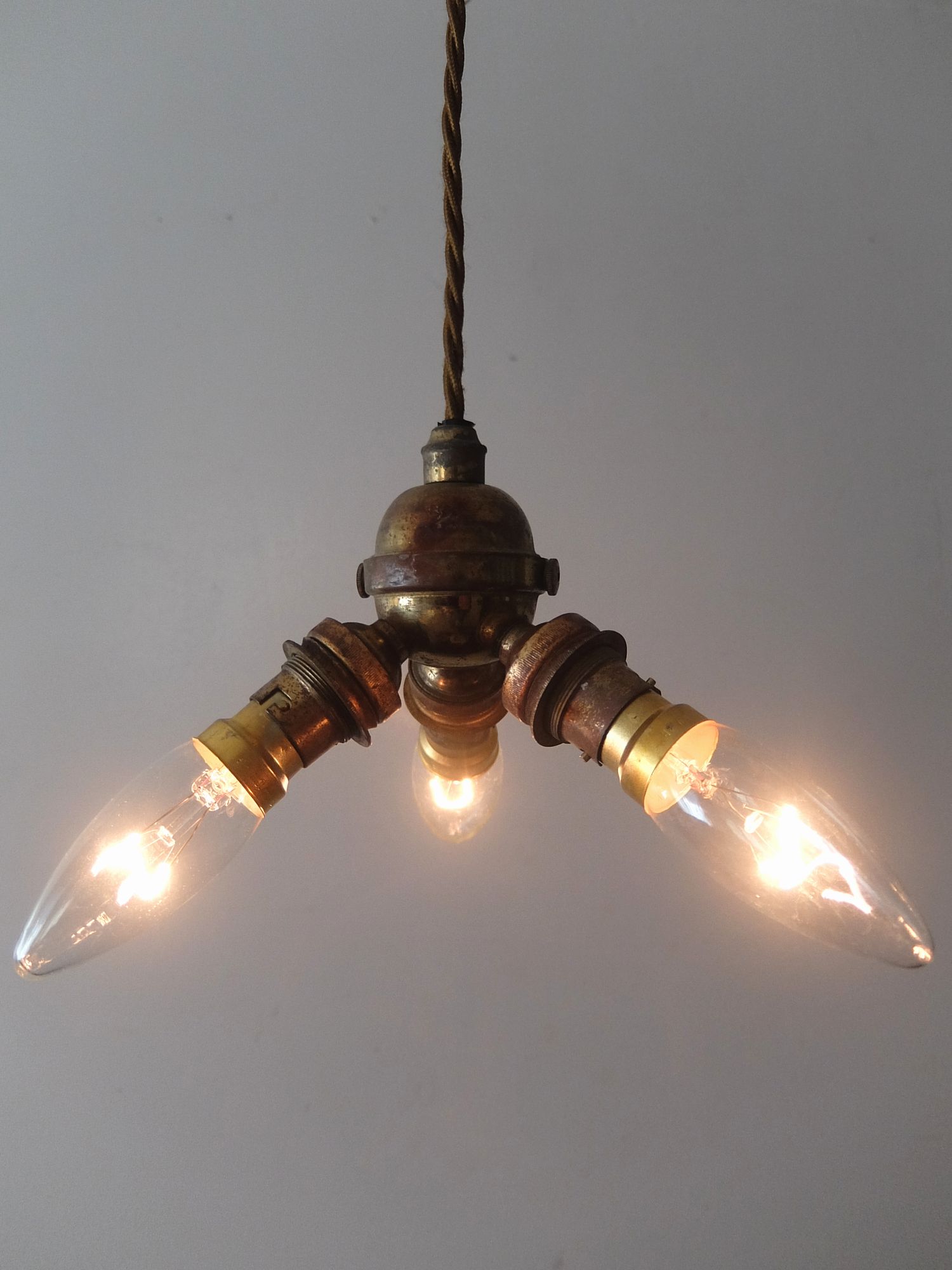 経年の真鍮の雰囲気が美しい3灯ペンダント照明