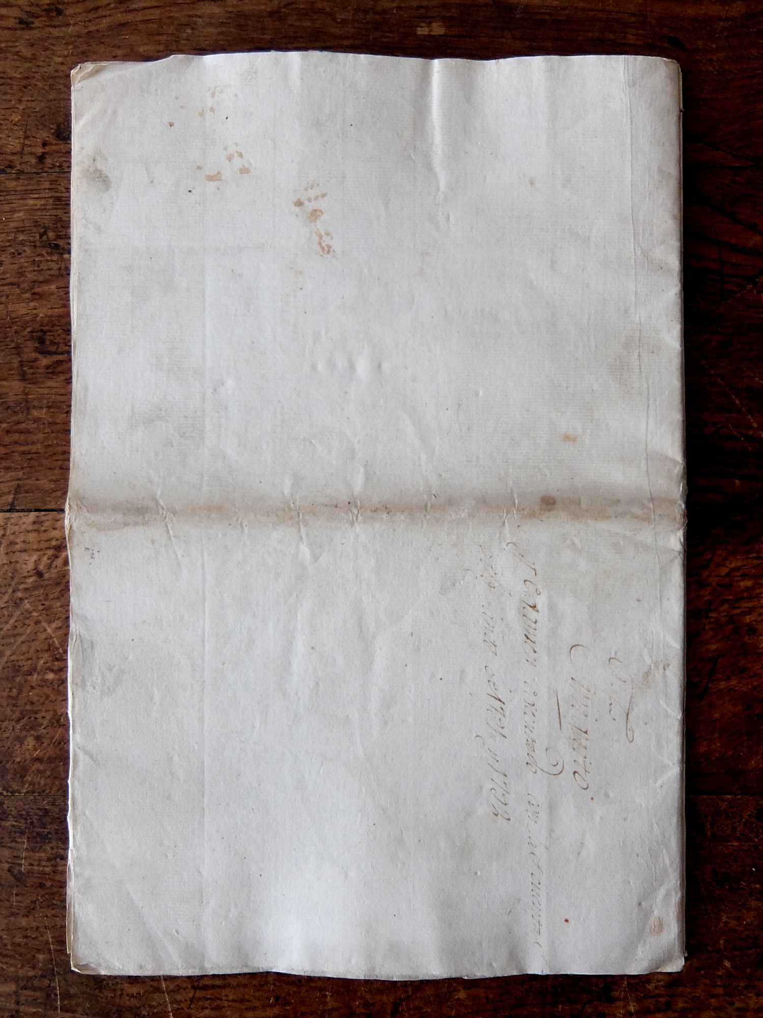 18世紀末に記されたフランス語の書類の束(古紙16枚)