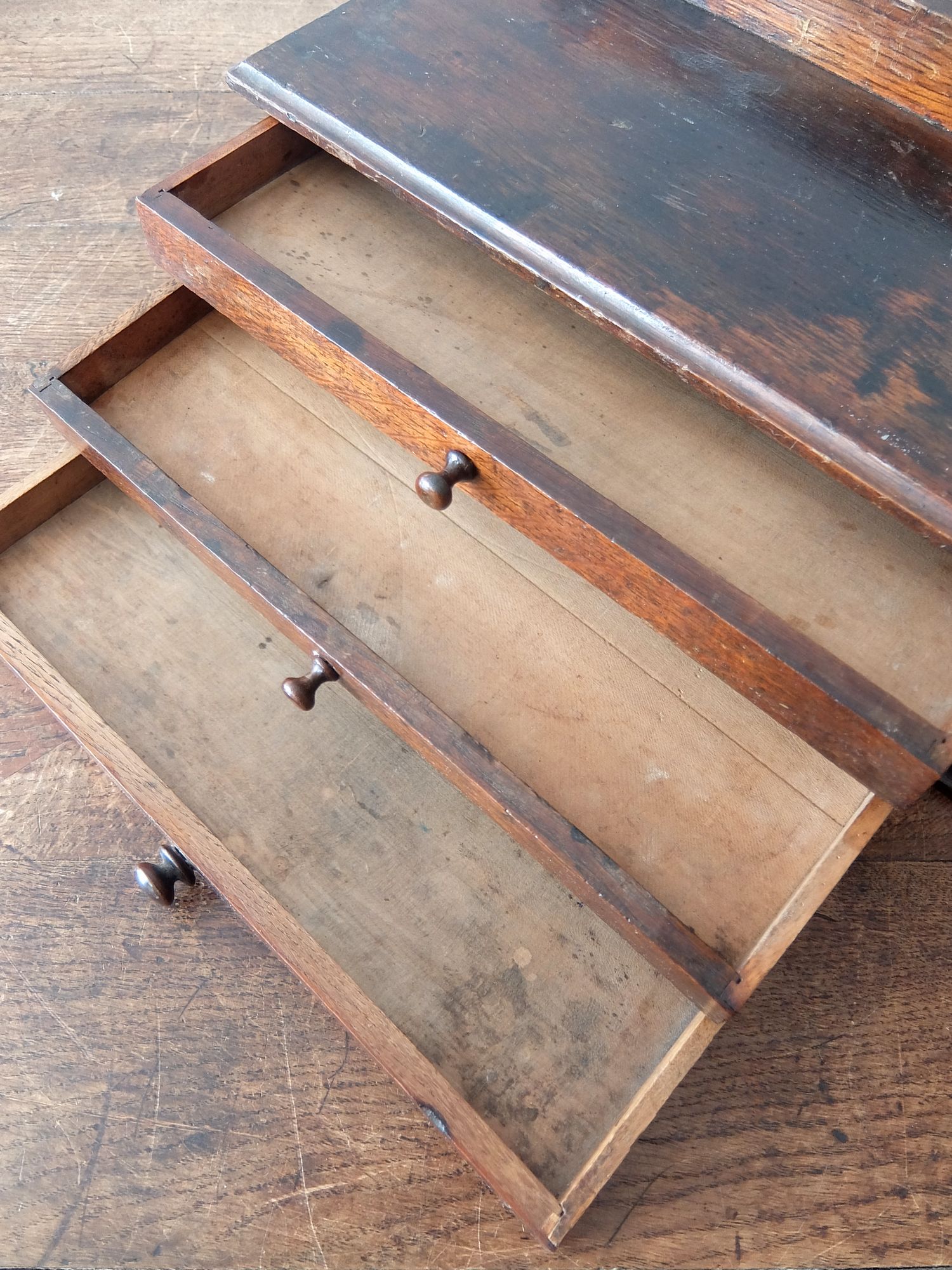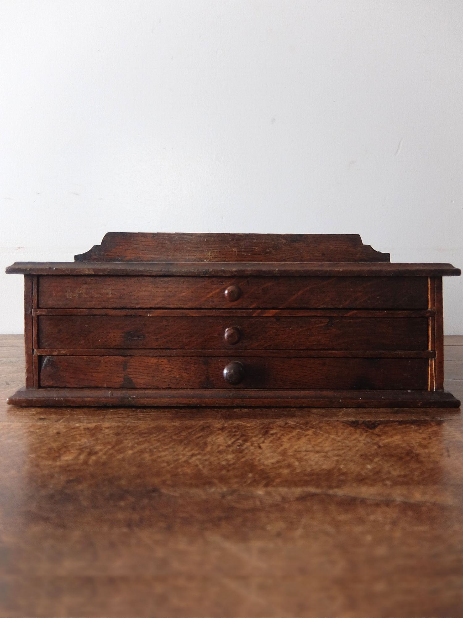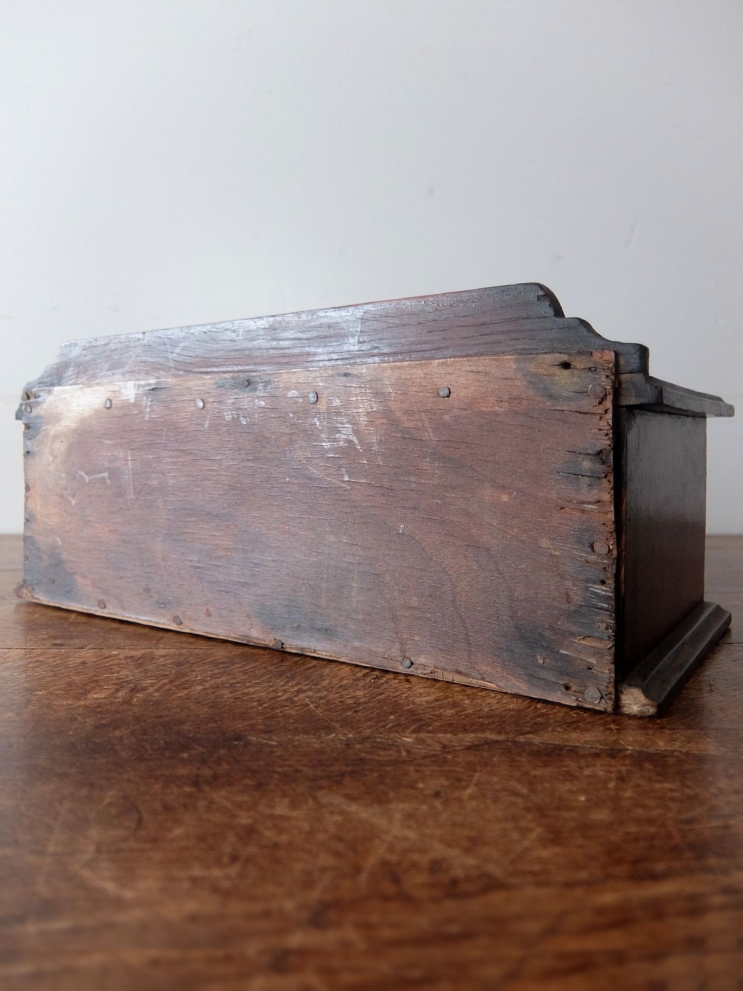 細かな工具や修理道具が収納されていたオーク材のツールボックス