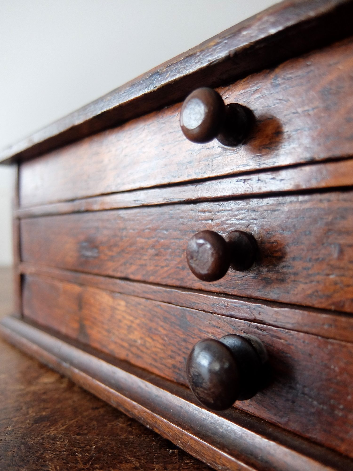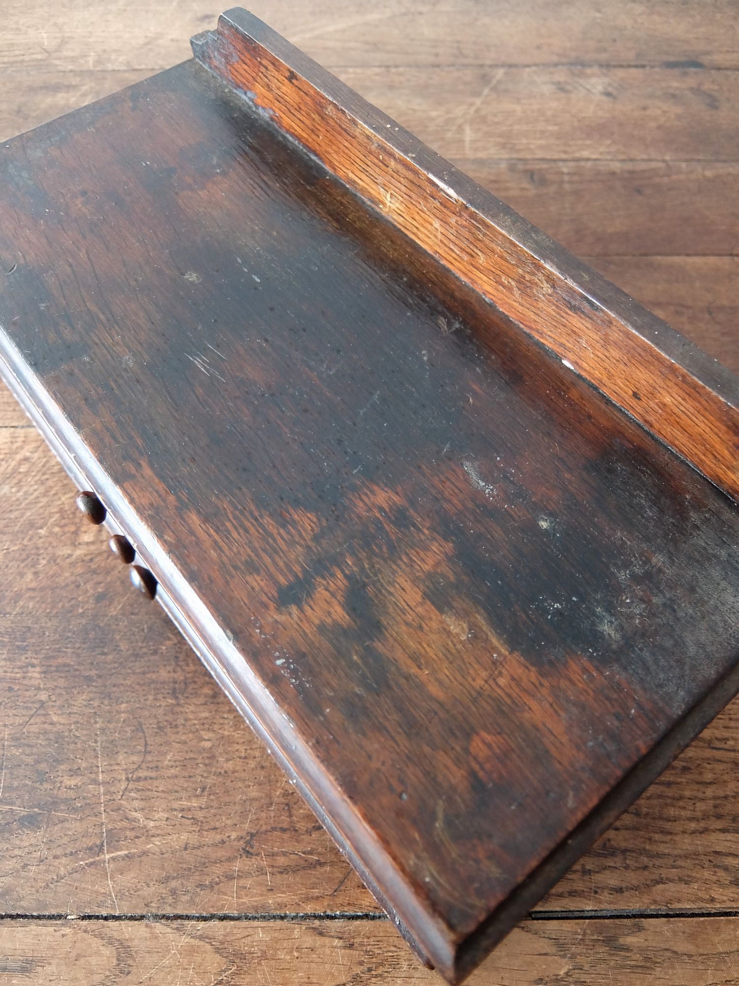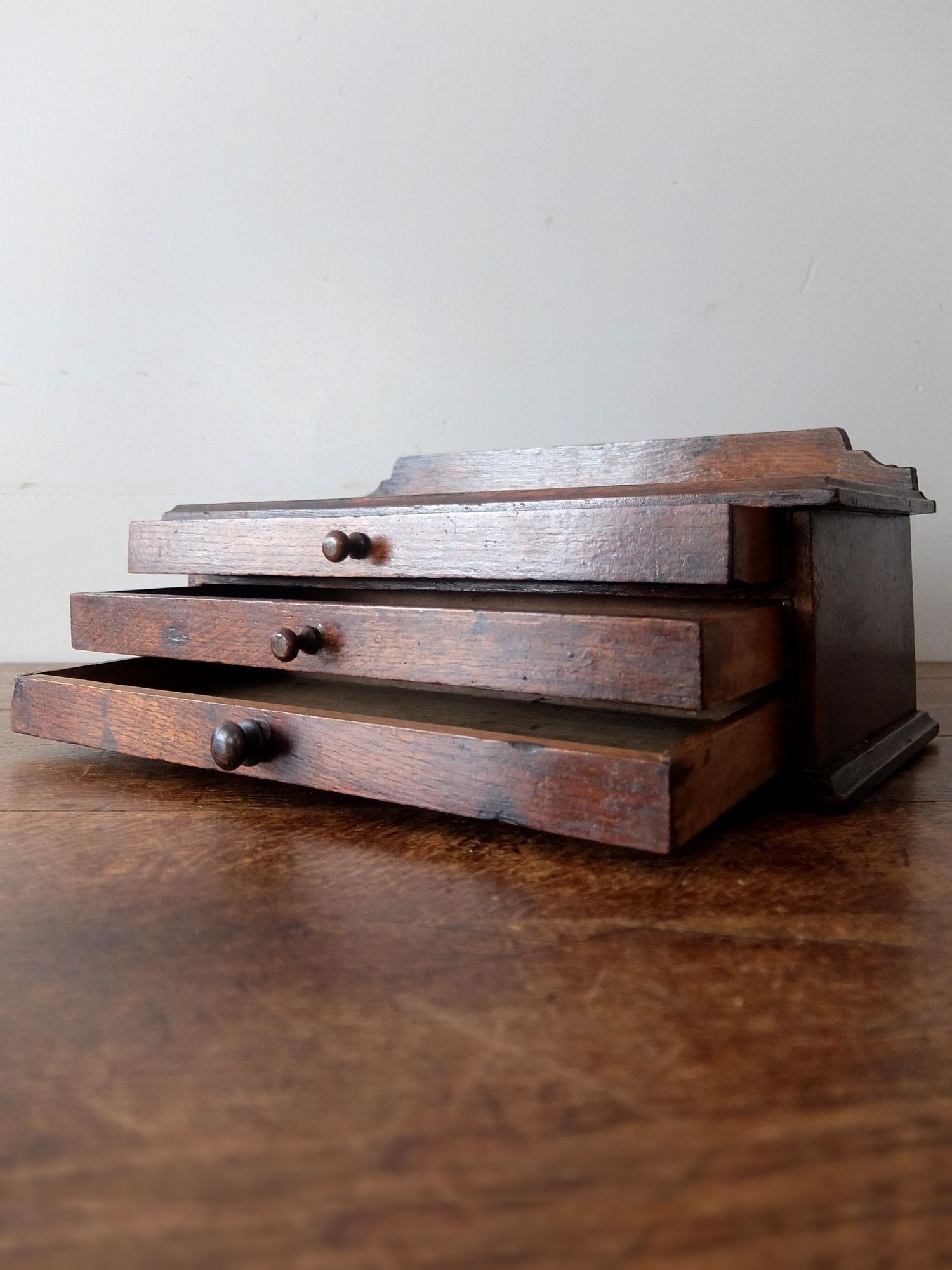 細かな工具や修理道具が収納されていたオーク材のツールボックス