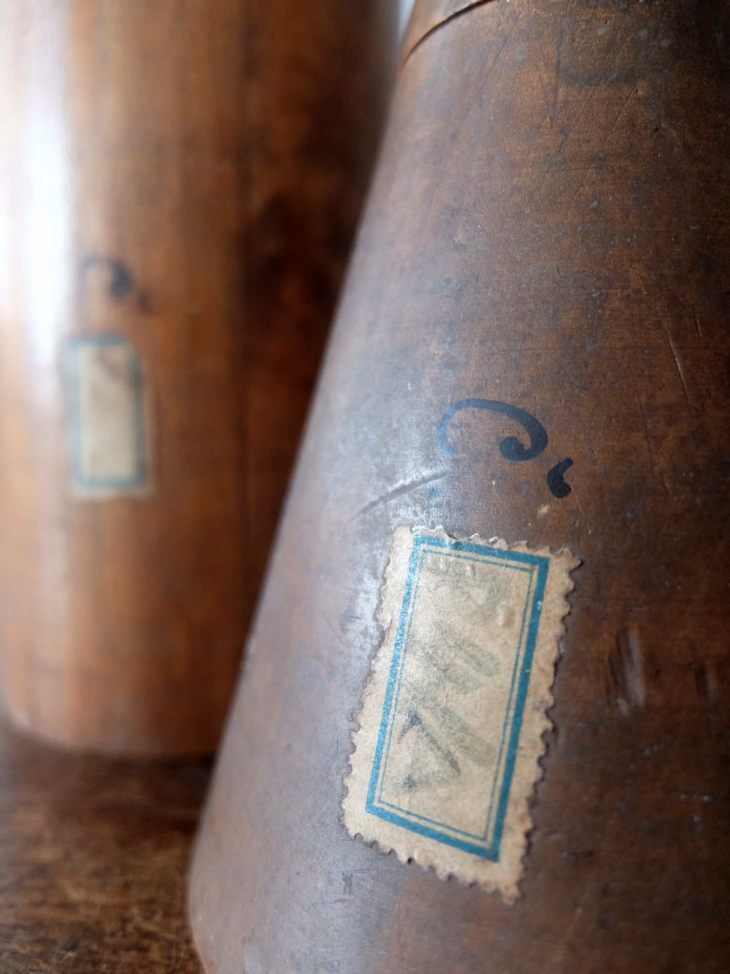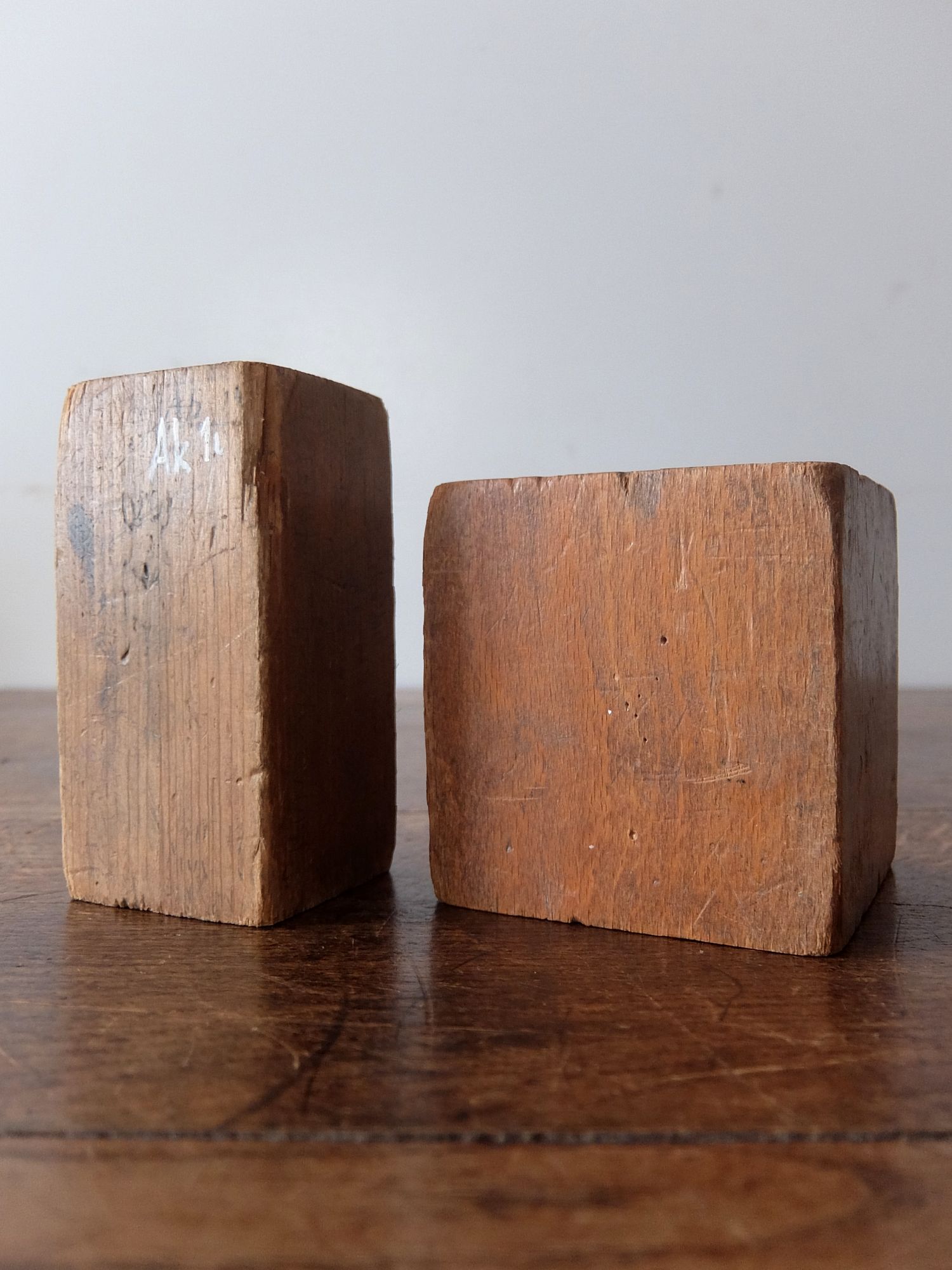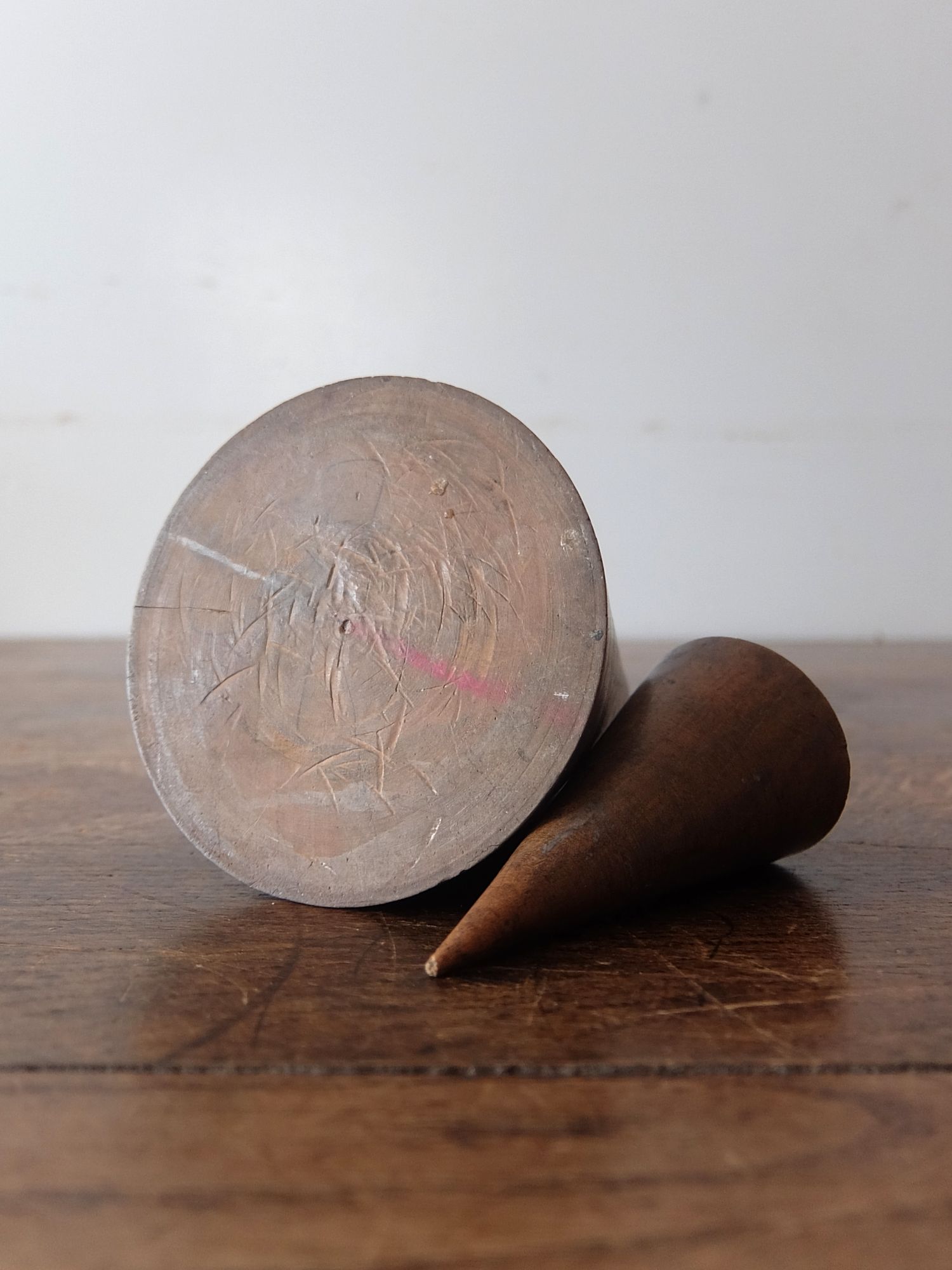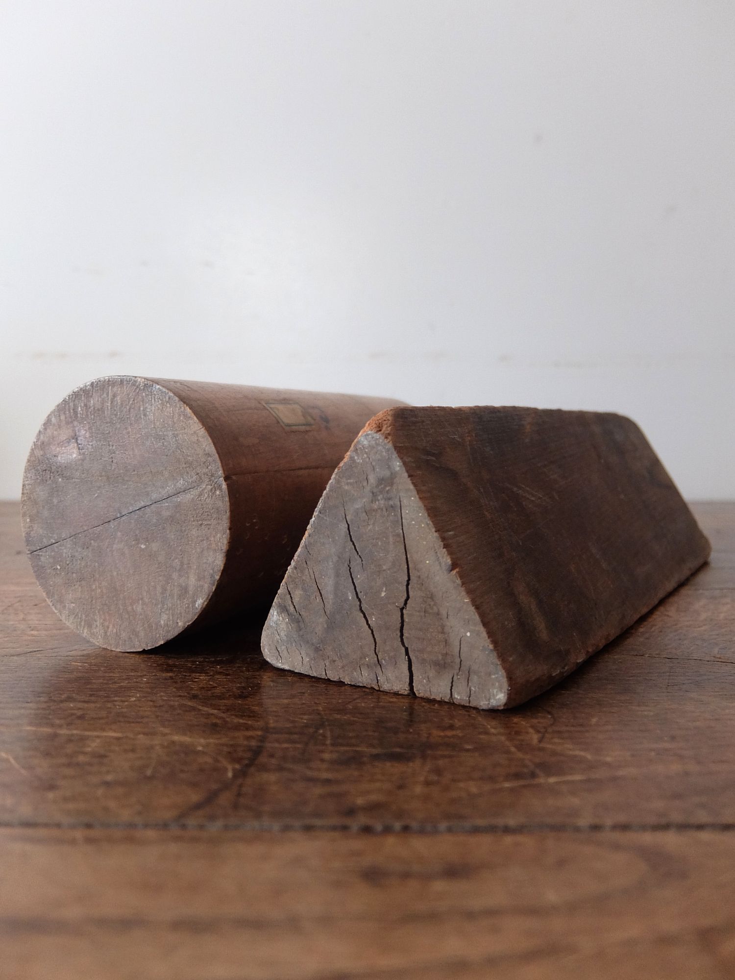 美術学校や画家のアトリエで使用されていた木製のデッサン用立体模型(球・円錐・4角柱・立方体・円柱・3角柱の6個セット)