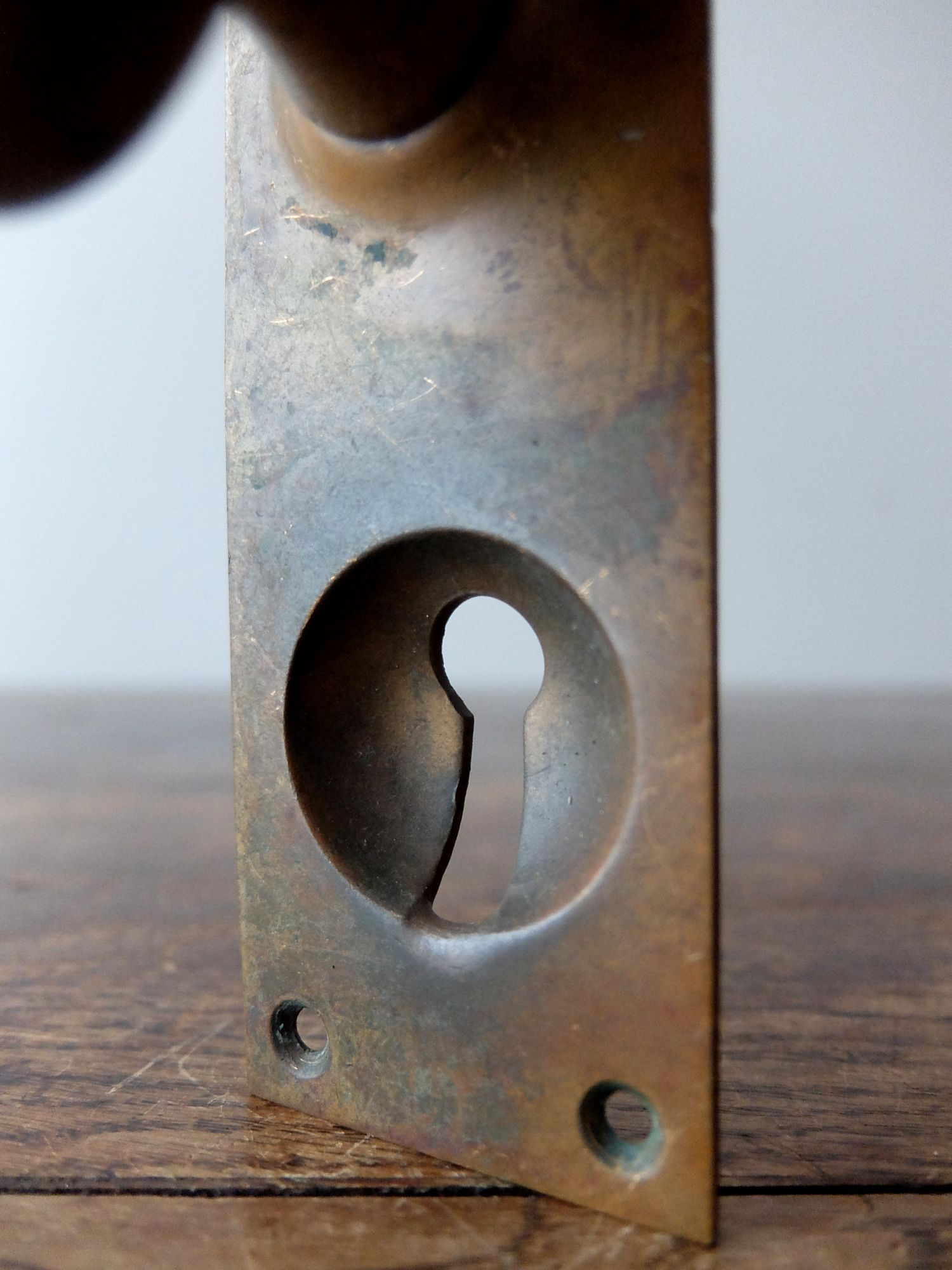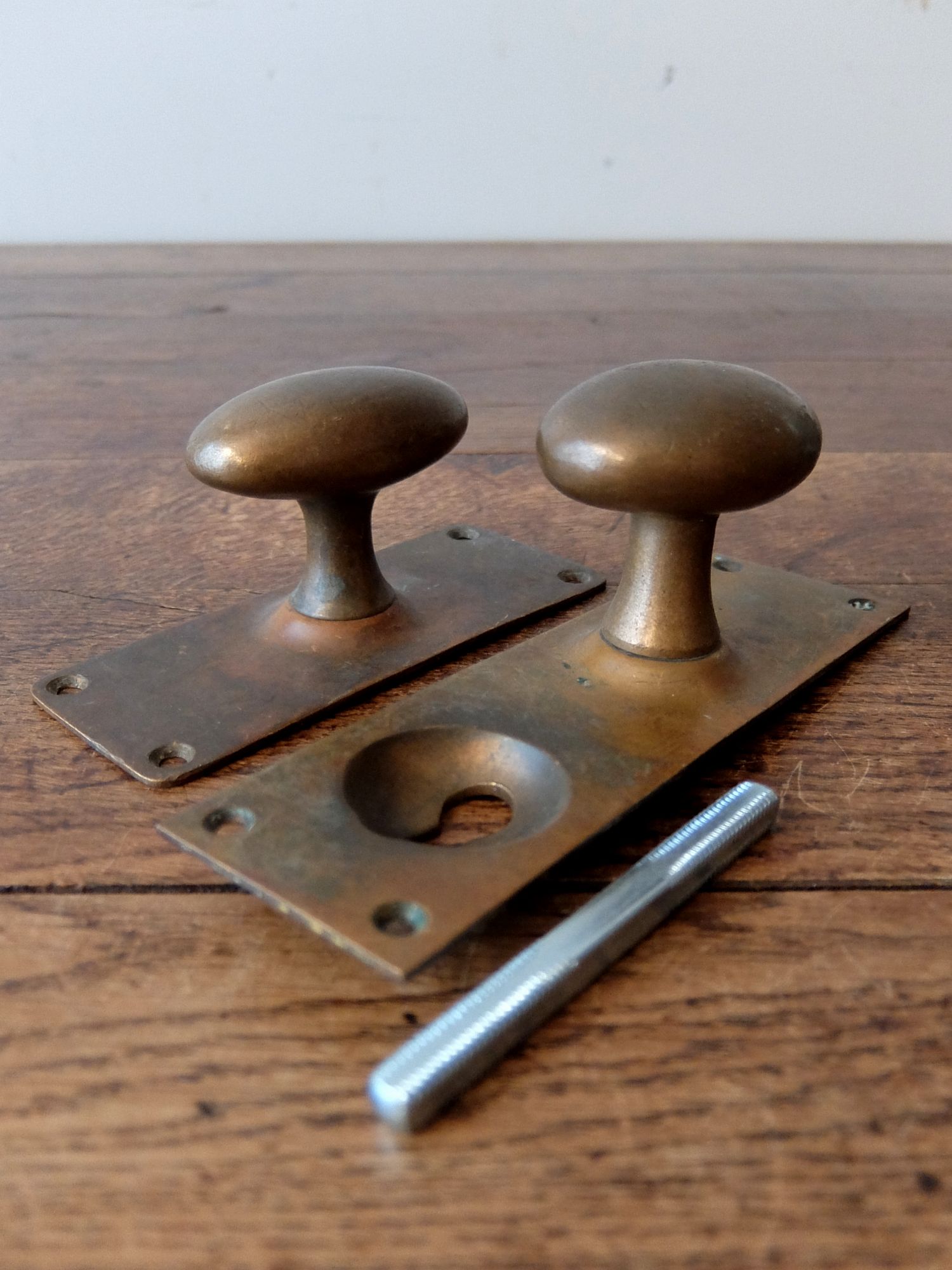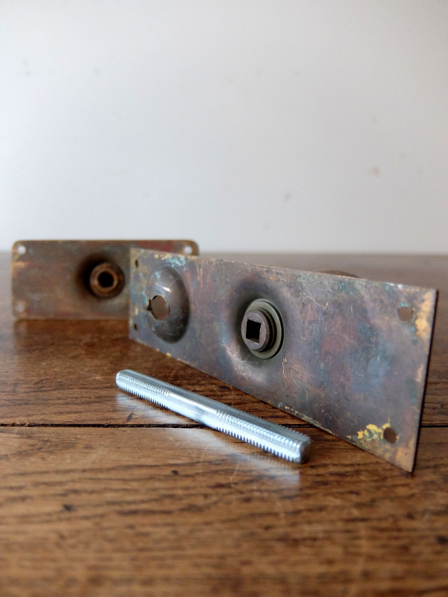 真鍮の経年劣化の色合いが美しいドアノブ(芯棒7mm角)