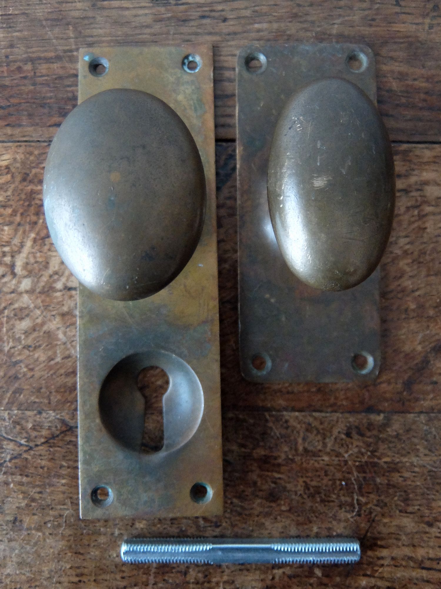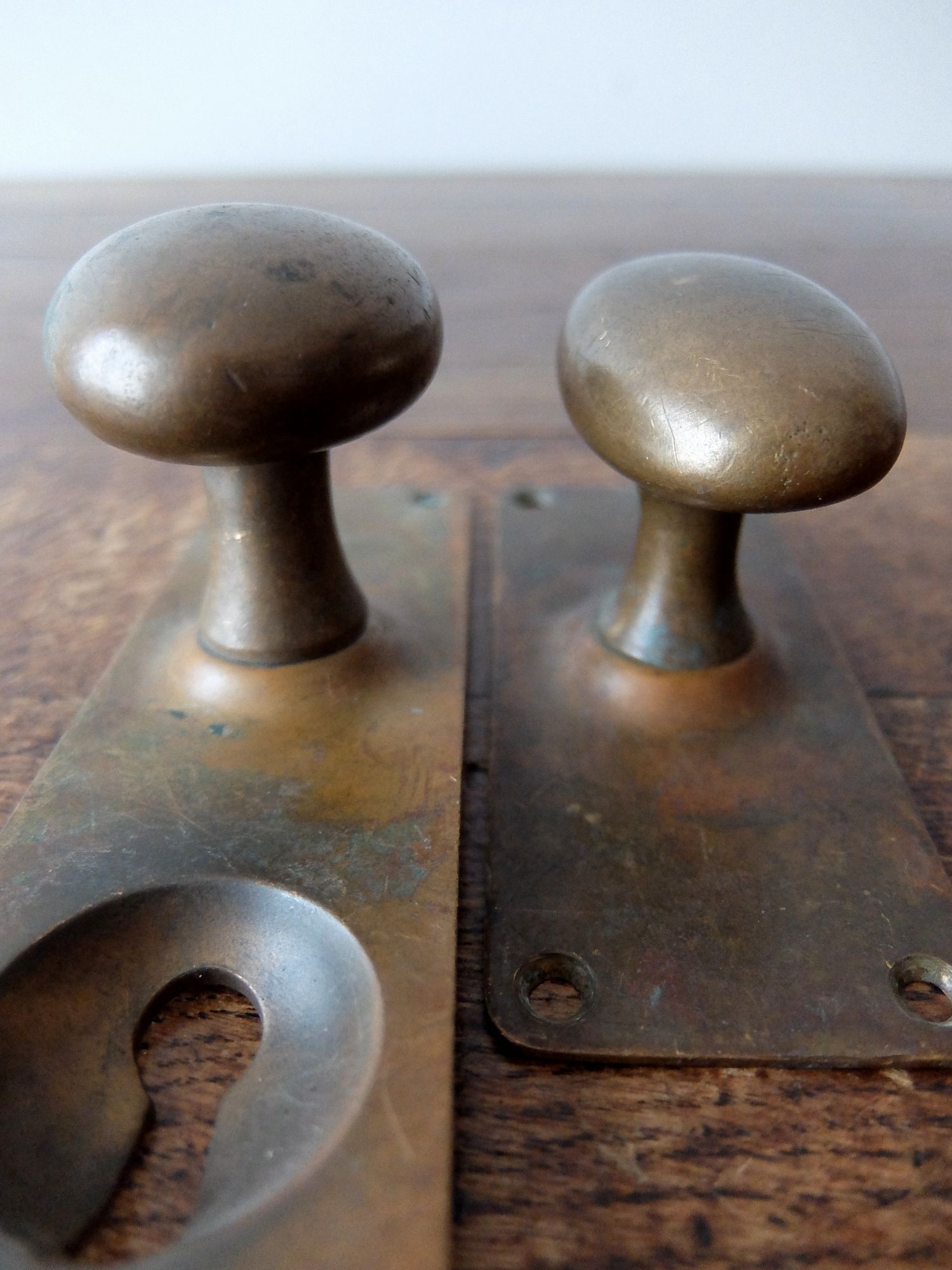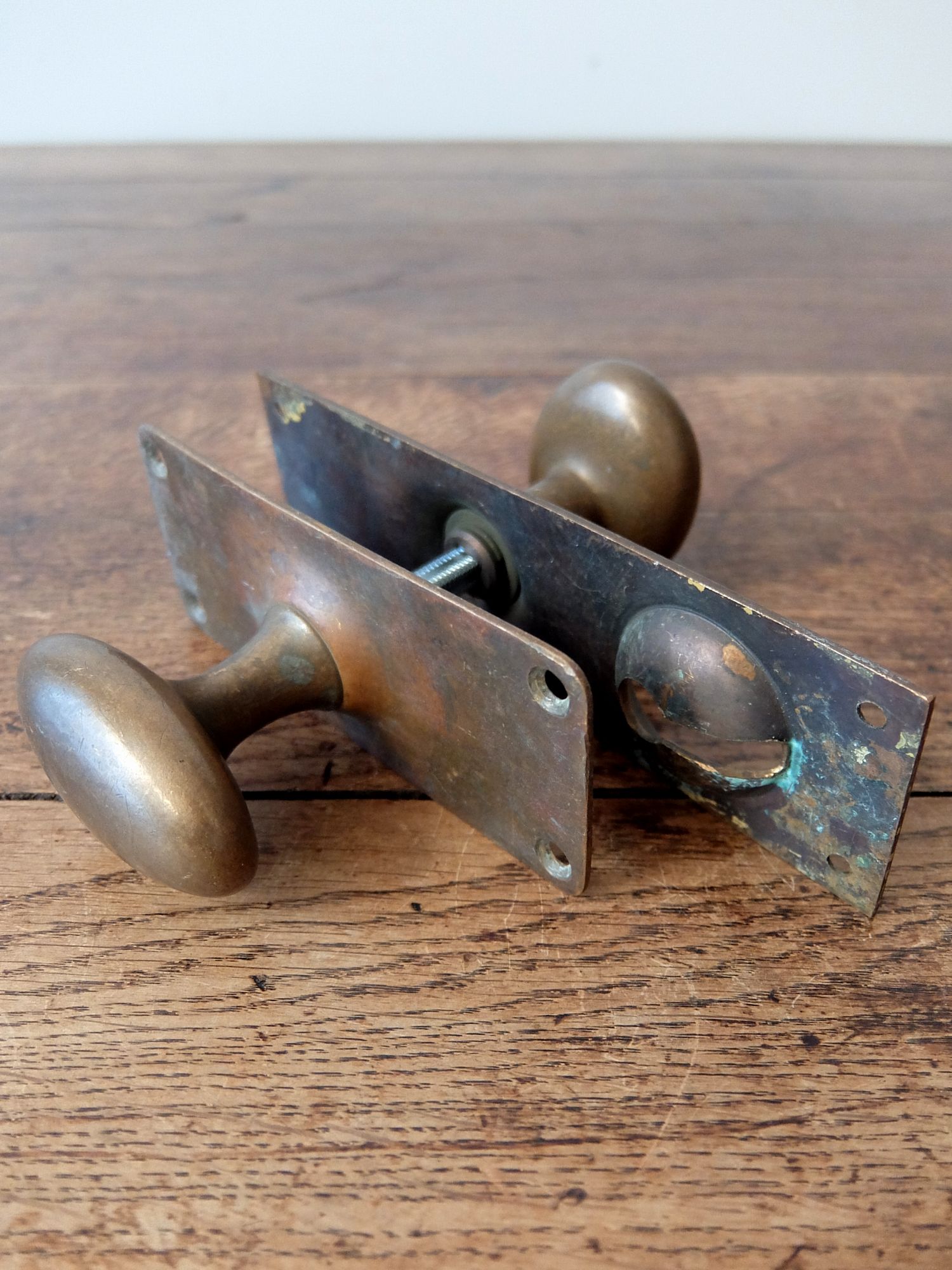 真鍮の経年劣化の色合いが美しいドアノブ(芯棒7mm角)
