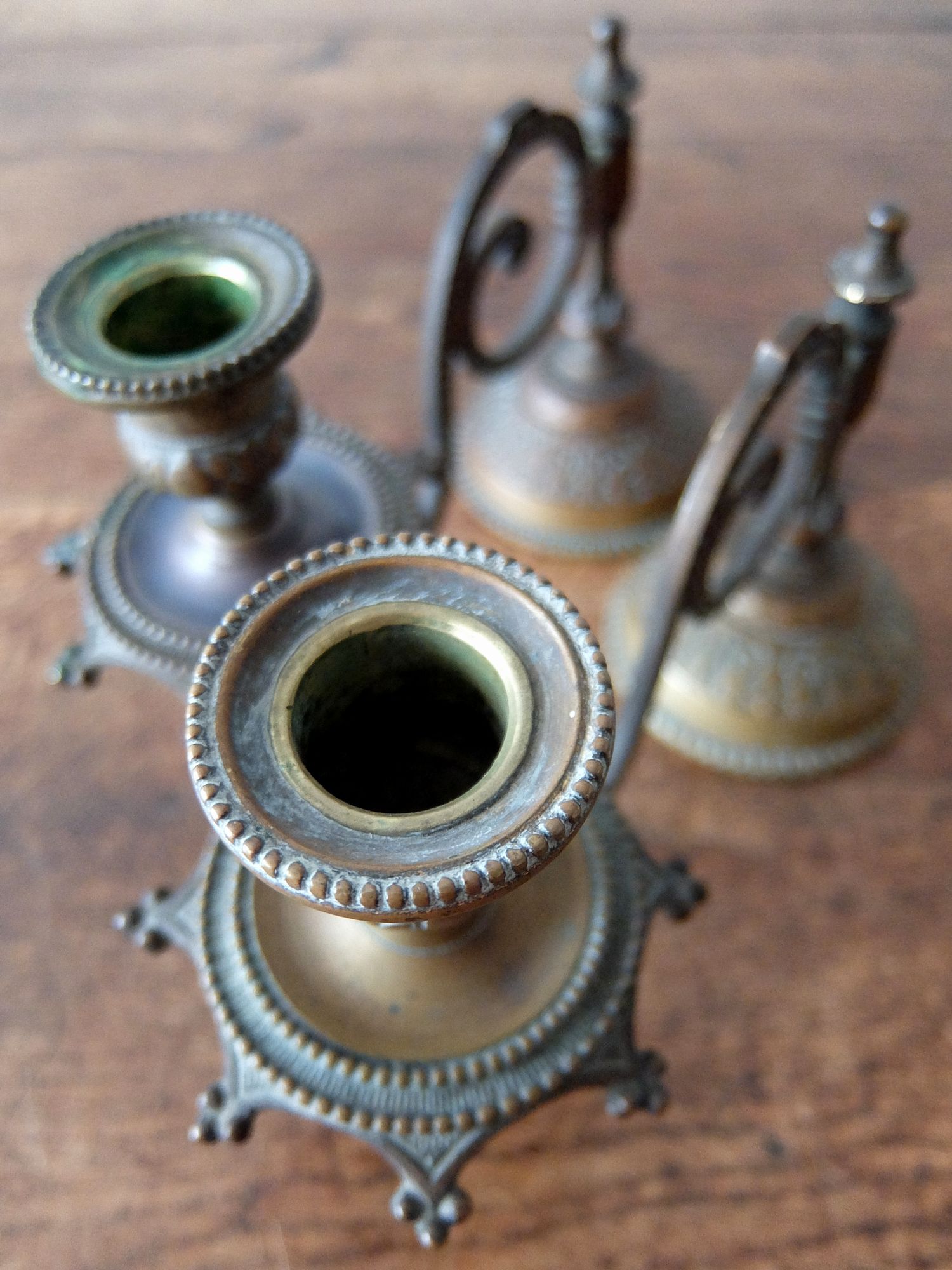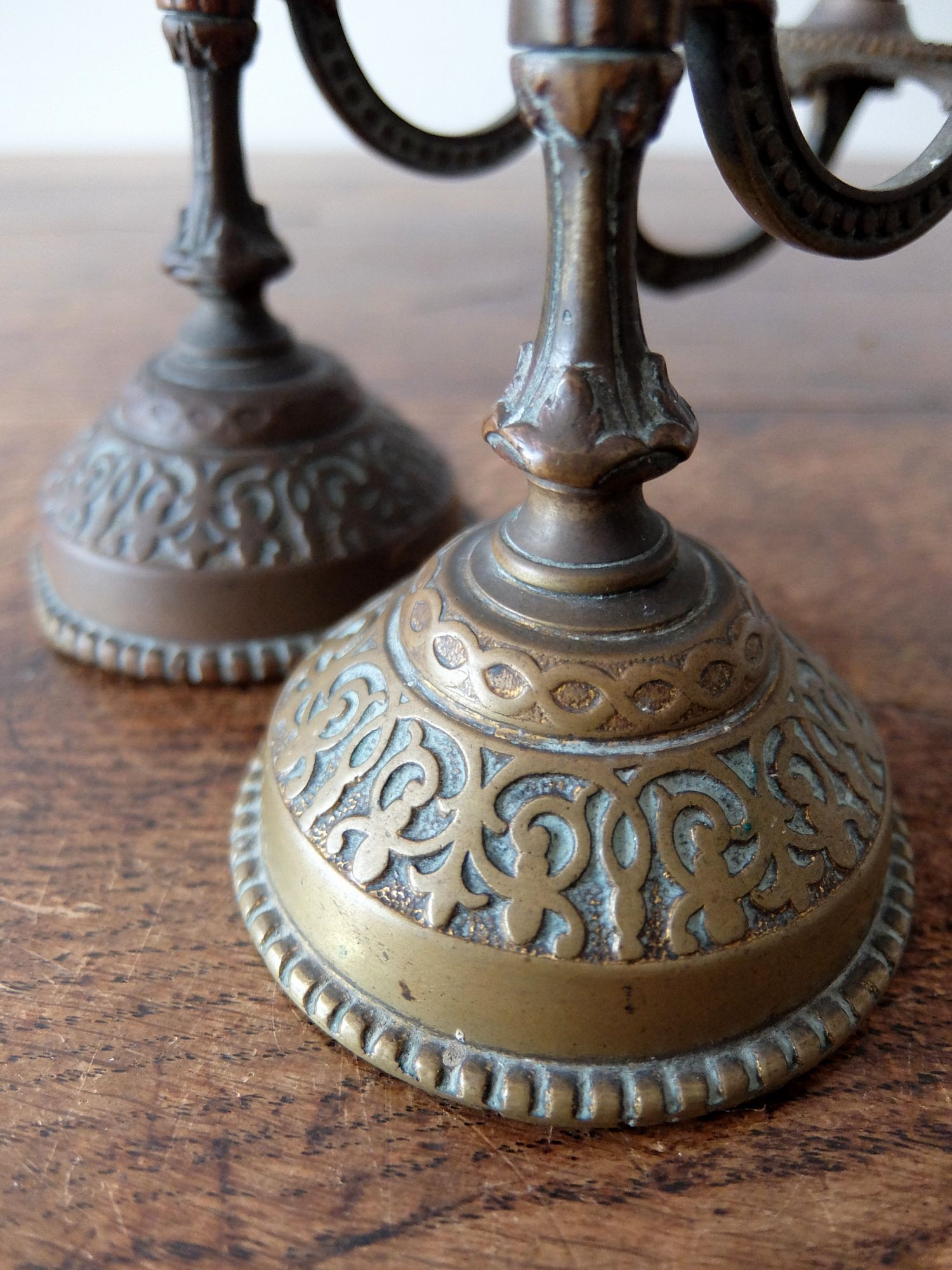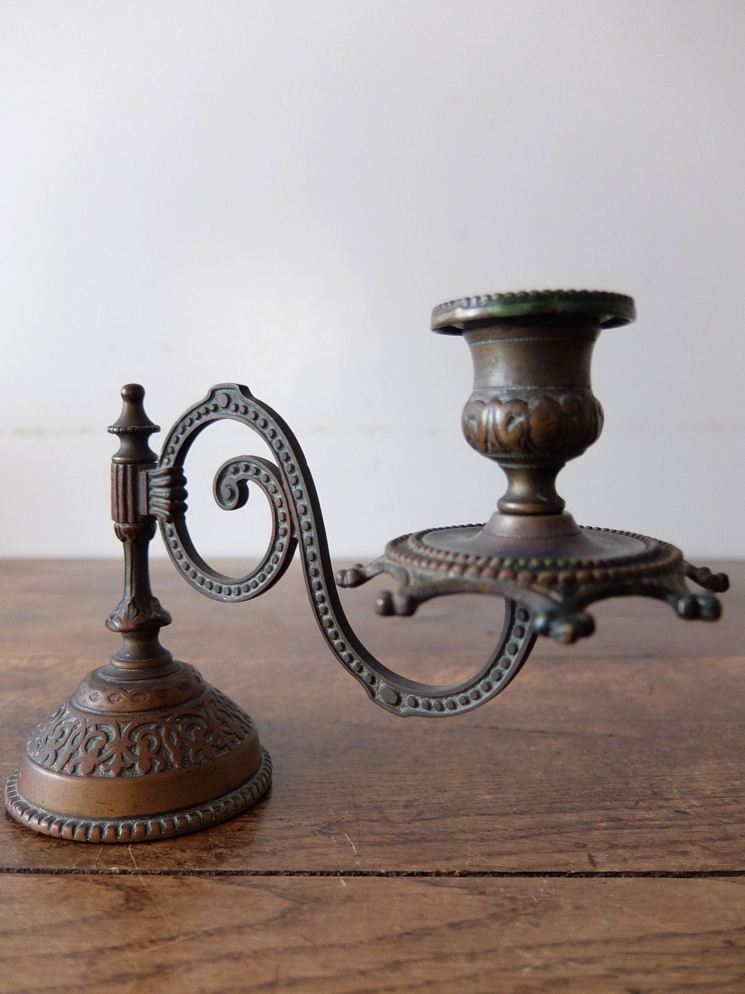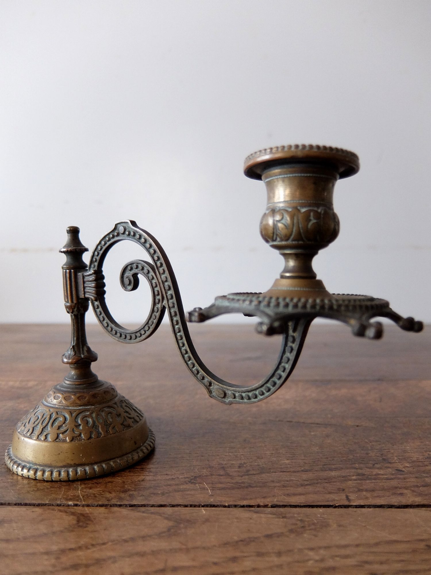 細かな装飾と真鍮の経年劣化が美しい真鍮製の燭台
