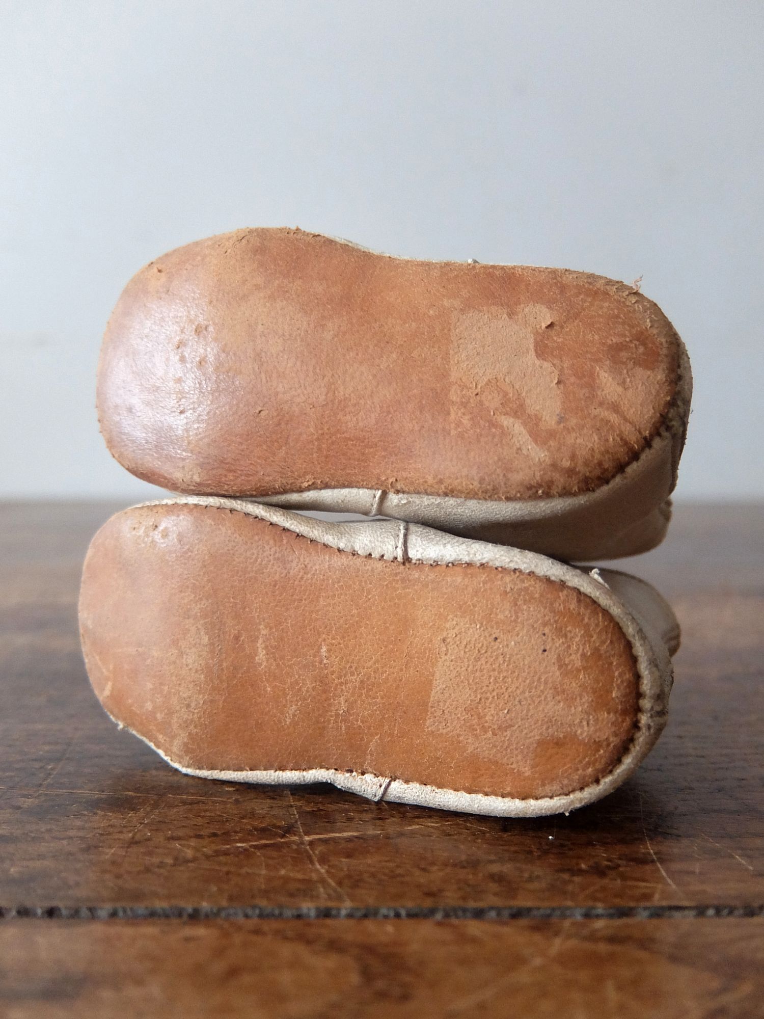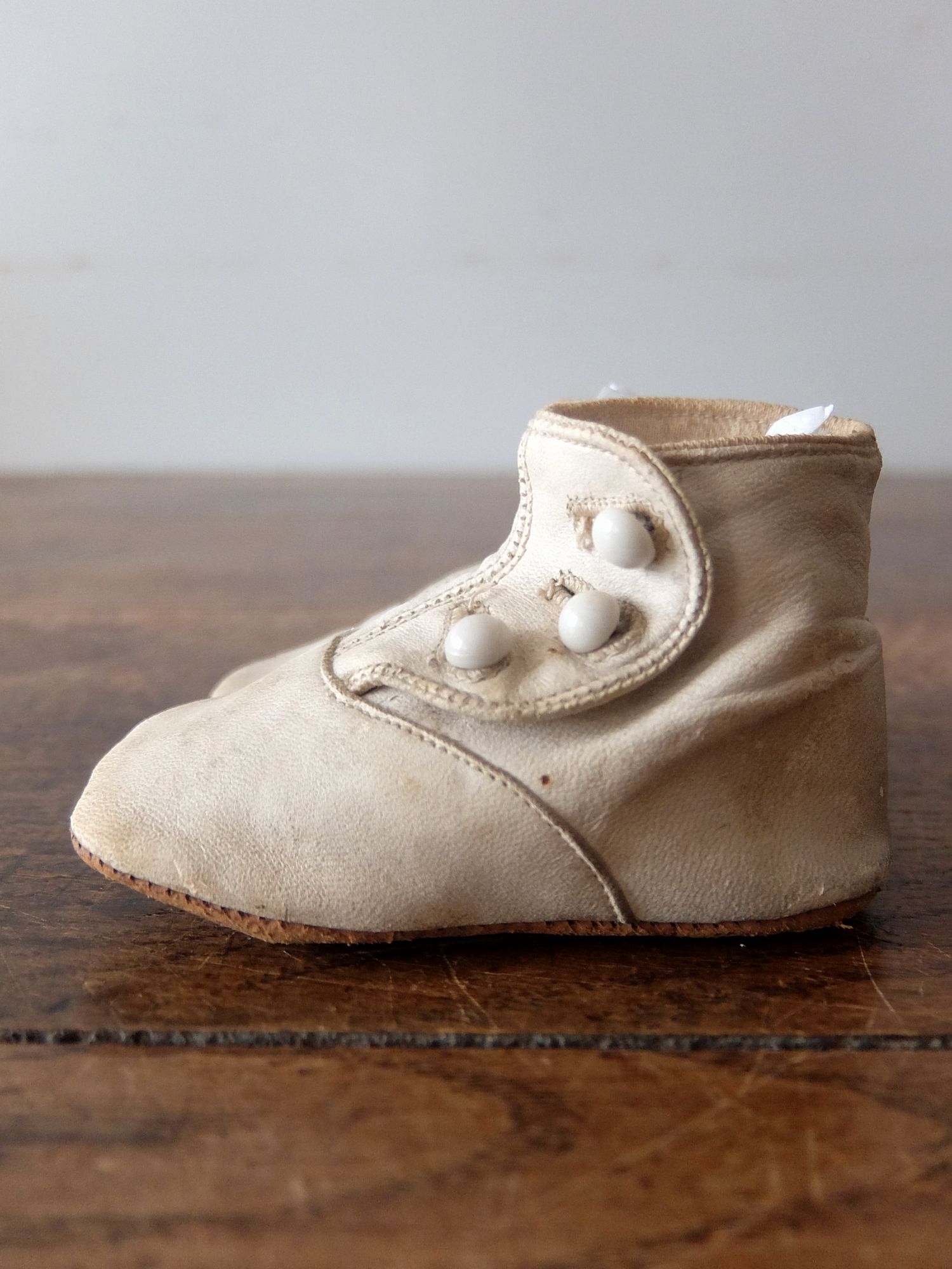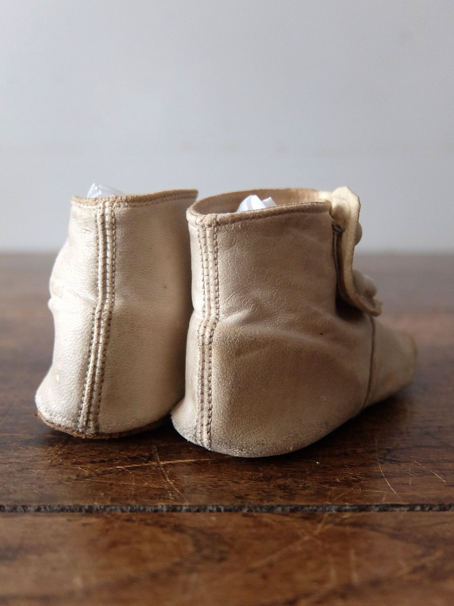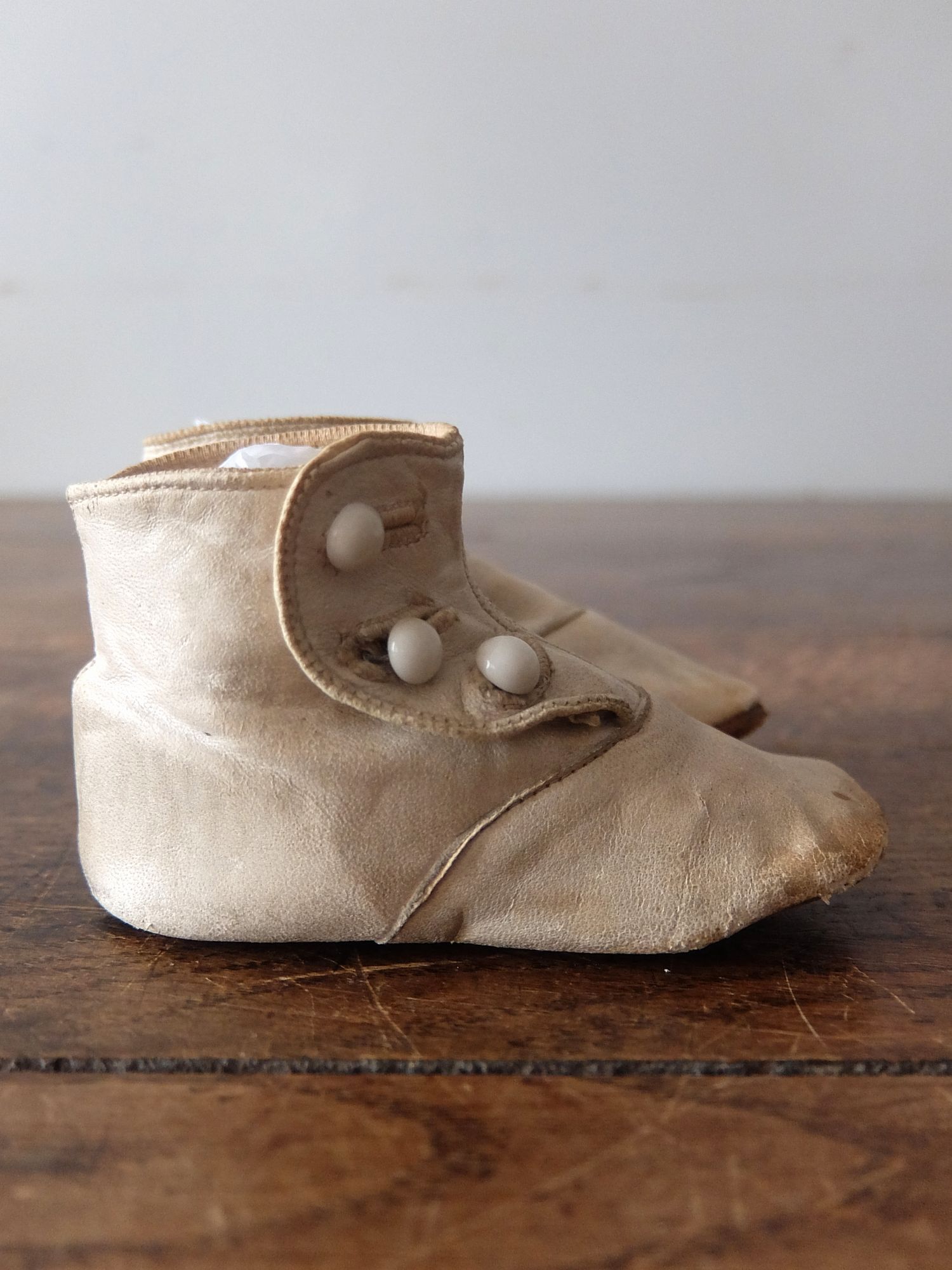 使い込まれた革の雰囲気が魅力的な子供用/人形用のヴィクトリアンベビーシューズ