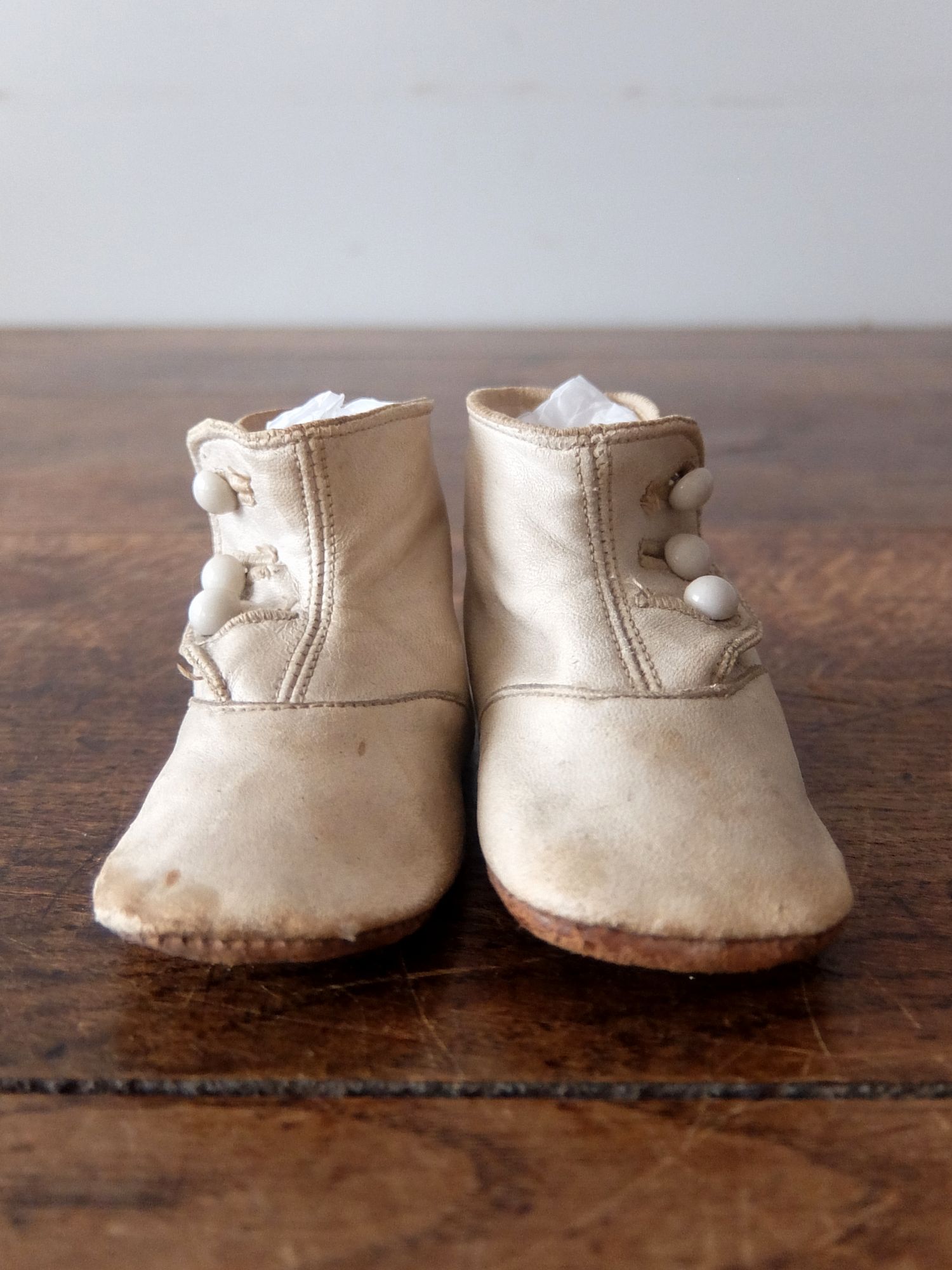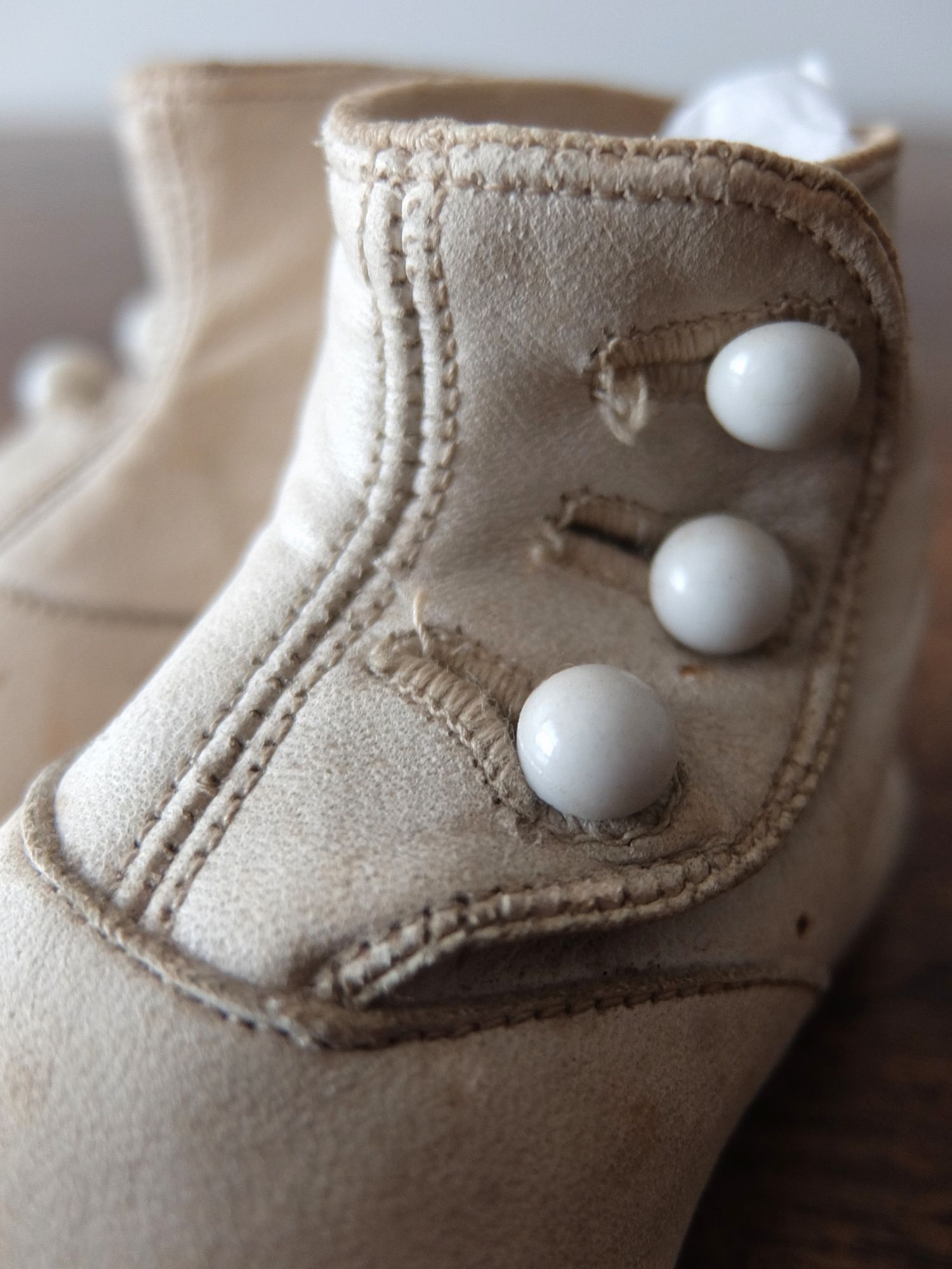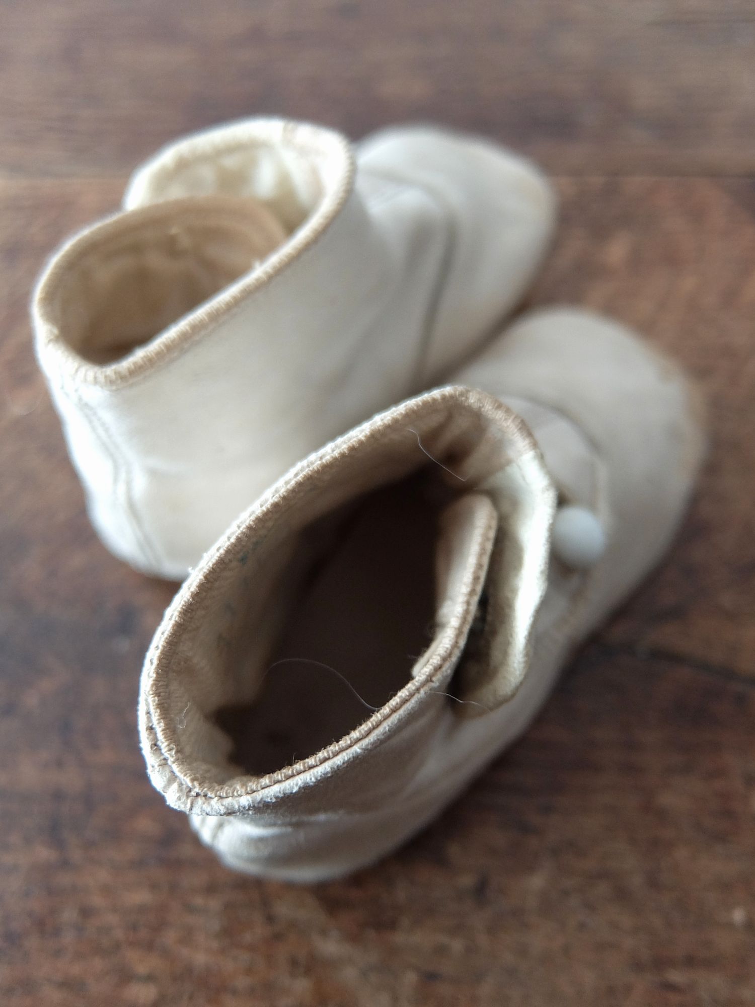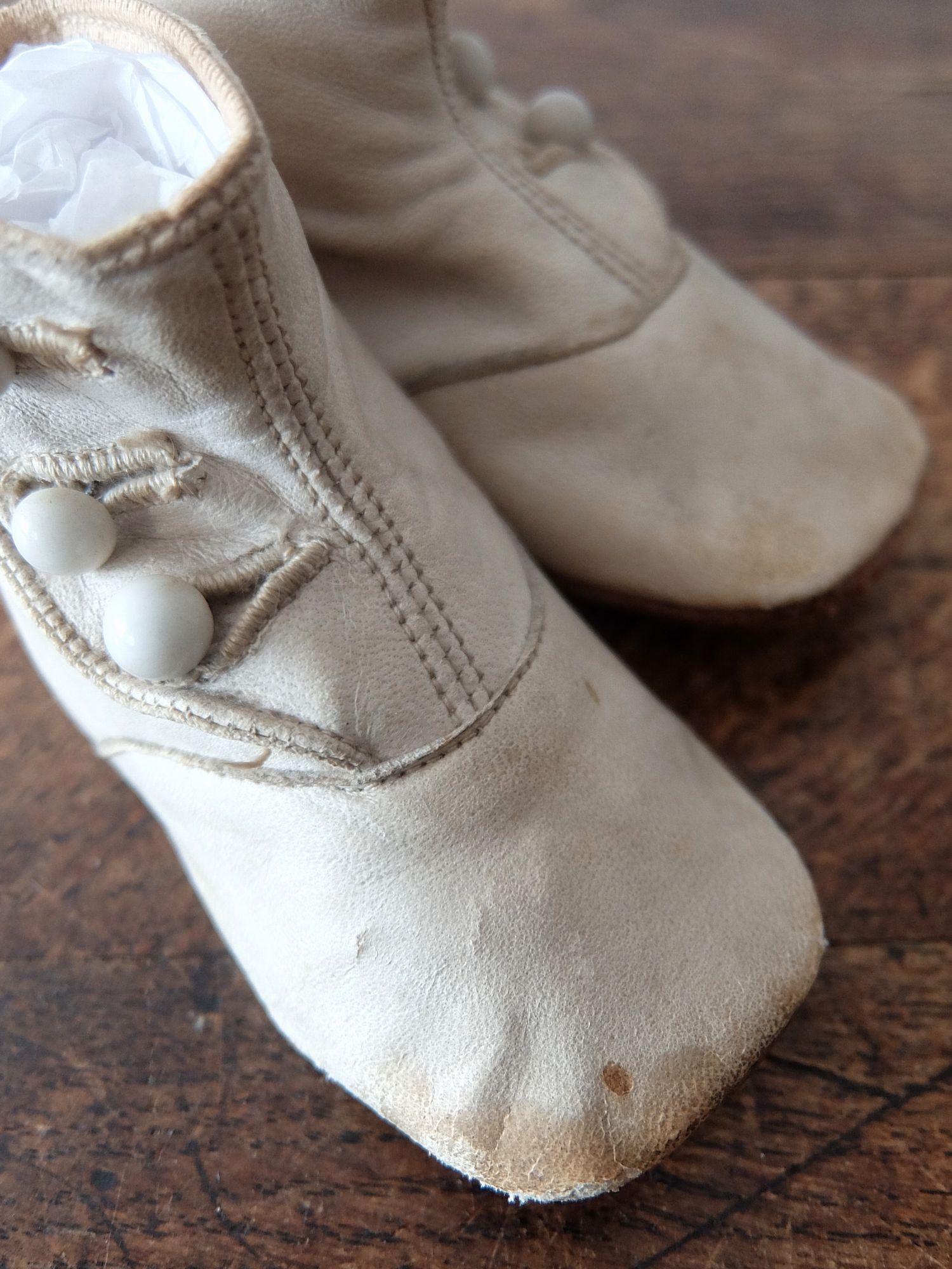 使い込まれた革の雰囲気が魅力的な子供用/人形用のヴィクトリアンベビーシューズ