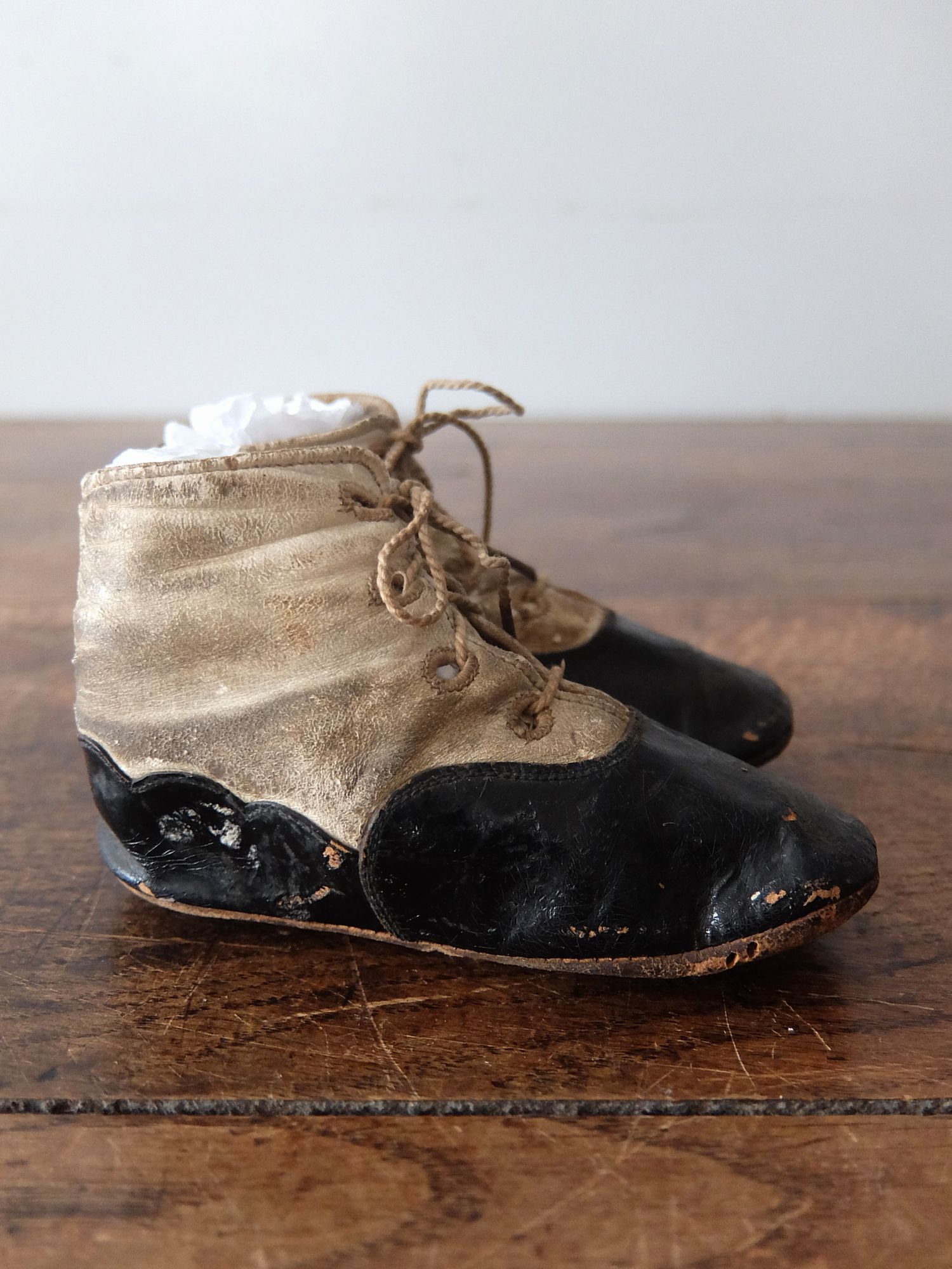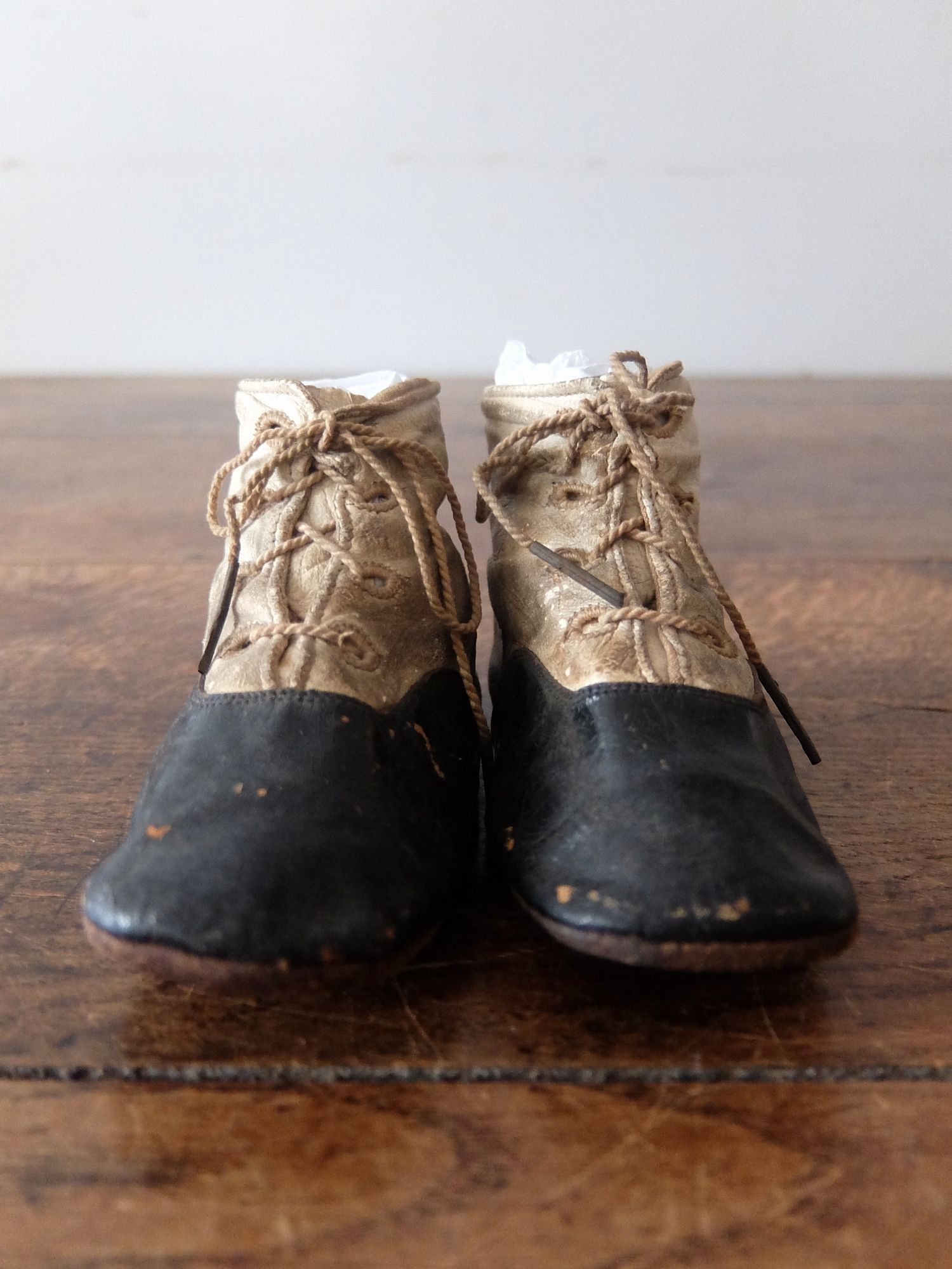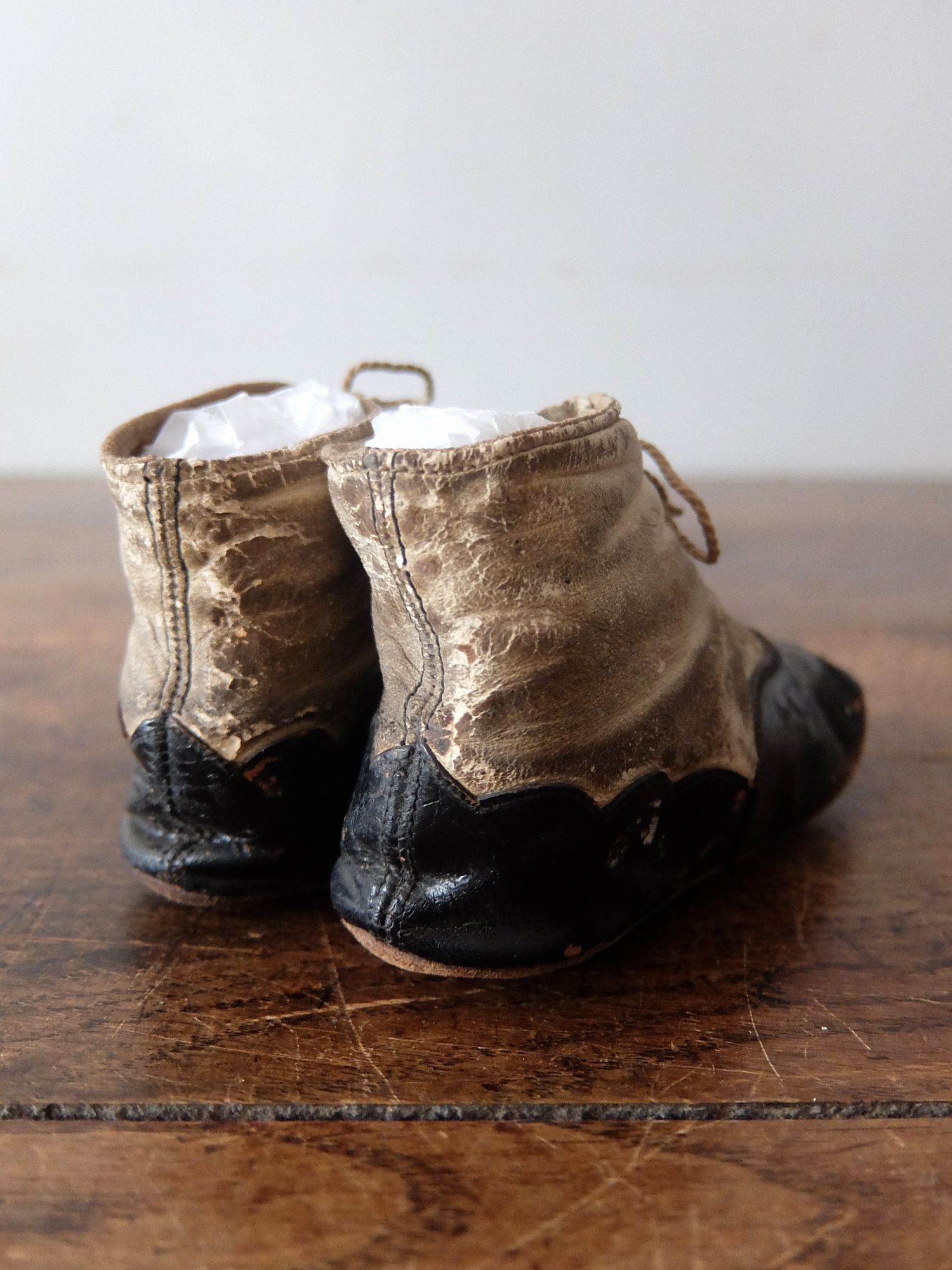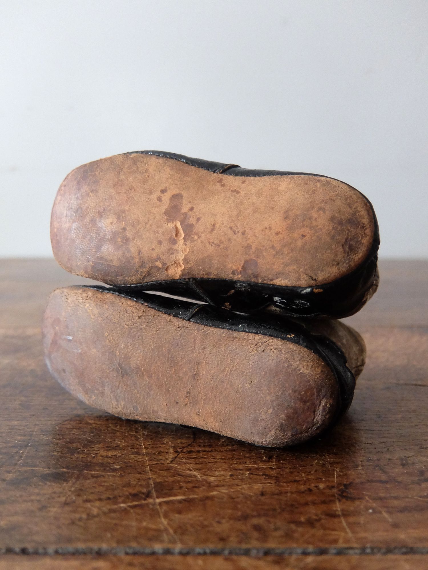 使い込まれた革の雰囲気が魅力的な子供用/人形用のベビーシューズ