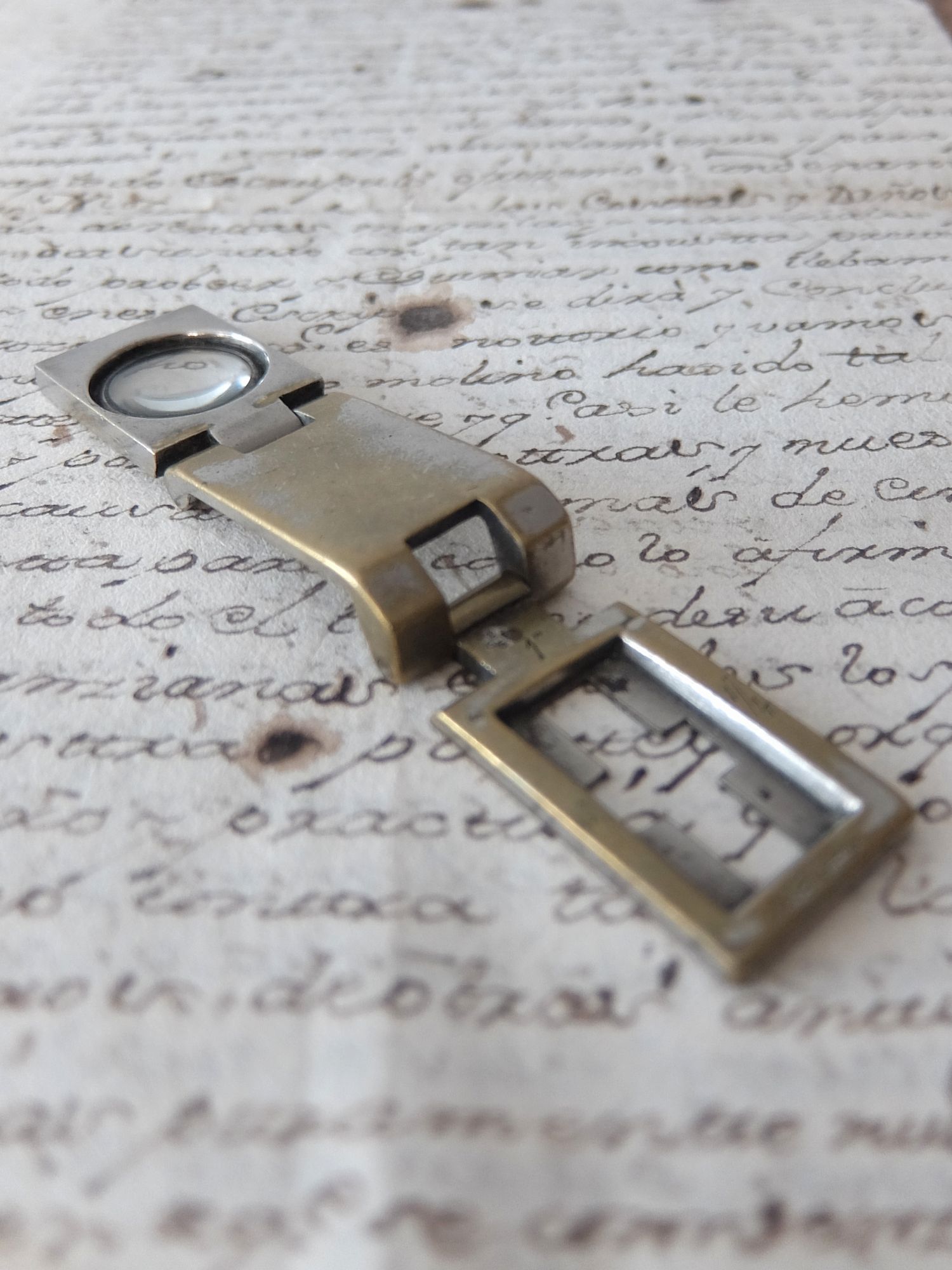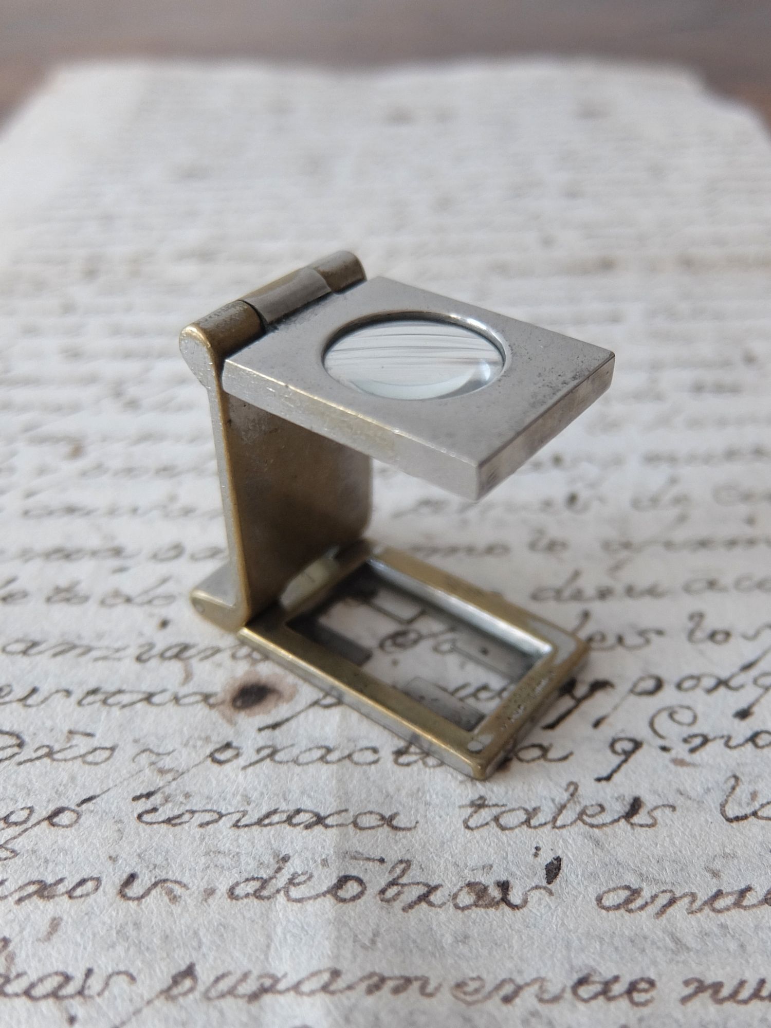 経年の雰囲気が魅力的な携帯用の折り畳みルーペ