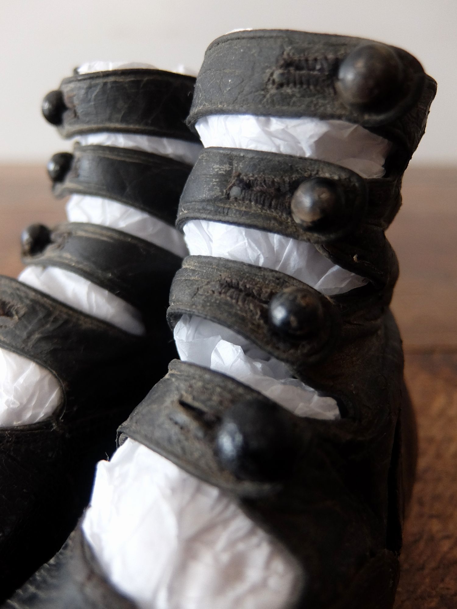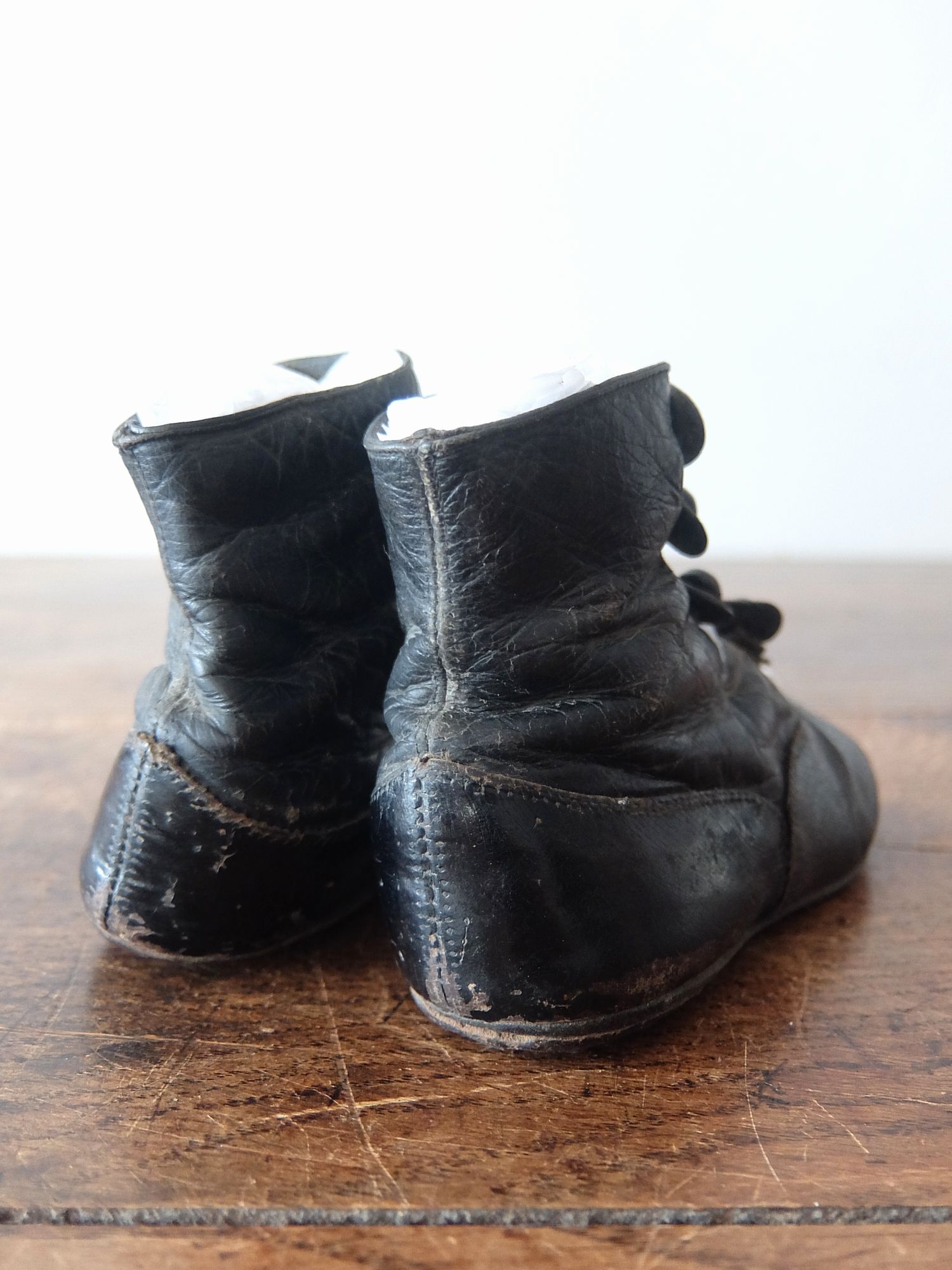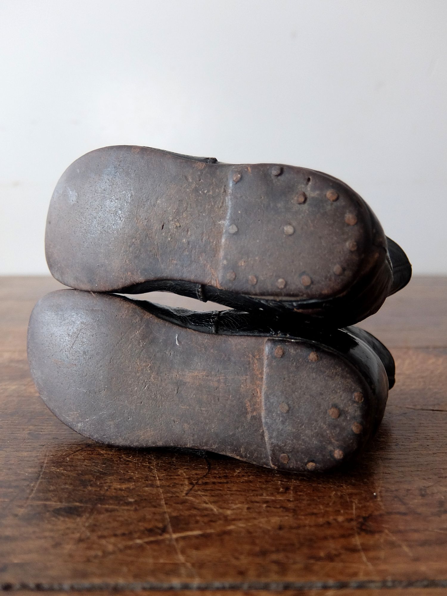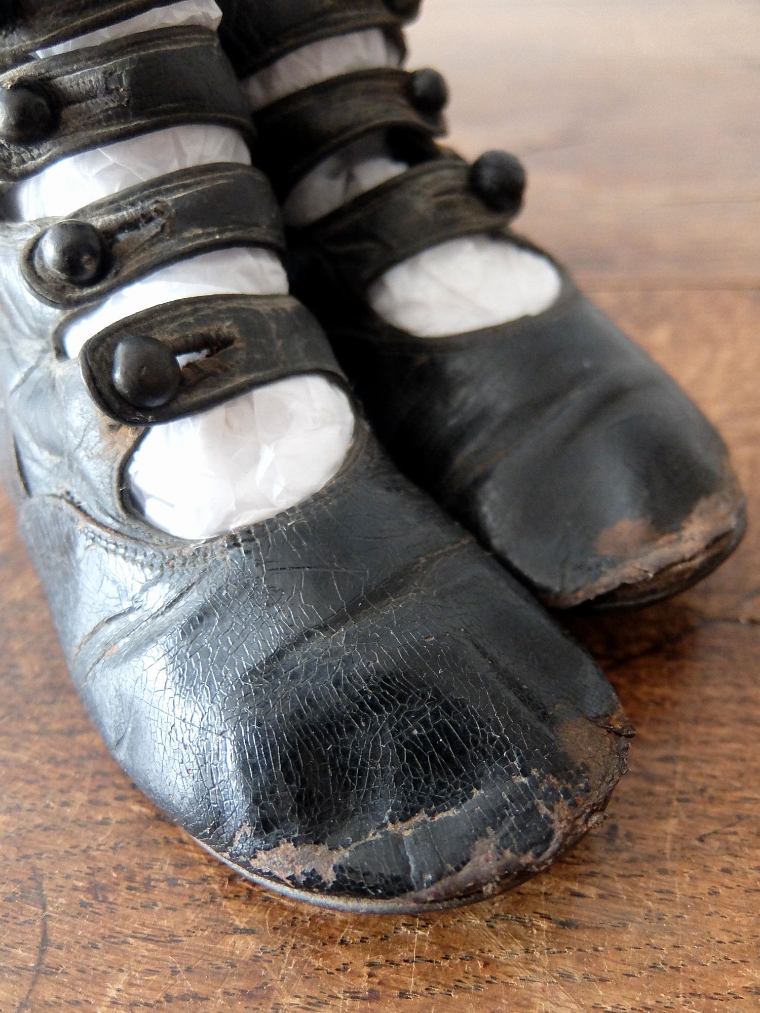 使い込まれた革の雰囲気が魅力的な子供用/人形用のヴィクトリアンベビーシューズ