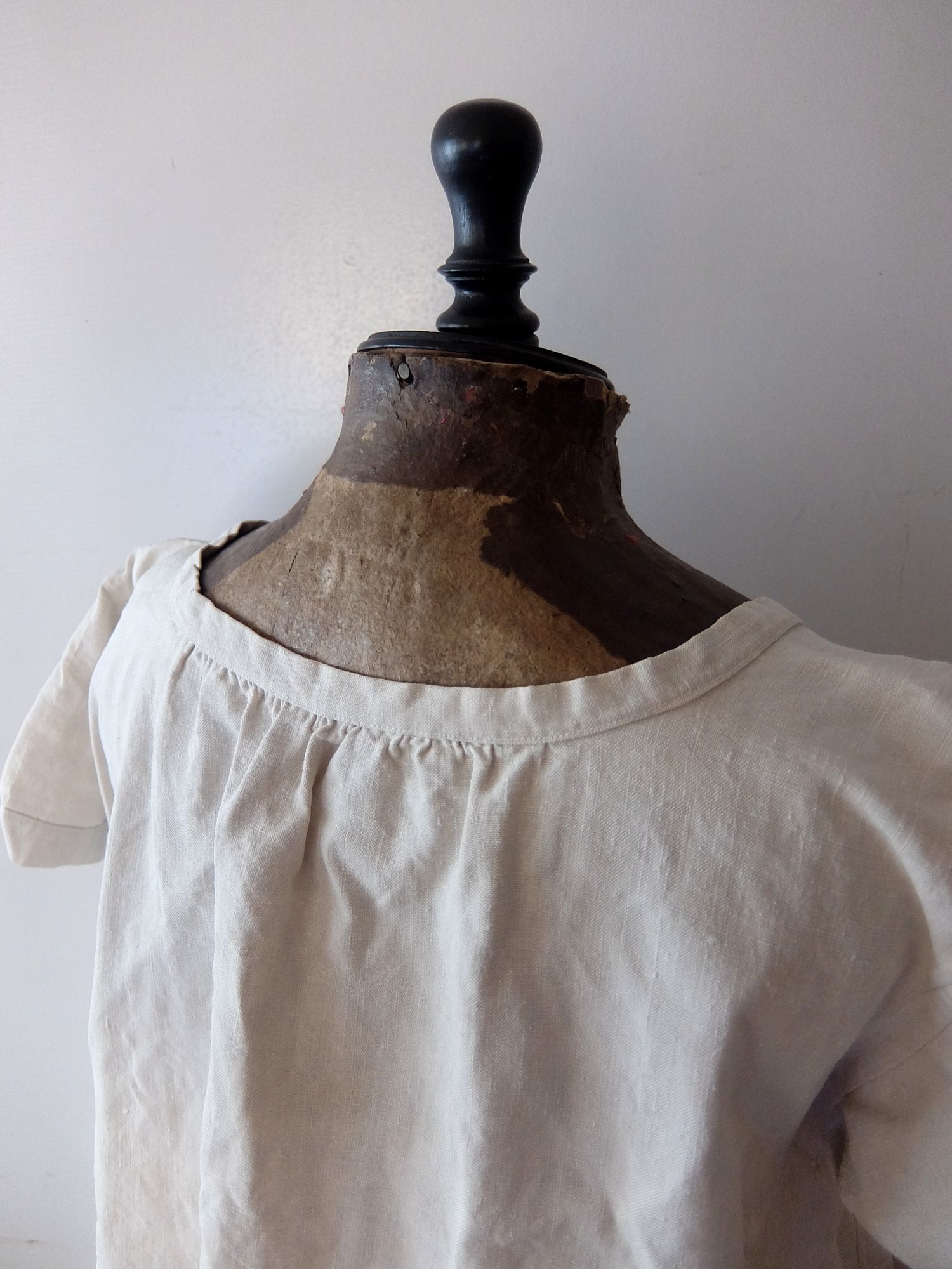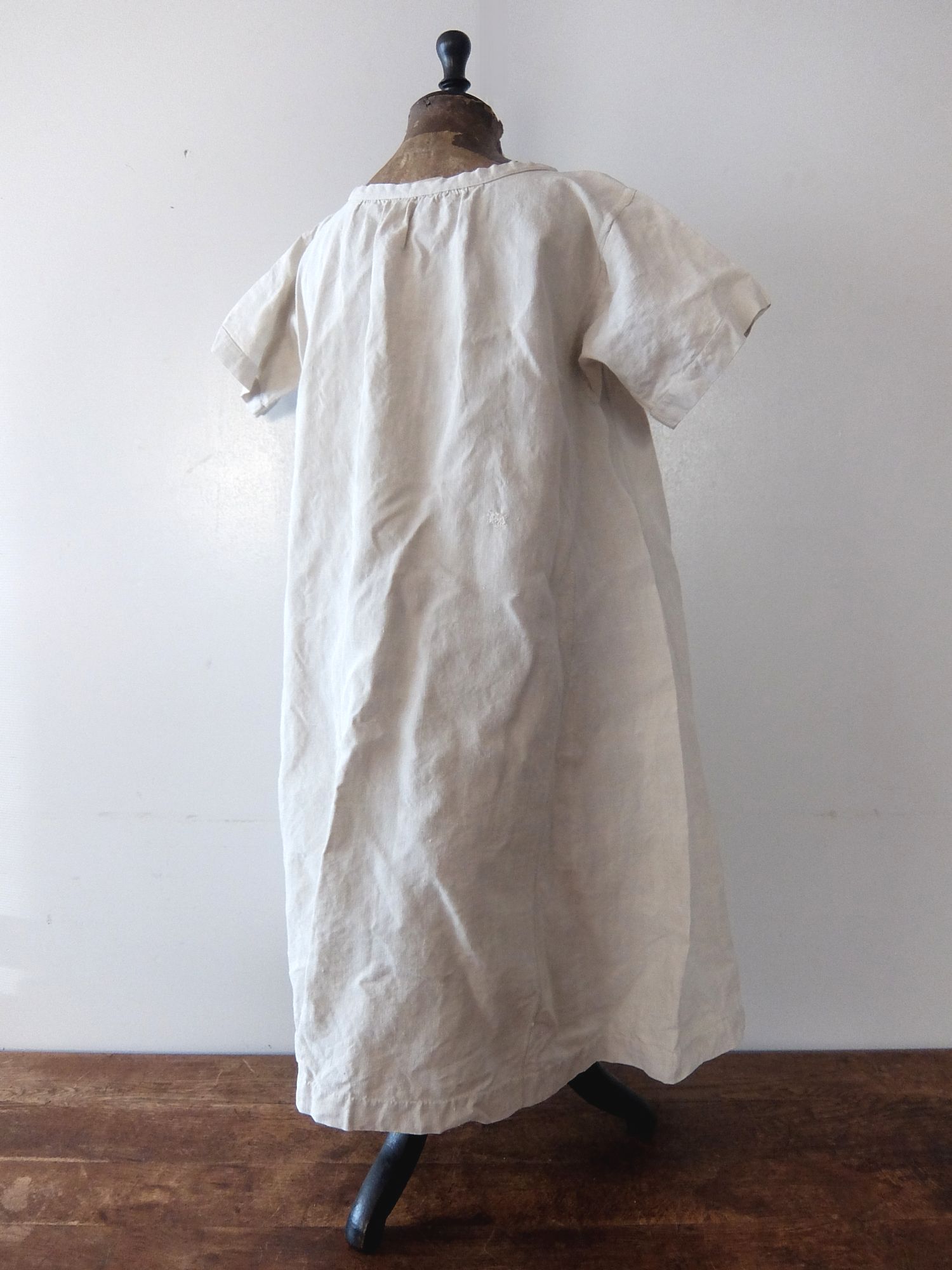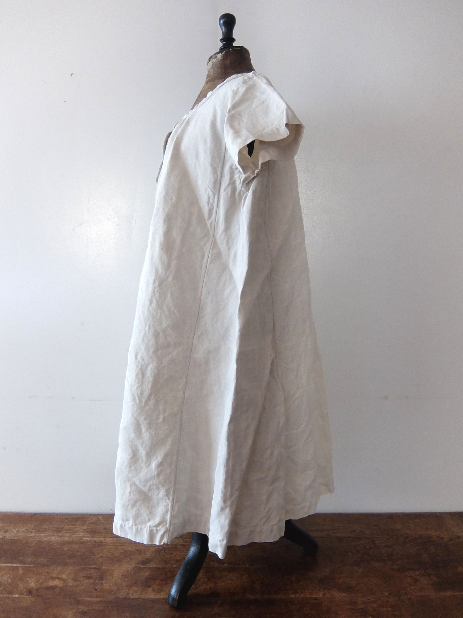背中のハンドギャザーの縫製が美しいフレンチリネンのスモッグシャツ/ナイティドレス