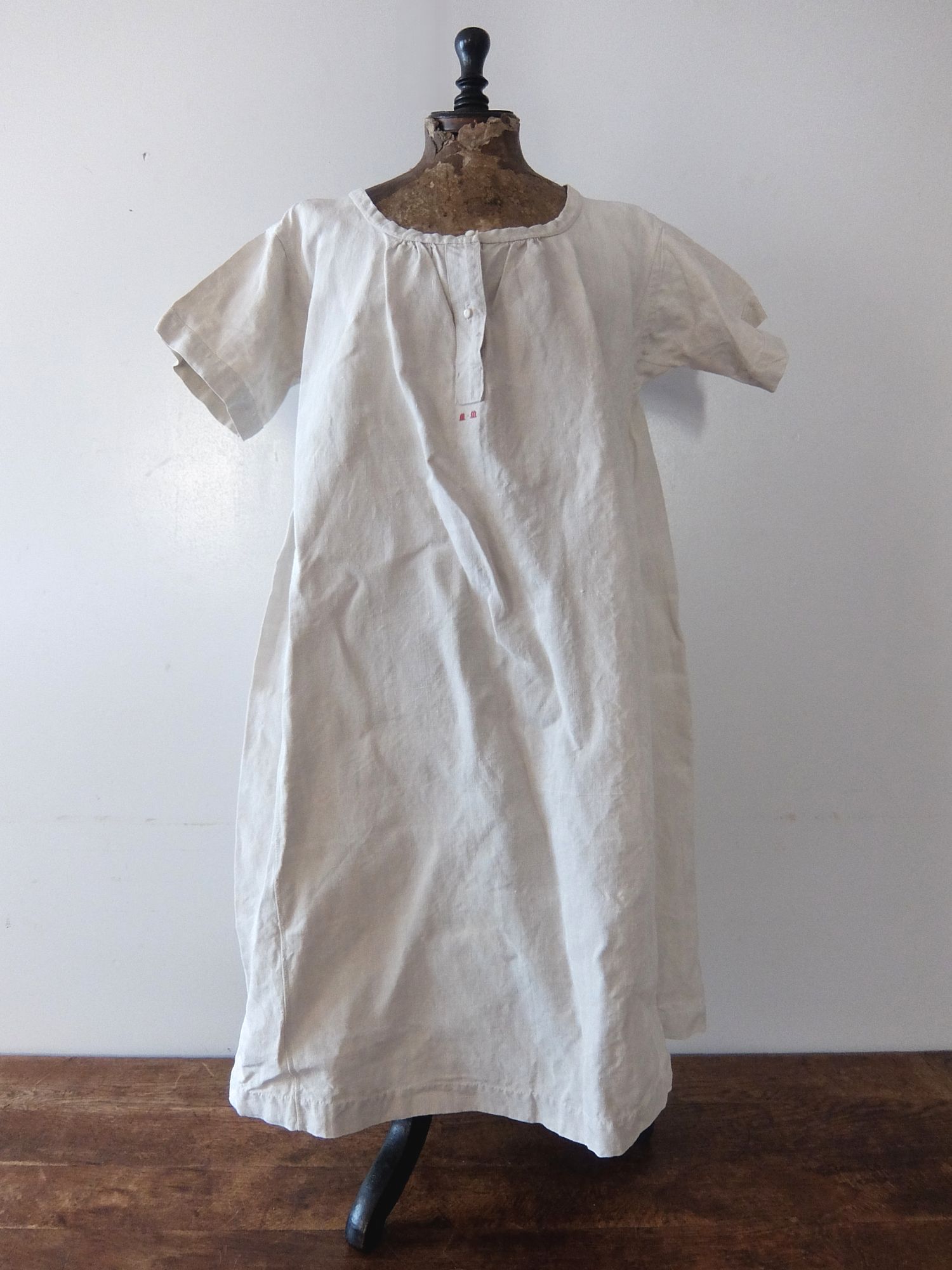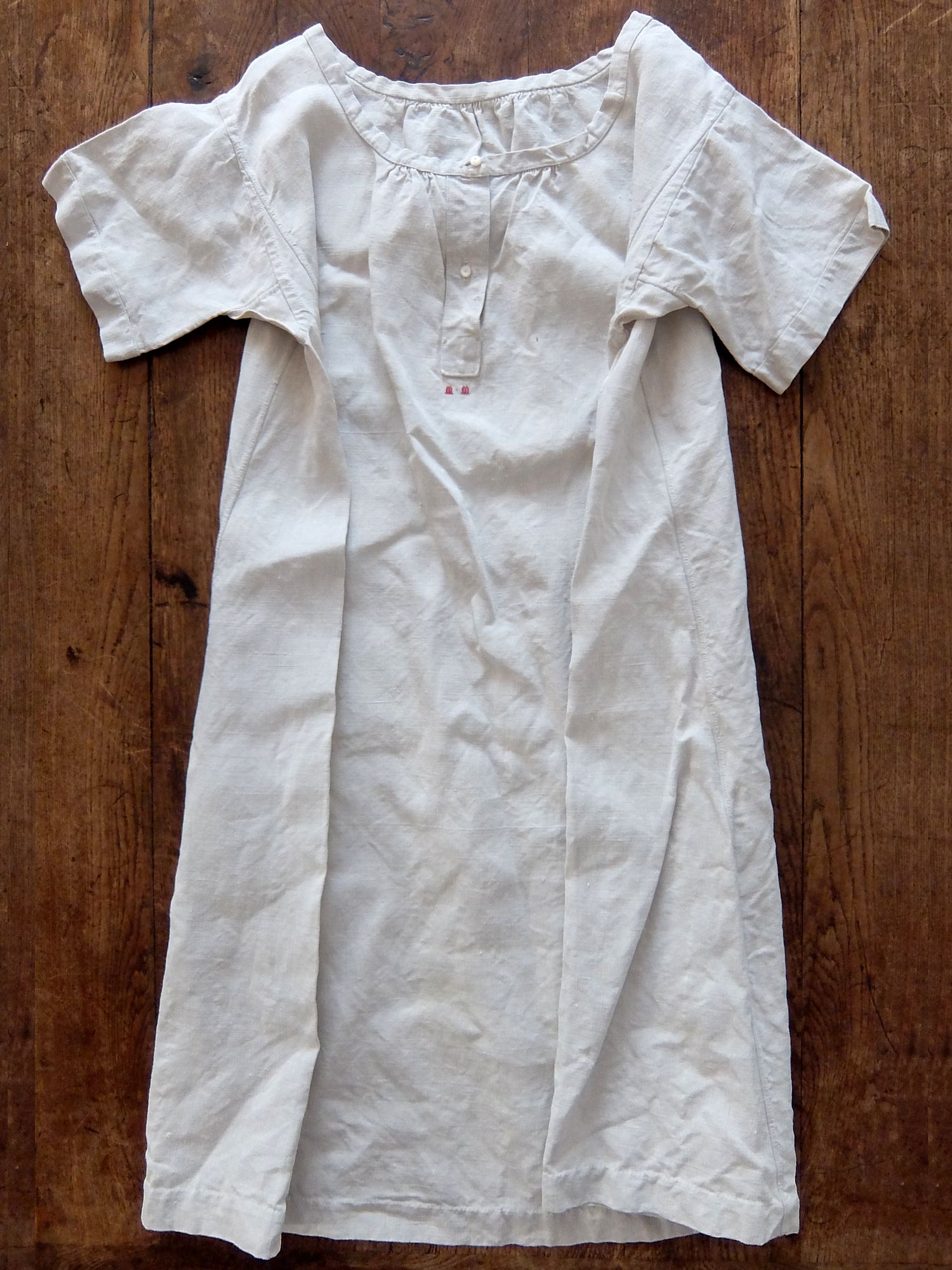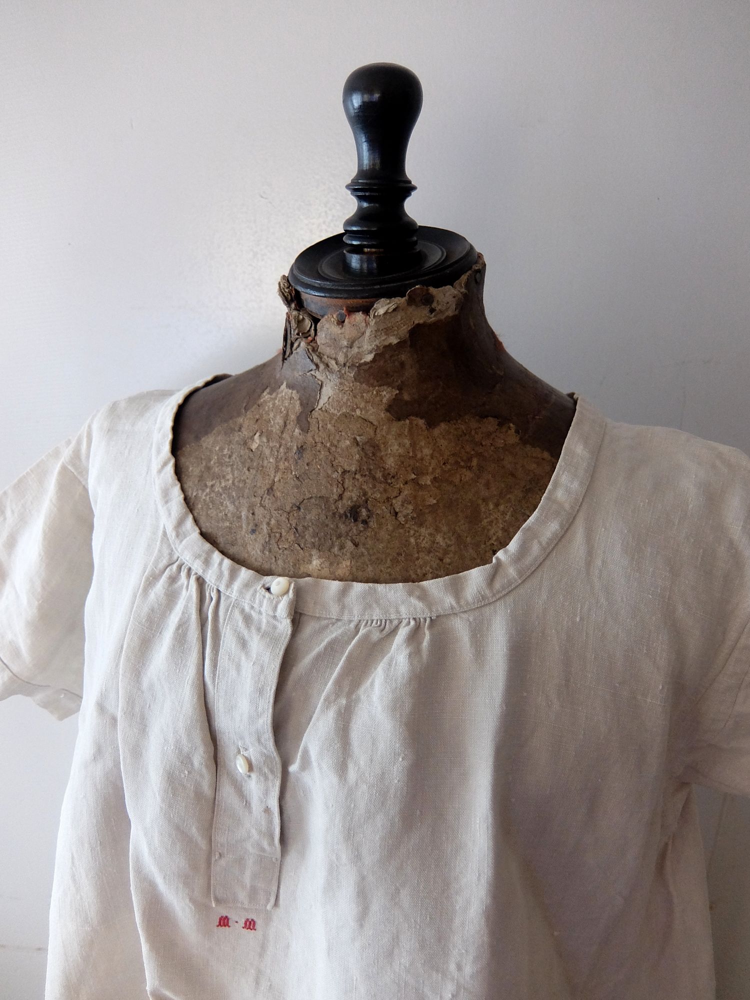 背中のハンドギャザーの縫製が美しいフレンチリネンのスモッグシャツ/ナイティドレス