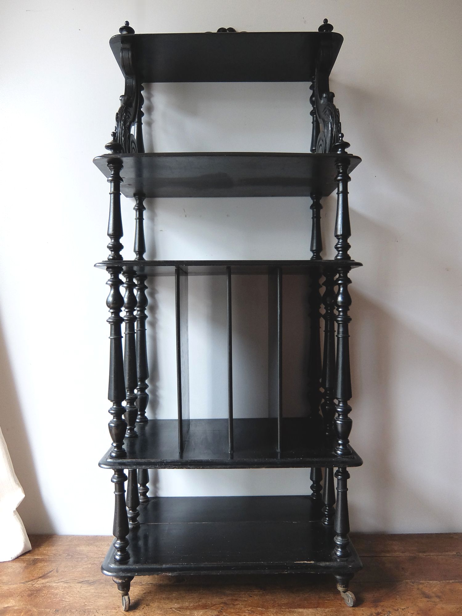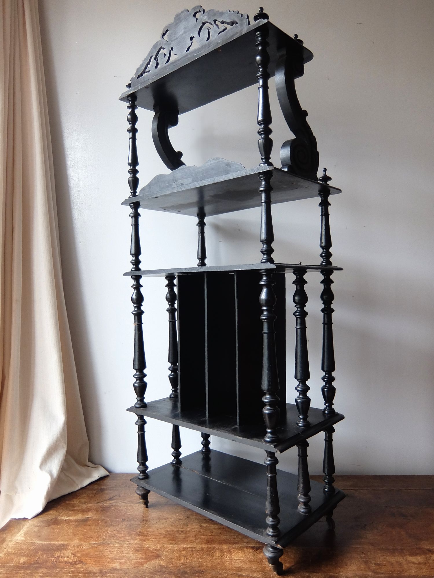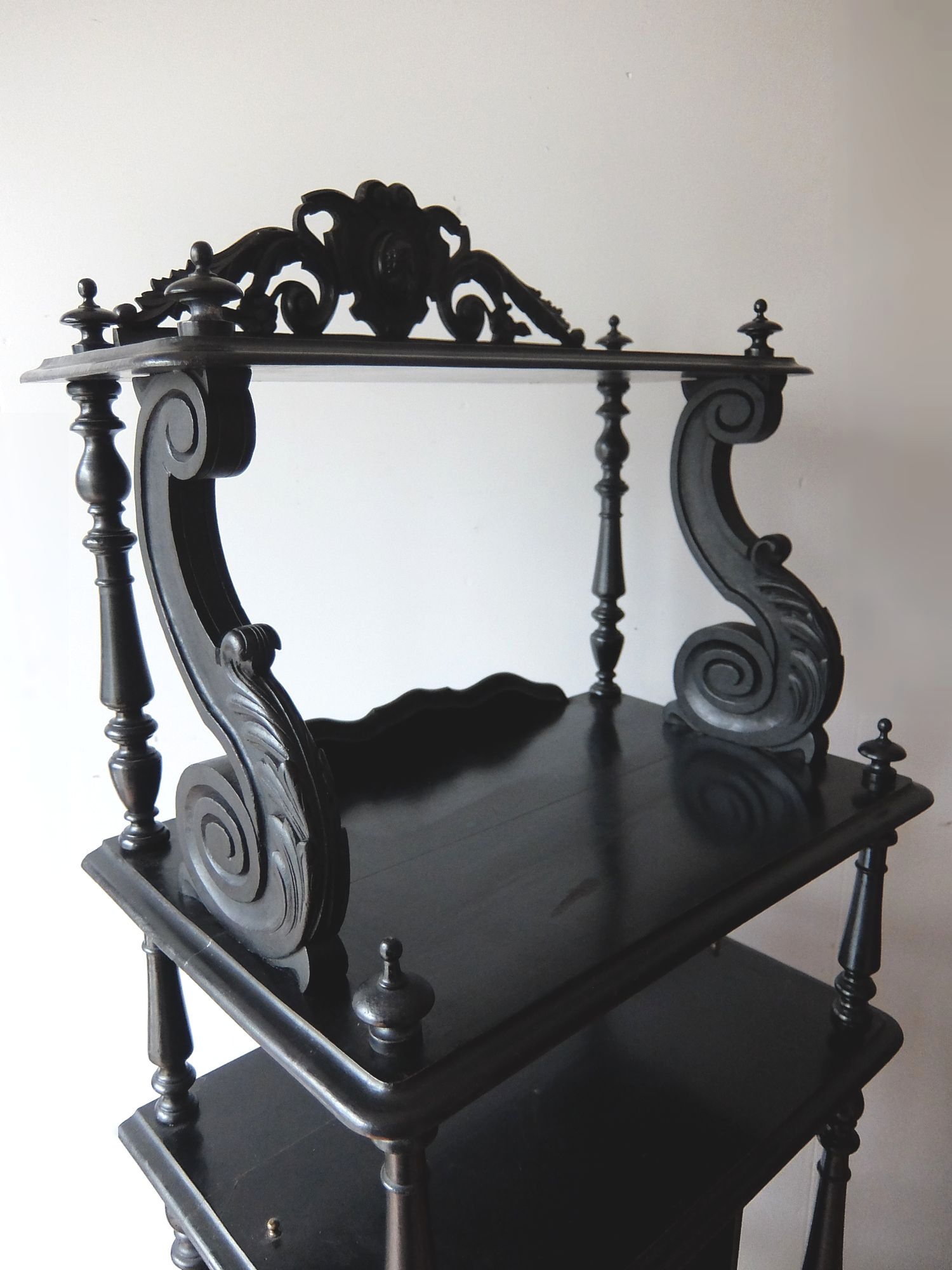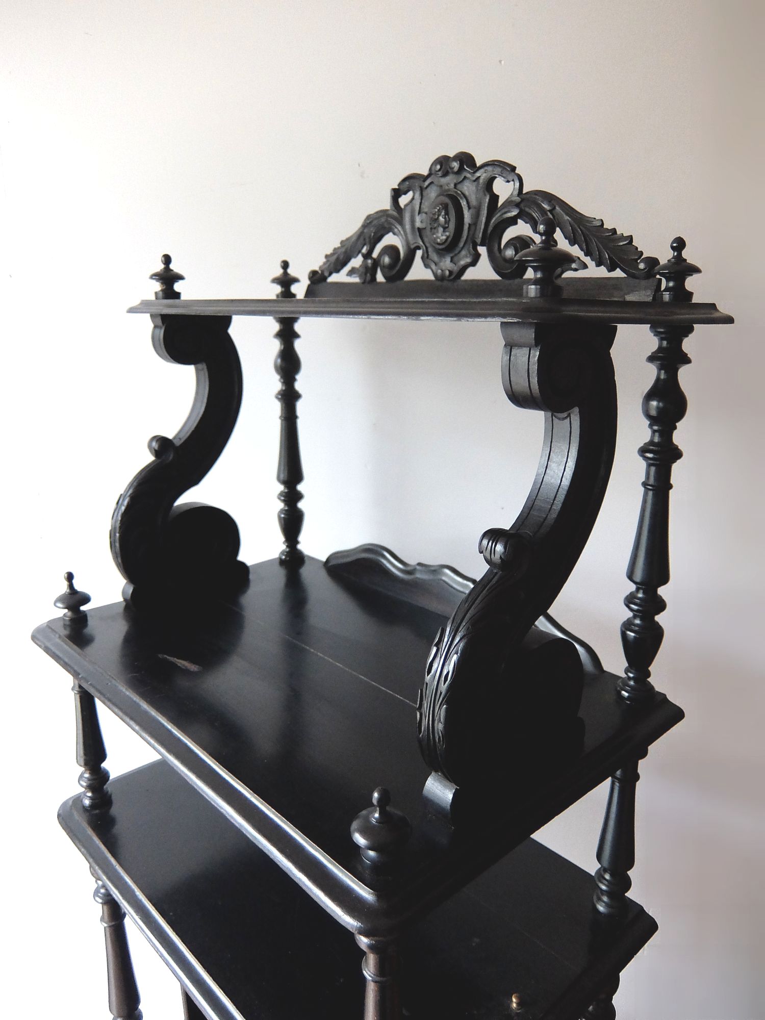 カメオのような繊細な彫刻と漆黒の塗装が美しいナポレオンⅢ世様式のシェルフ
