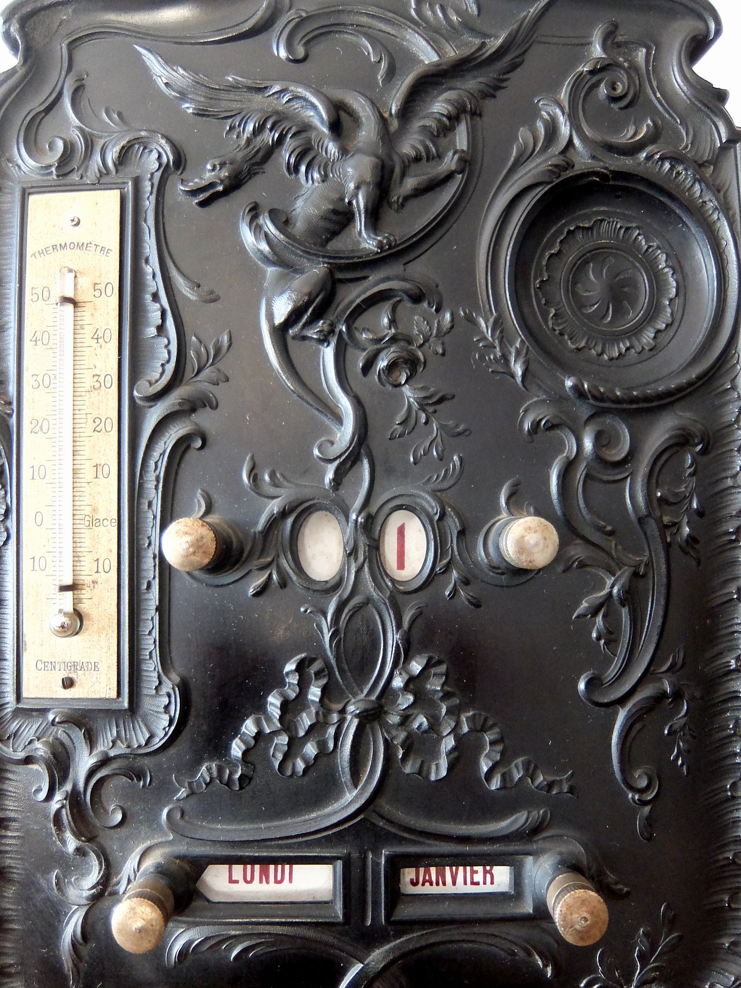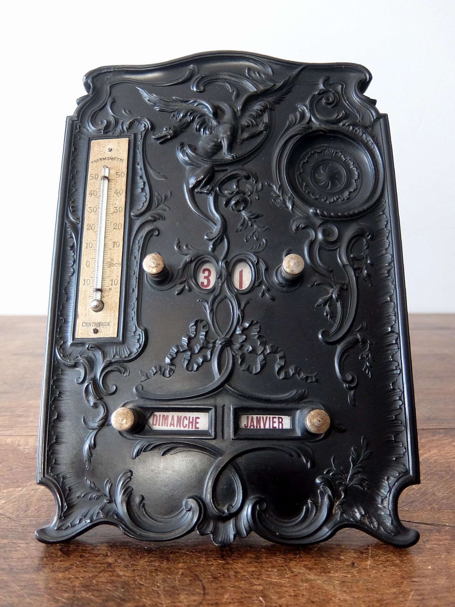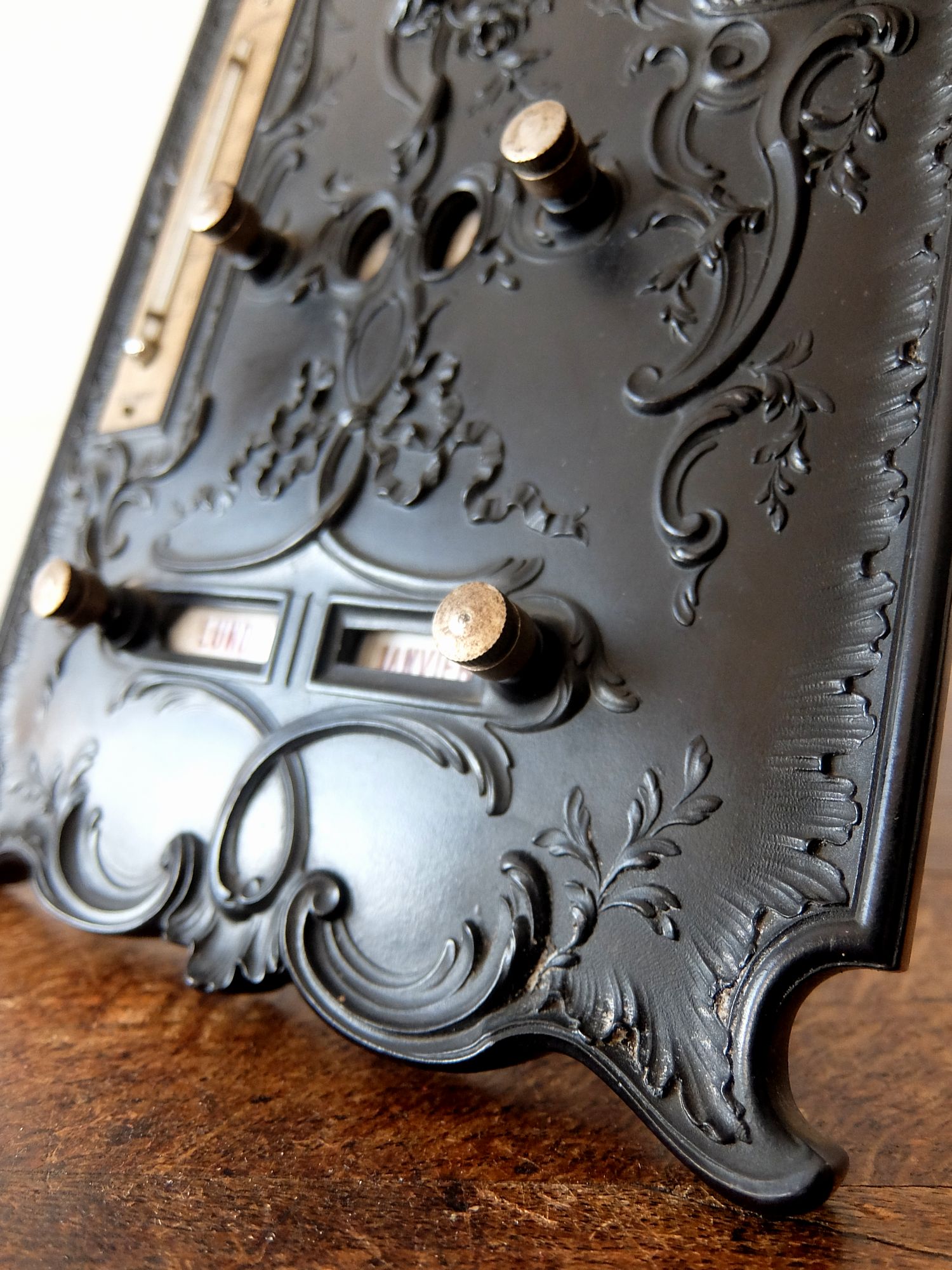 雄牛の血液と木屑を混ぜて熱圧縮した素材【Bois Durci】で作られたナポレオンⅢ世様式の万年カレンダー