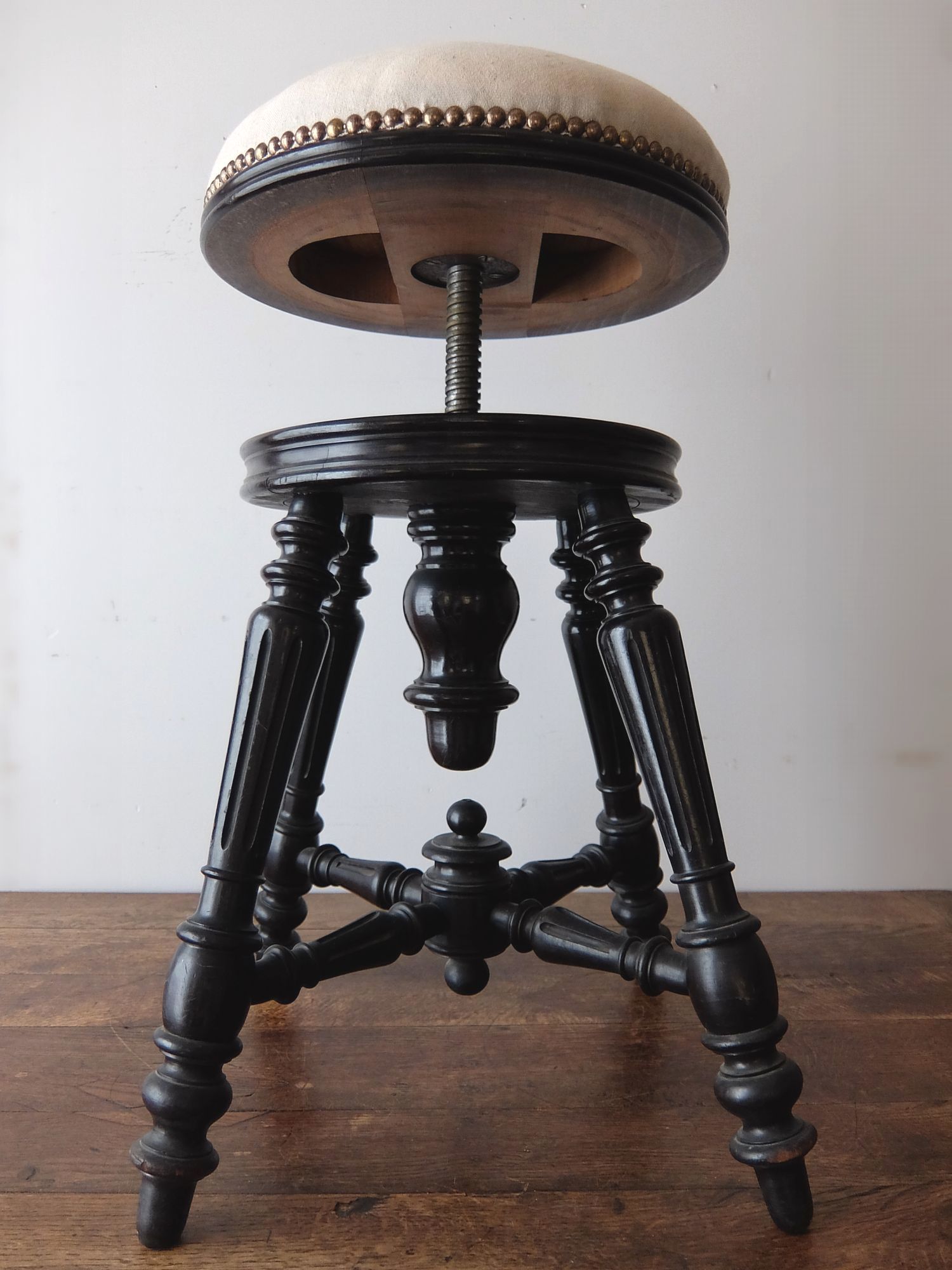 黒の塗装と意匠が美しいナポレオンⅢ世様式のピアノスツール