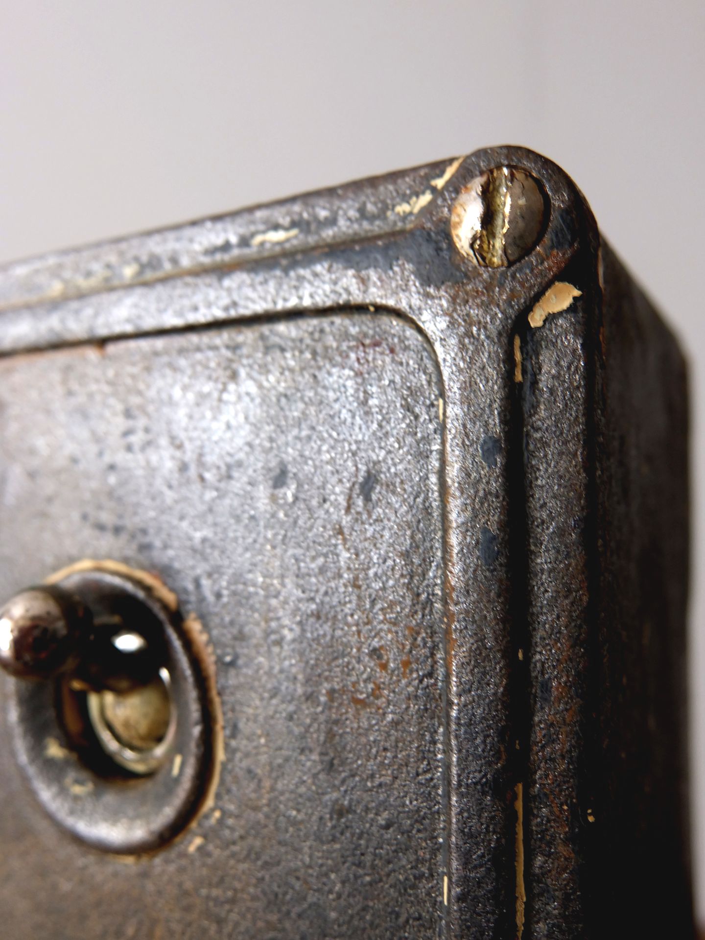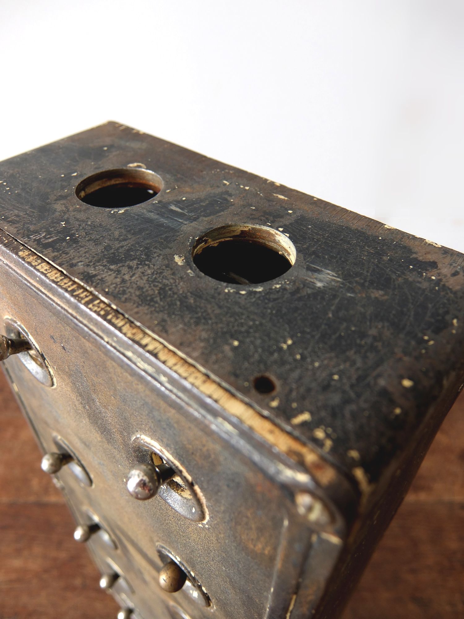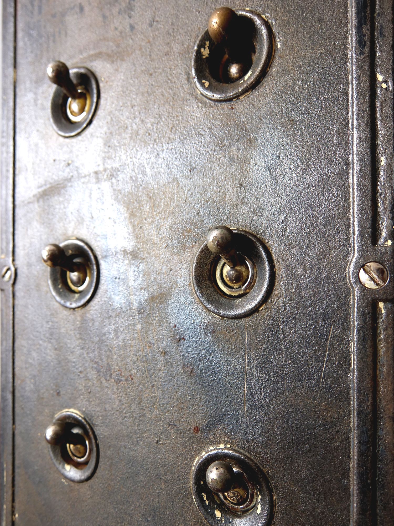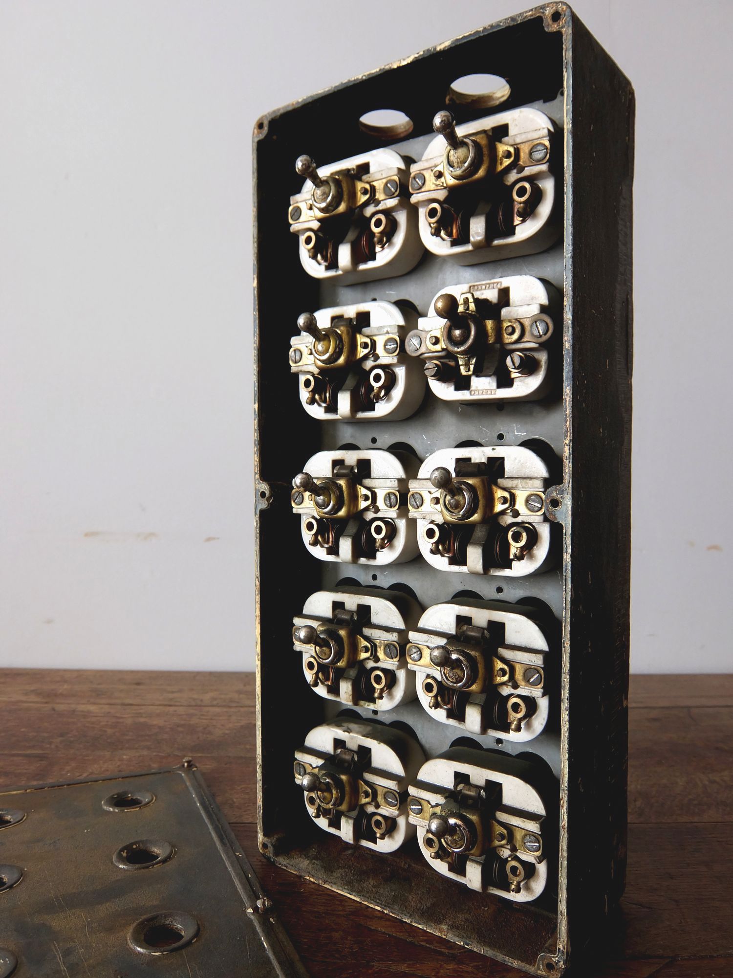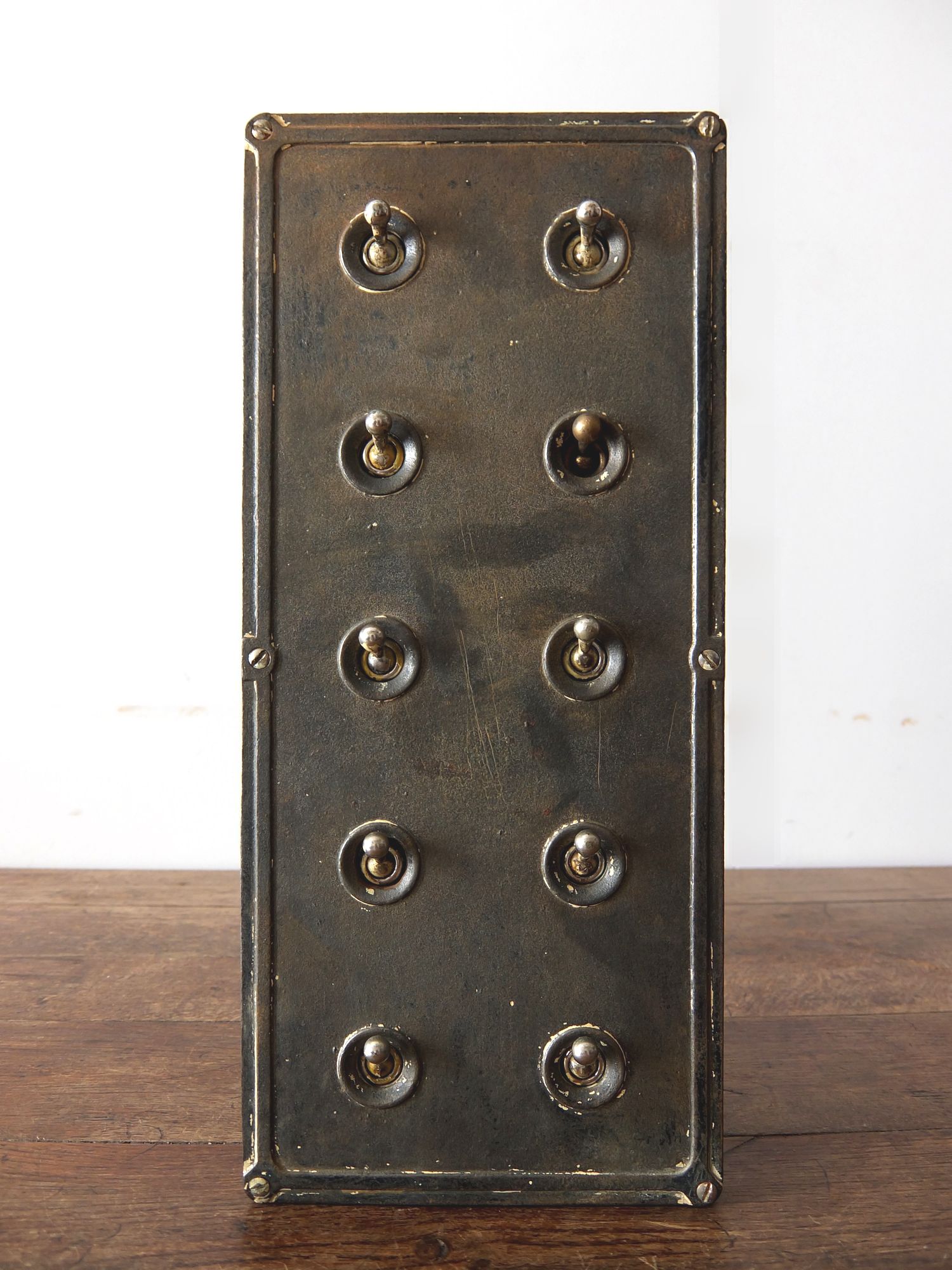 鉄のケースに収まった工業系の10連スイッチ