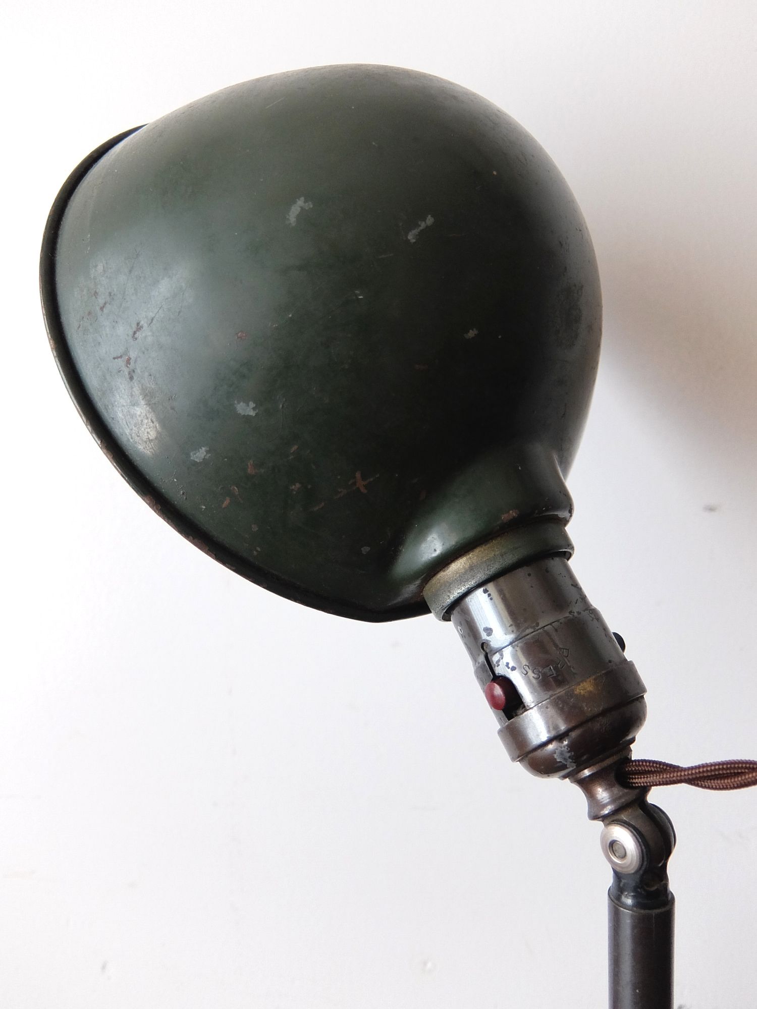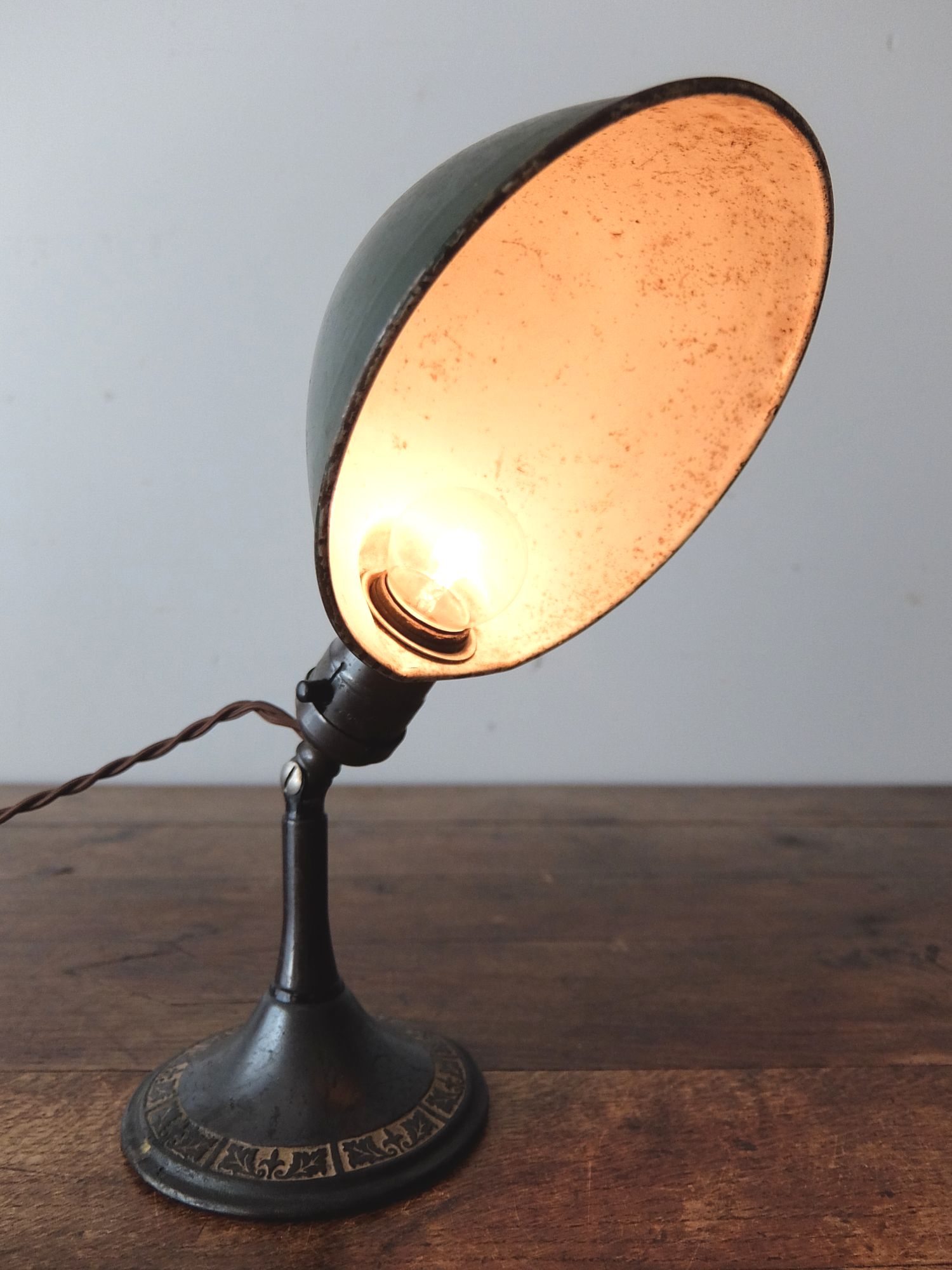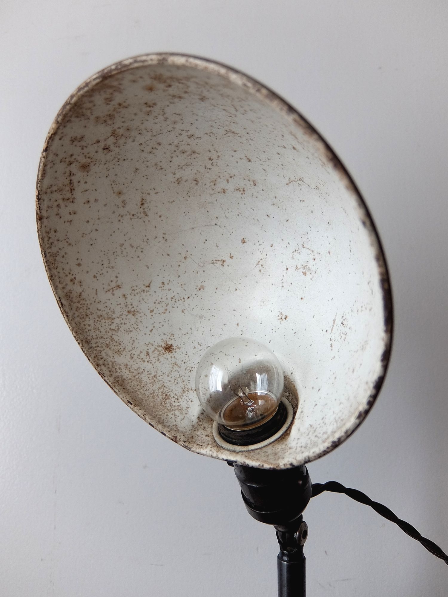 底部にスプリング式のクランプが付いた可変式のデスクランプ