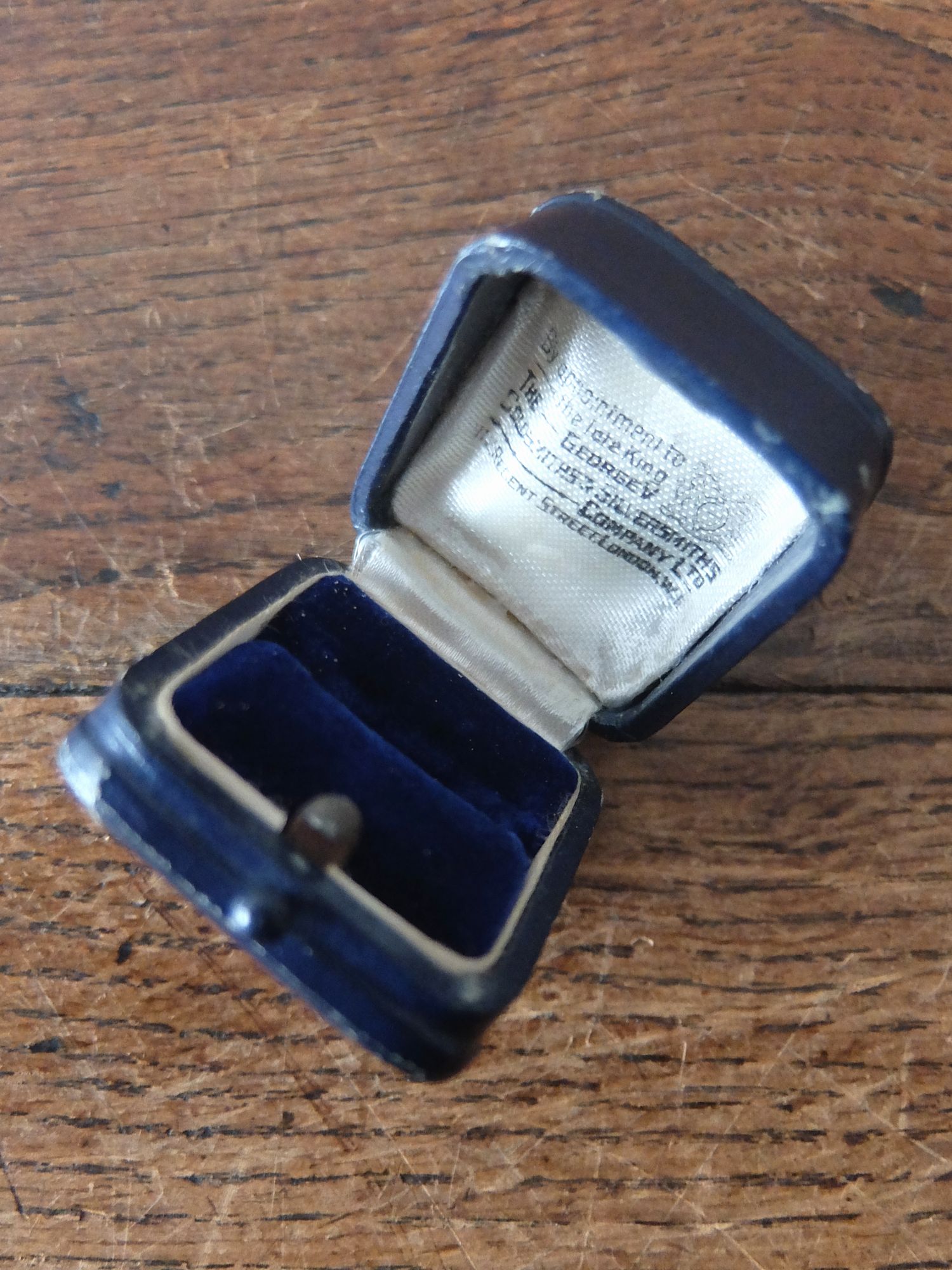 宝飾店のロゴが入った指輪用のディスプレイボックス