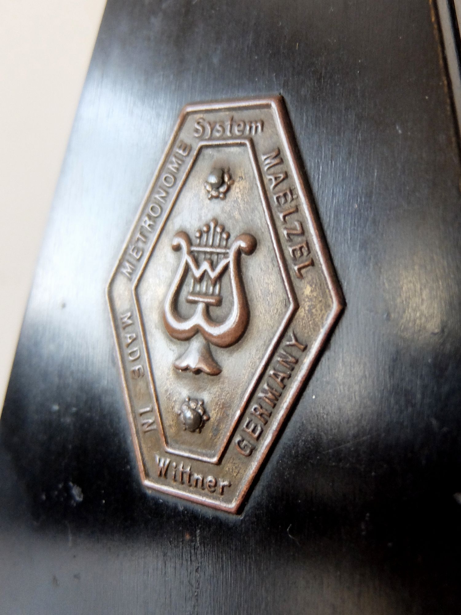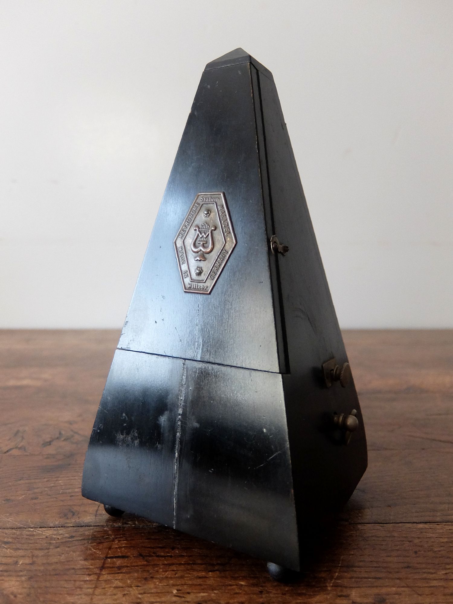 漆黒に塗装された【MAELZEL】社のゼンマイ式メトロノーム (ベル付)