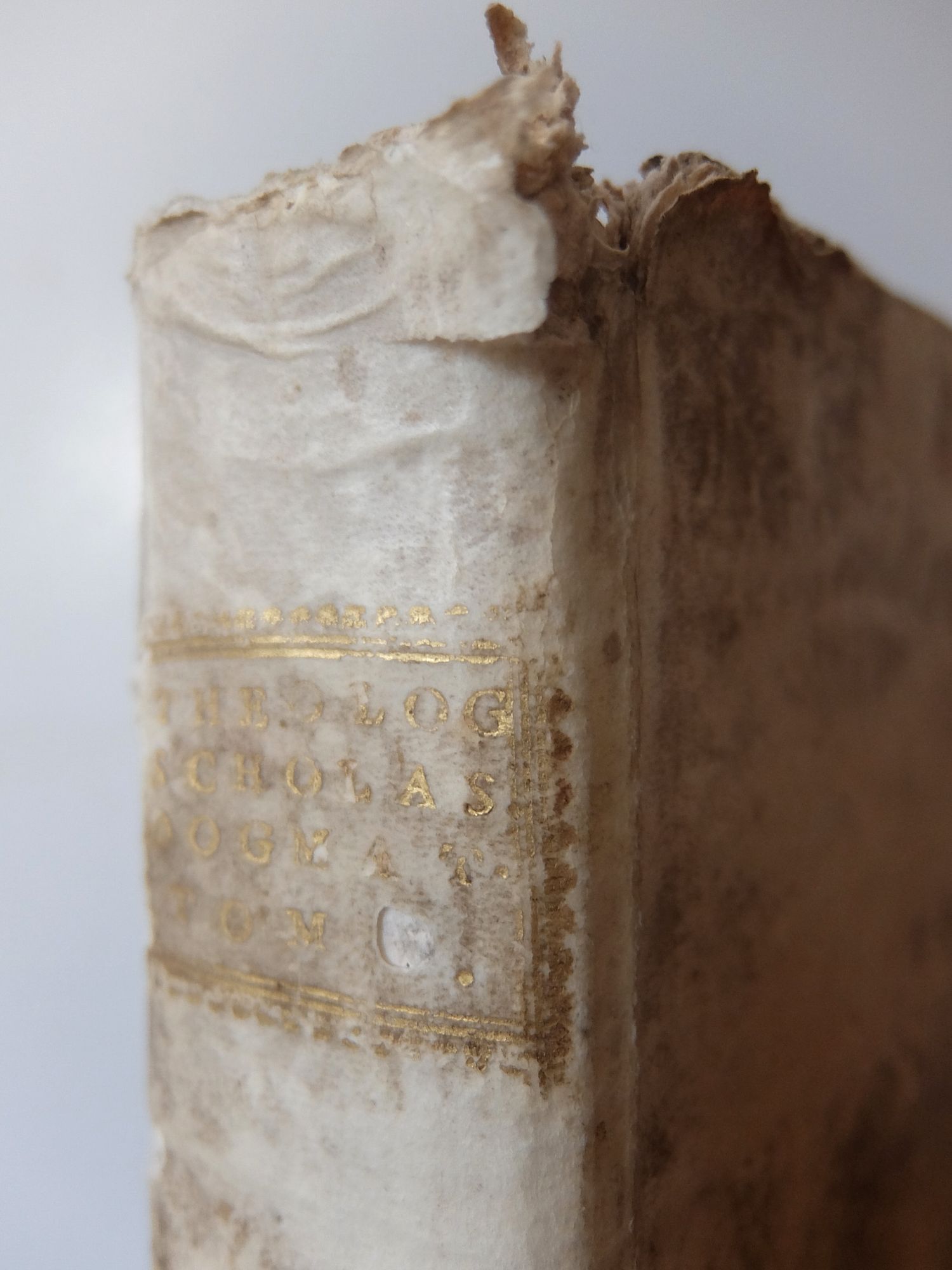 朽ち果てた羊皮紙の表装の神学書
