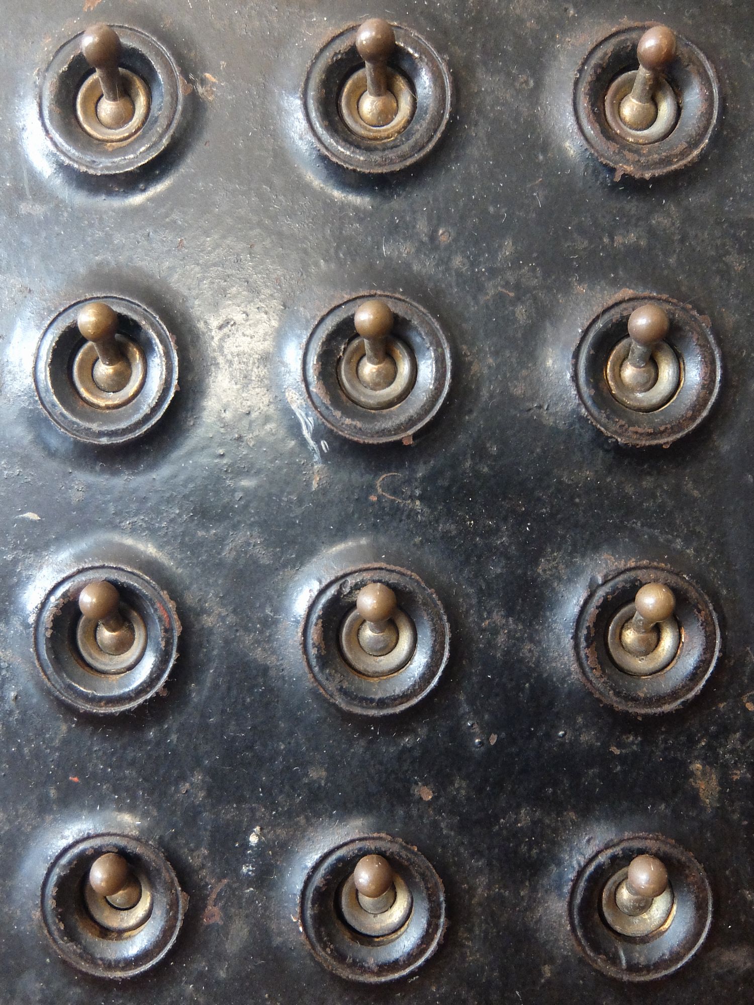 歯科で使用していたブロンズ製のスイッチ (スイッチ:7個, イギリス用コンセントプラグ:2口)