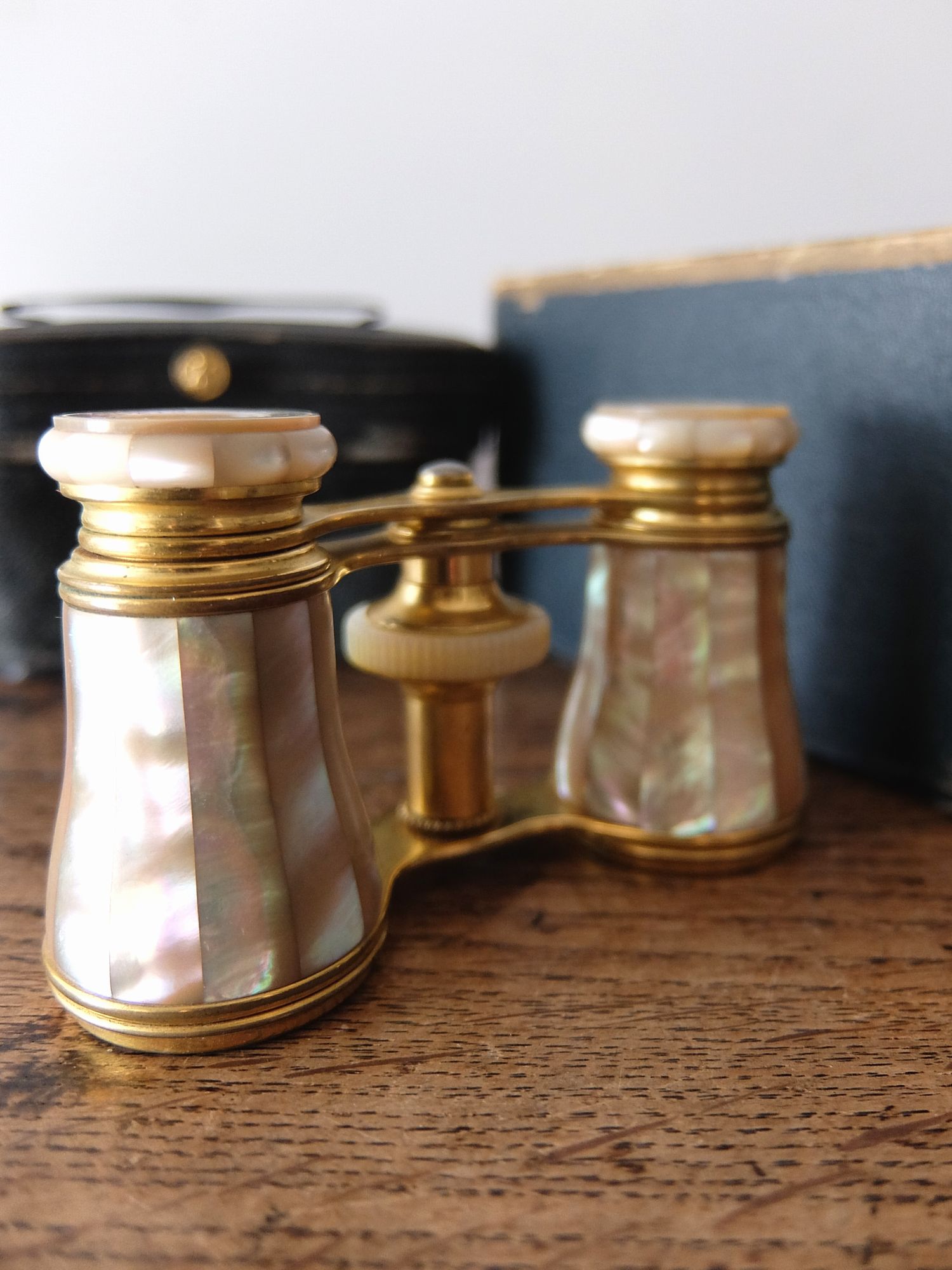 白蝶貝で装飾された【Lemaire Fabt】社の真鍮製オペラグラス(革製ケース・箱付き)