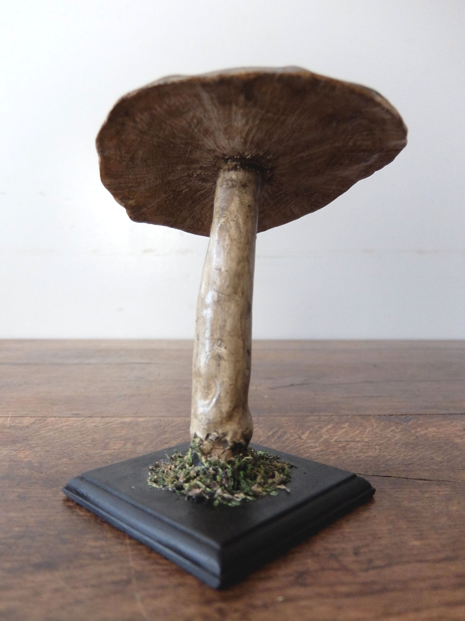 教育機関で使用されていたキノコの模型(土台:木製、キノコ部:パピエに石膏を塗ったもの)