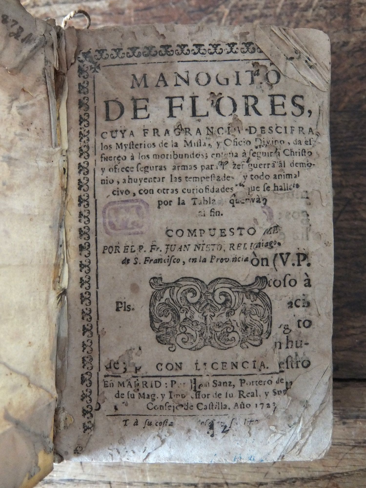 18世紀末の朽ち果てた羊皮紙表装のスペイン語の祈祷書