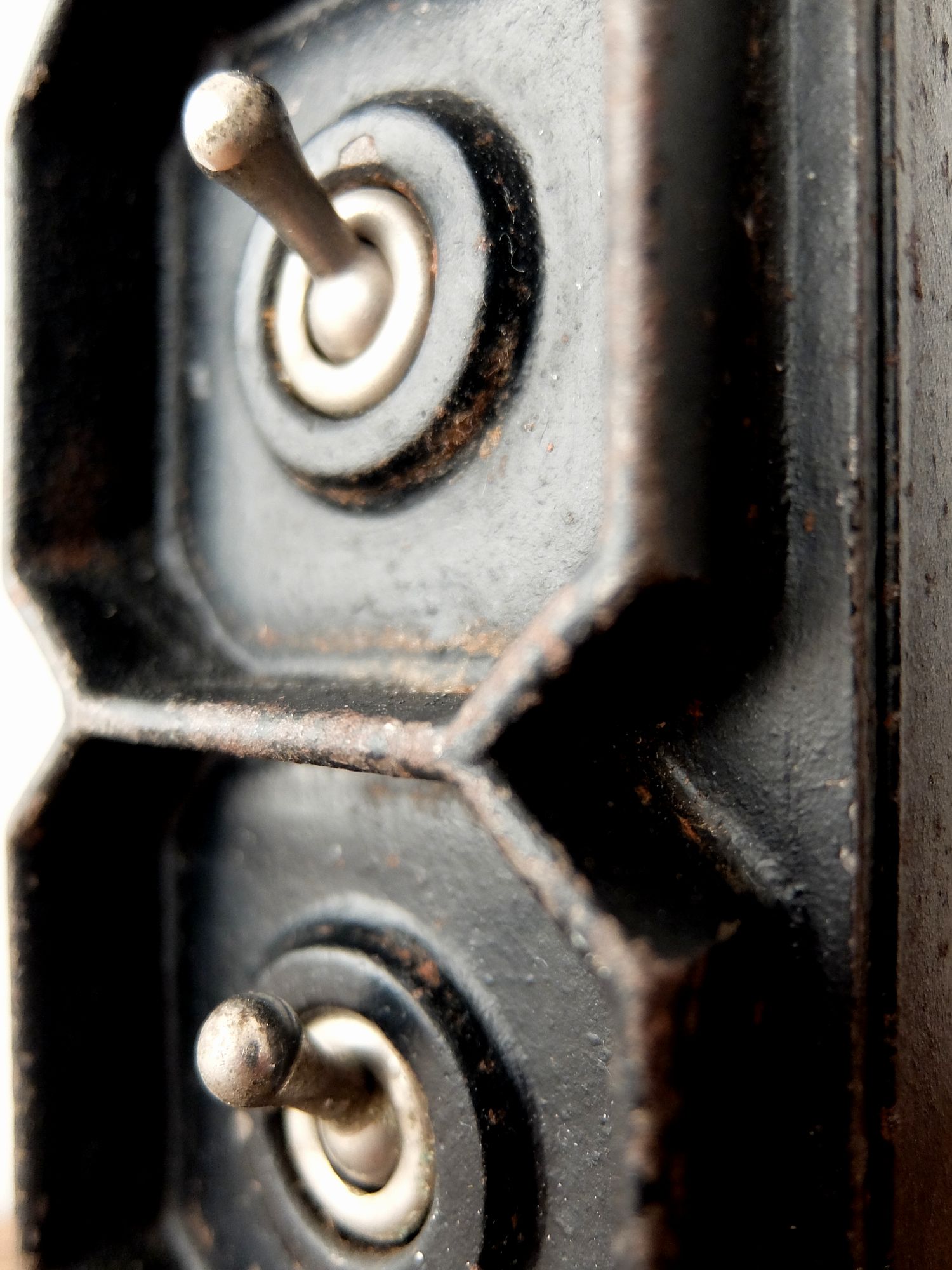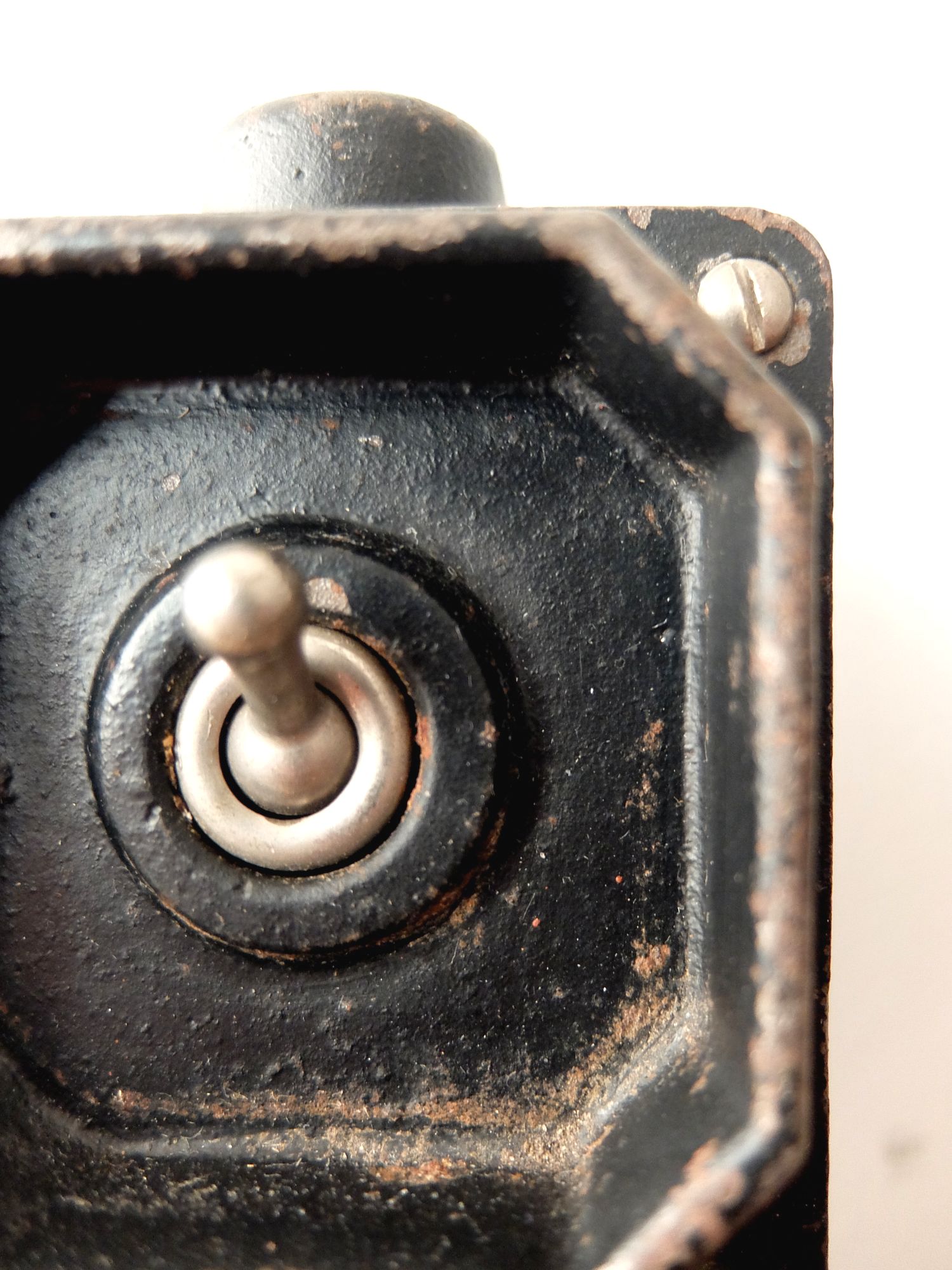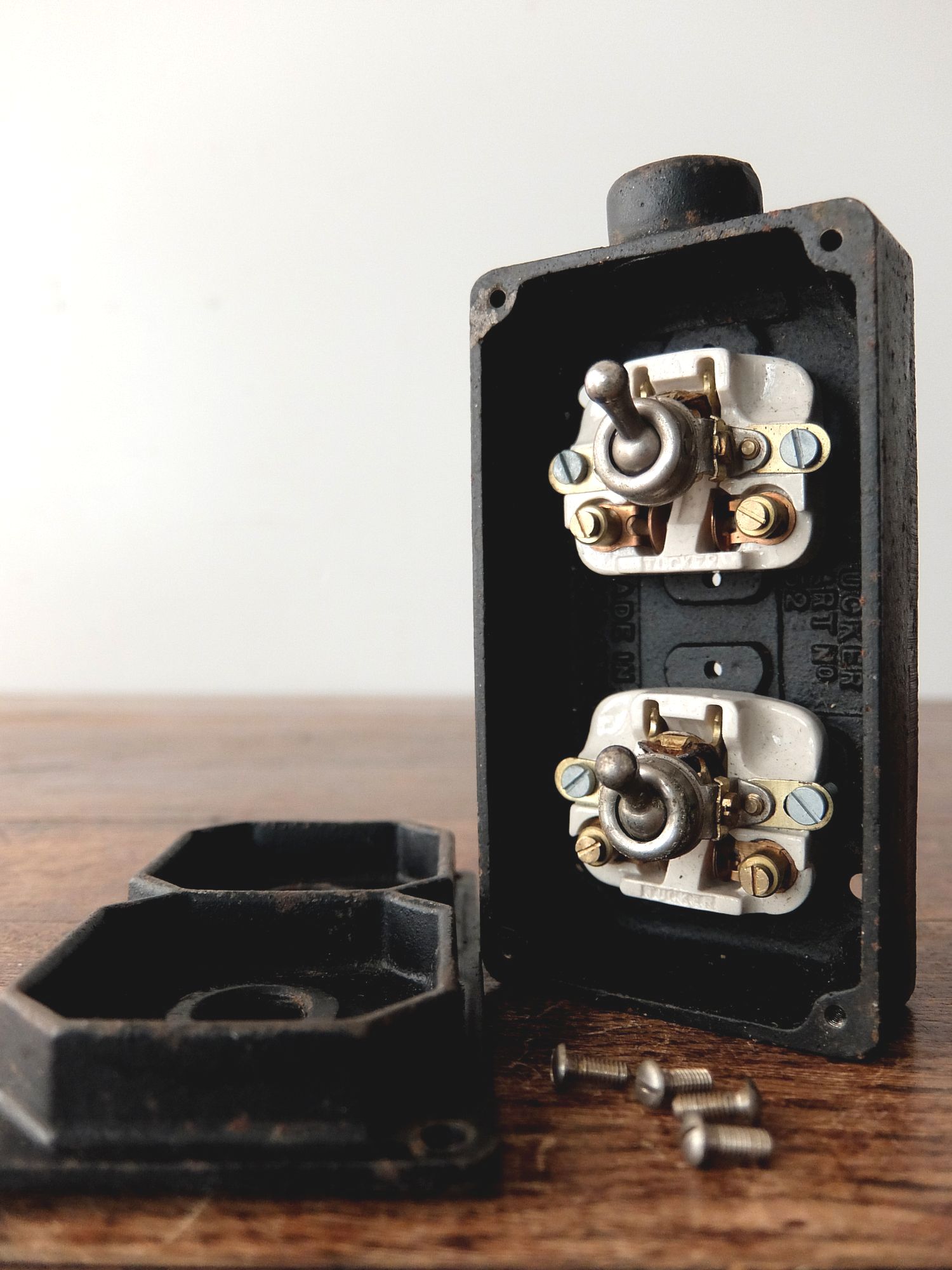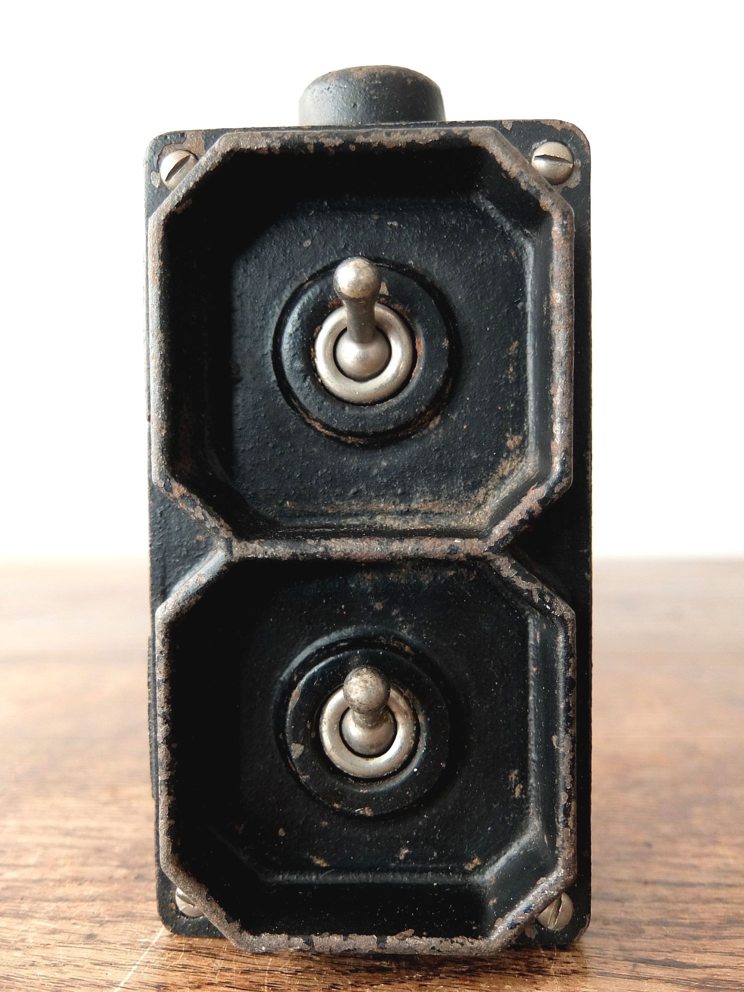 鉄のケースに収まった工業系の2連スイッチ