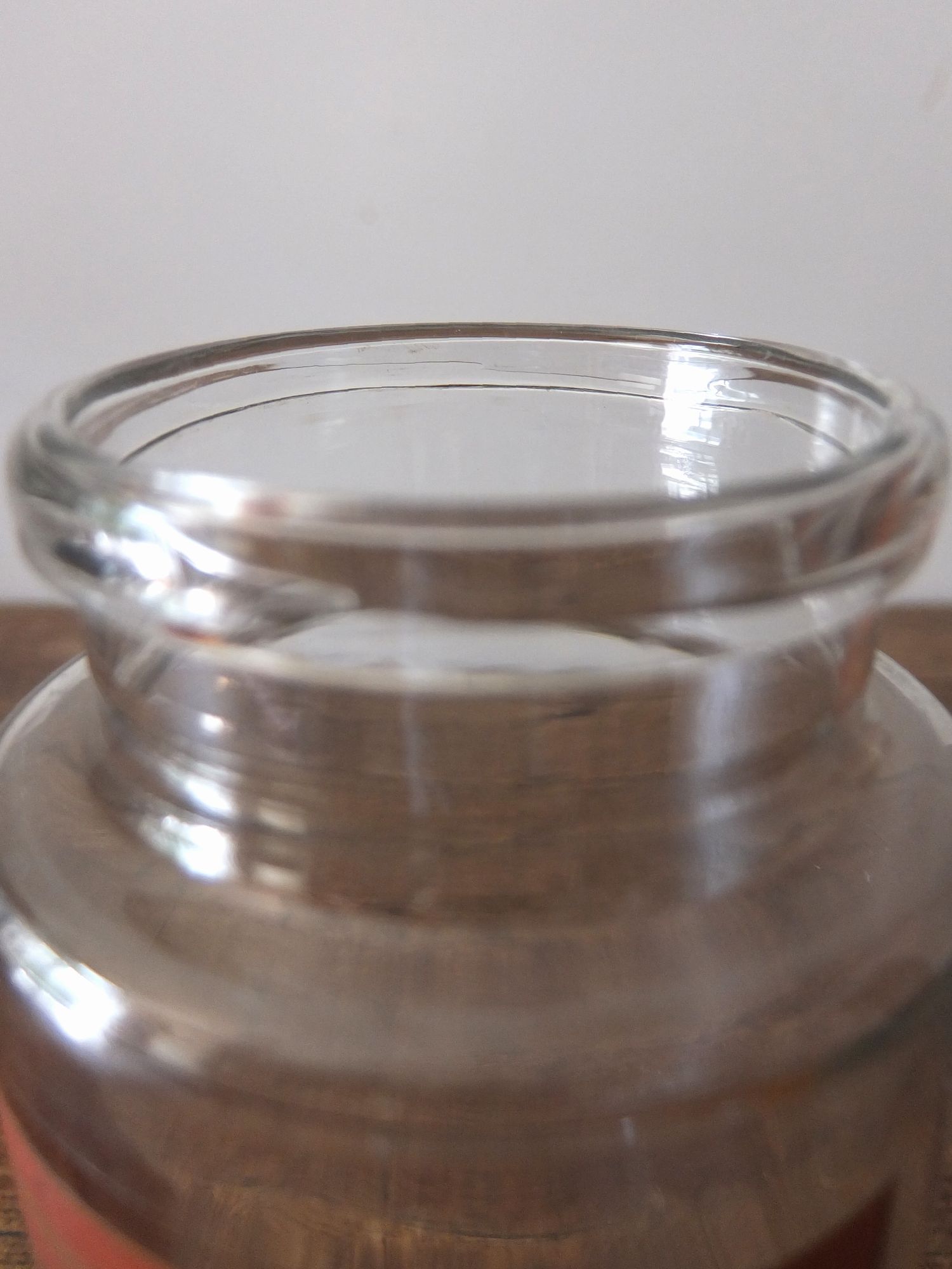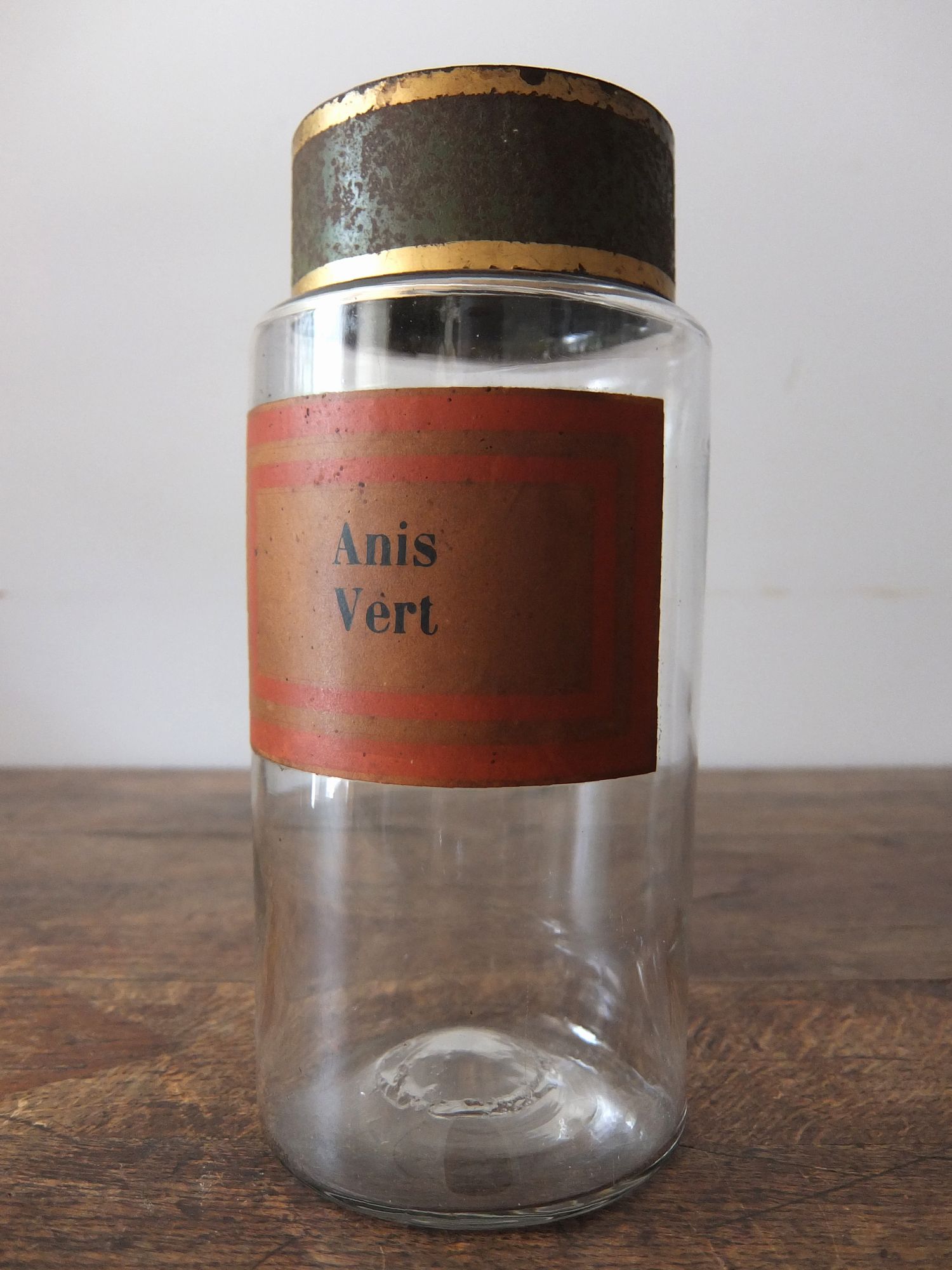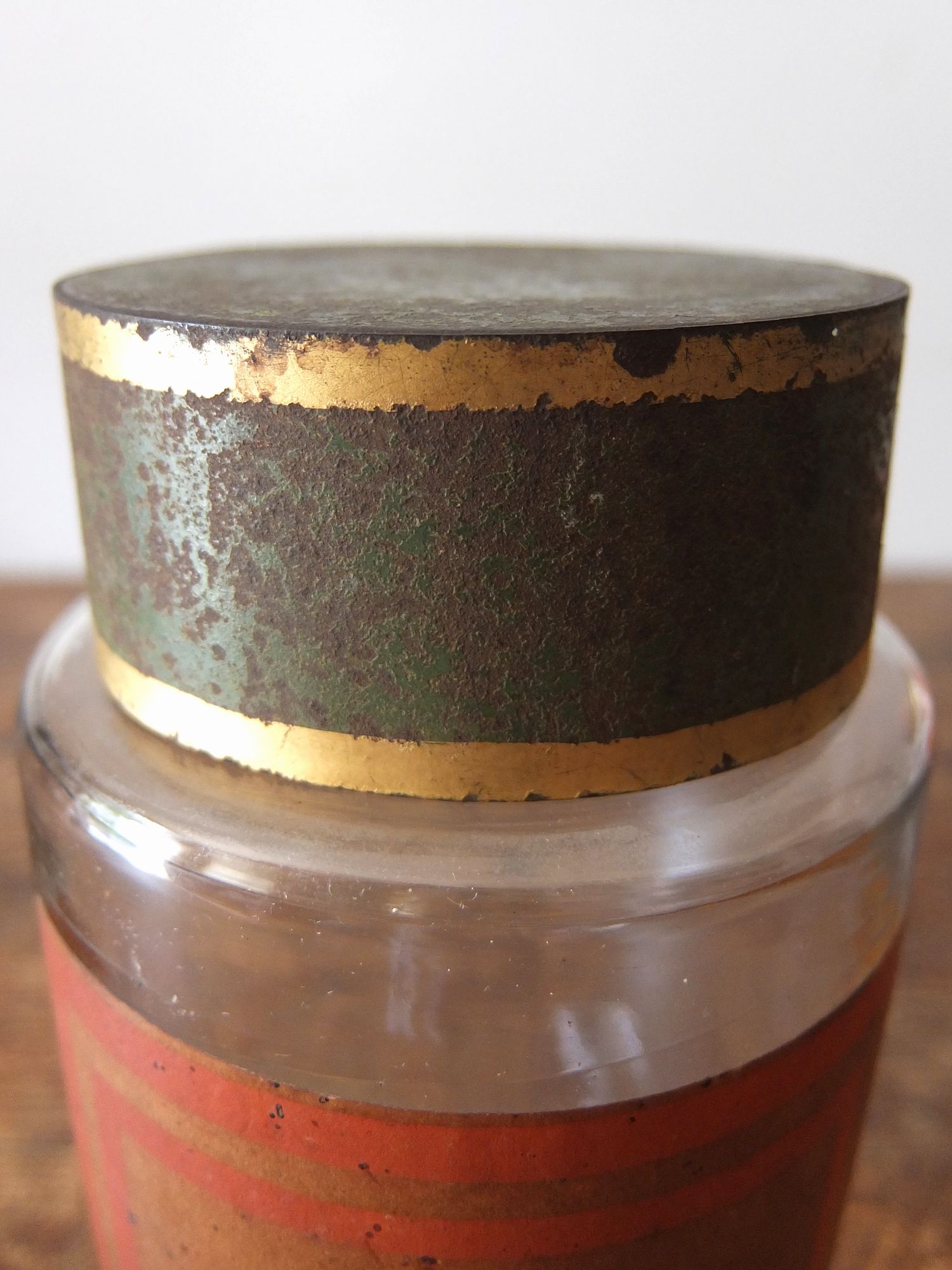 経年を感じさせる蓋とラベルがついた大きめの薬瓶
