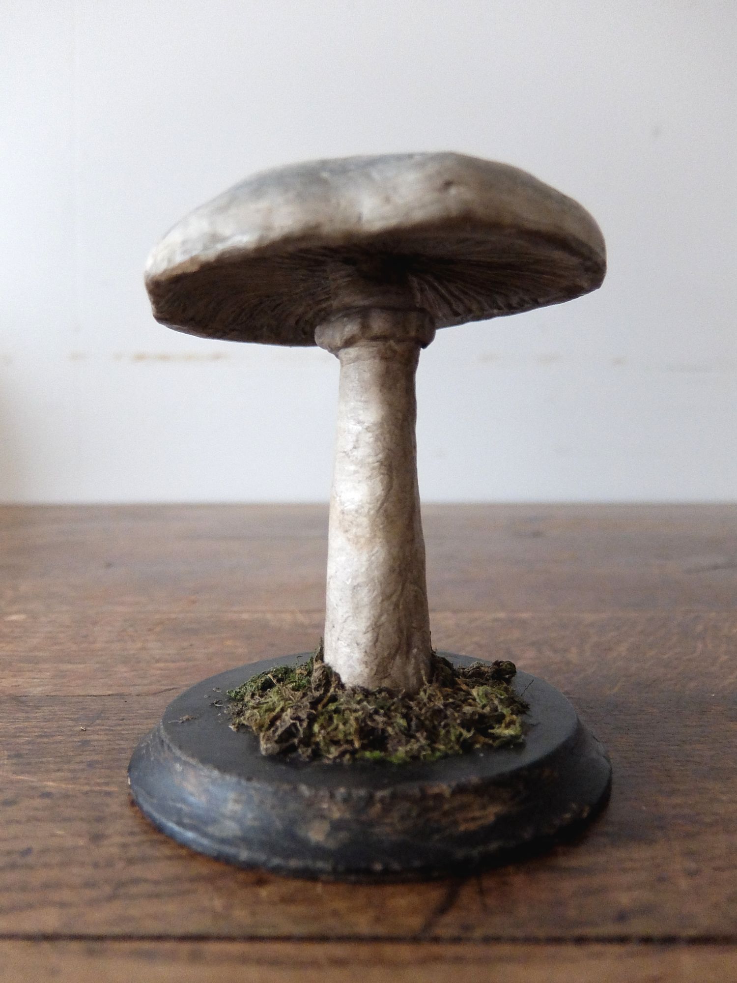 教育機関で使用されていたキノコの模型(土台:木製、キノコ部:パピエに石膏を塗ったもの)