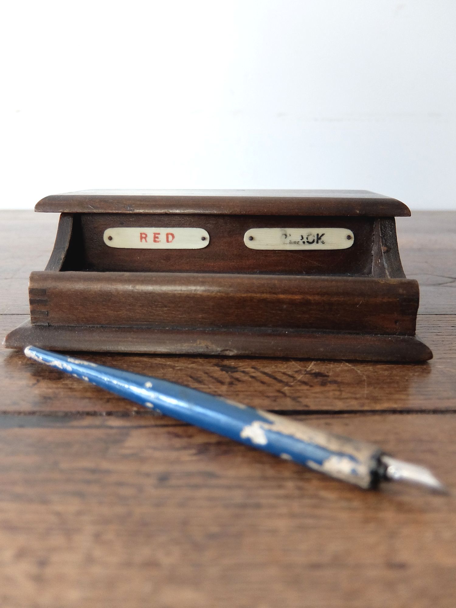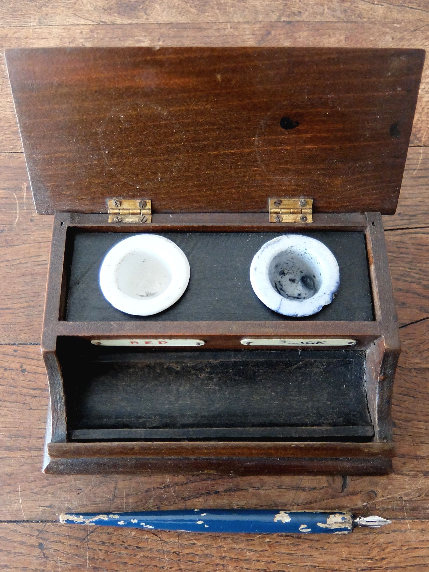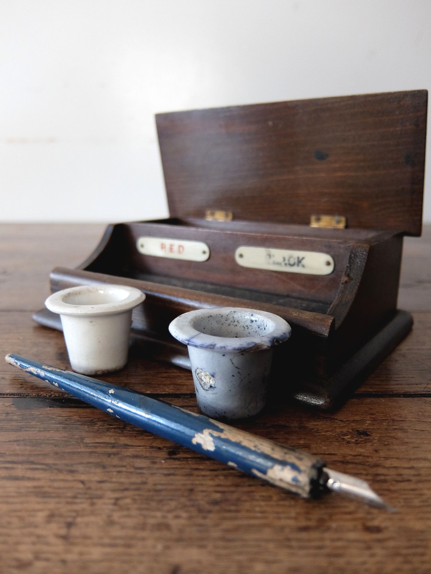 経年の雰囲気が魅力的なペンと機能的なインクスタンド