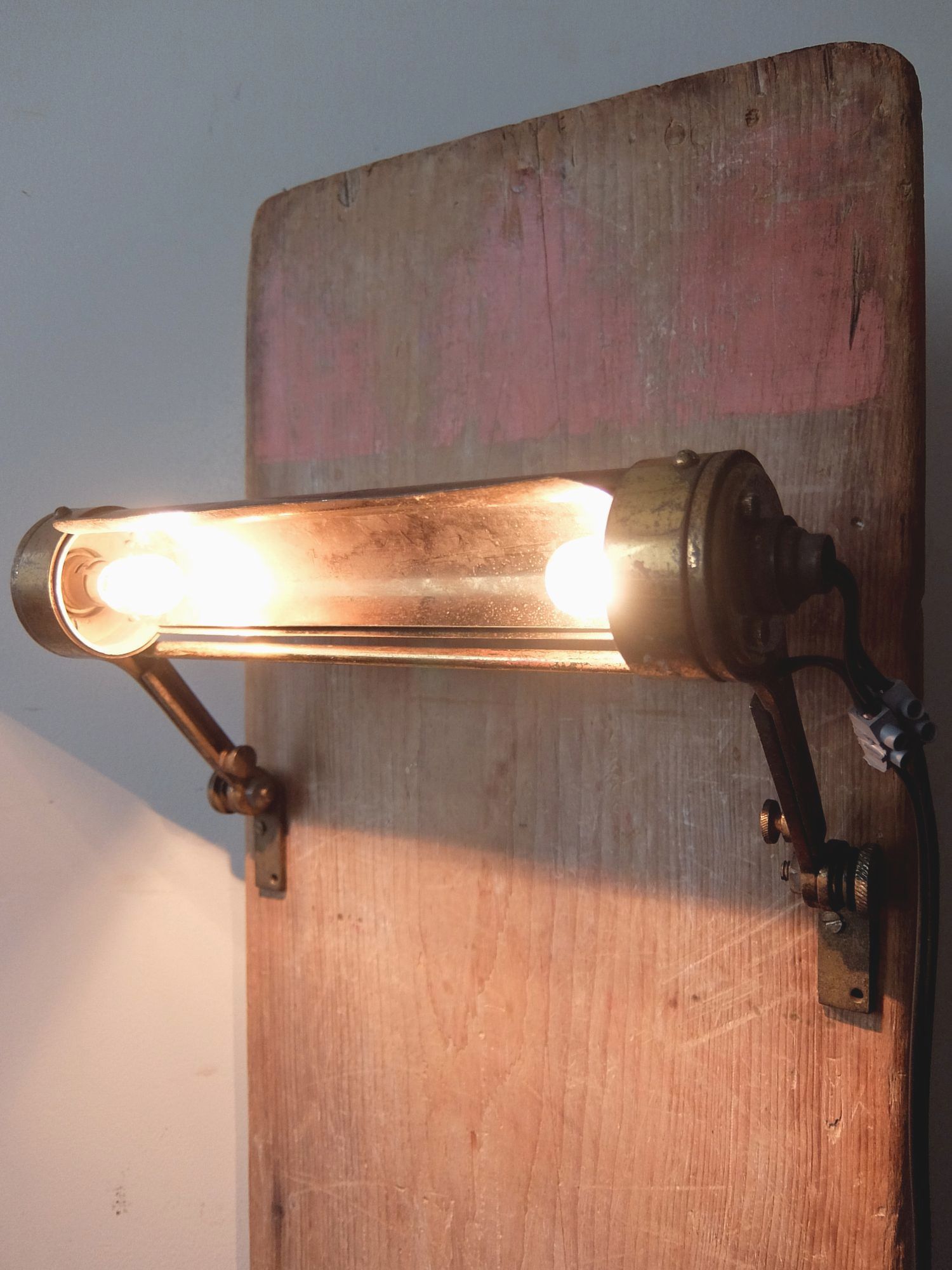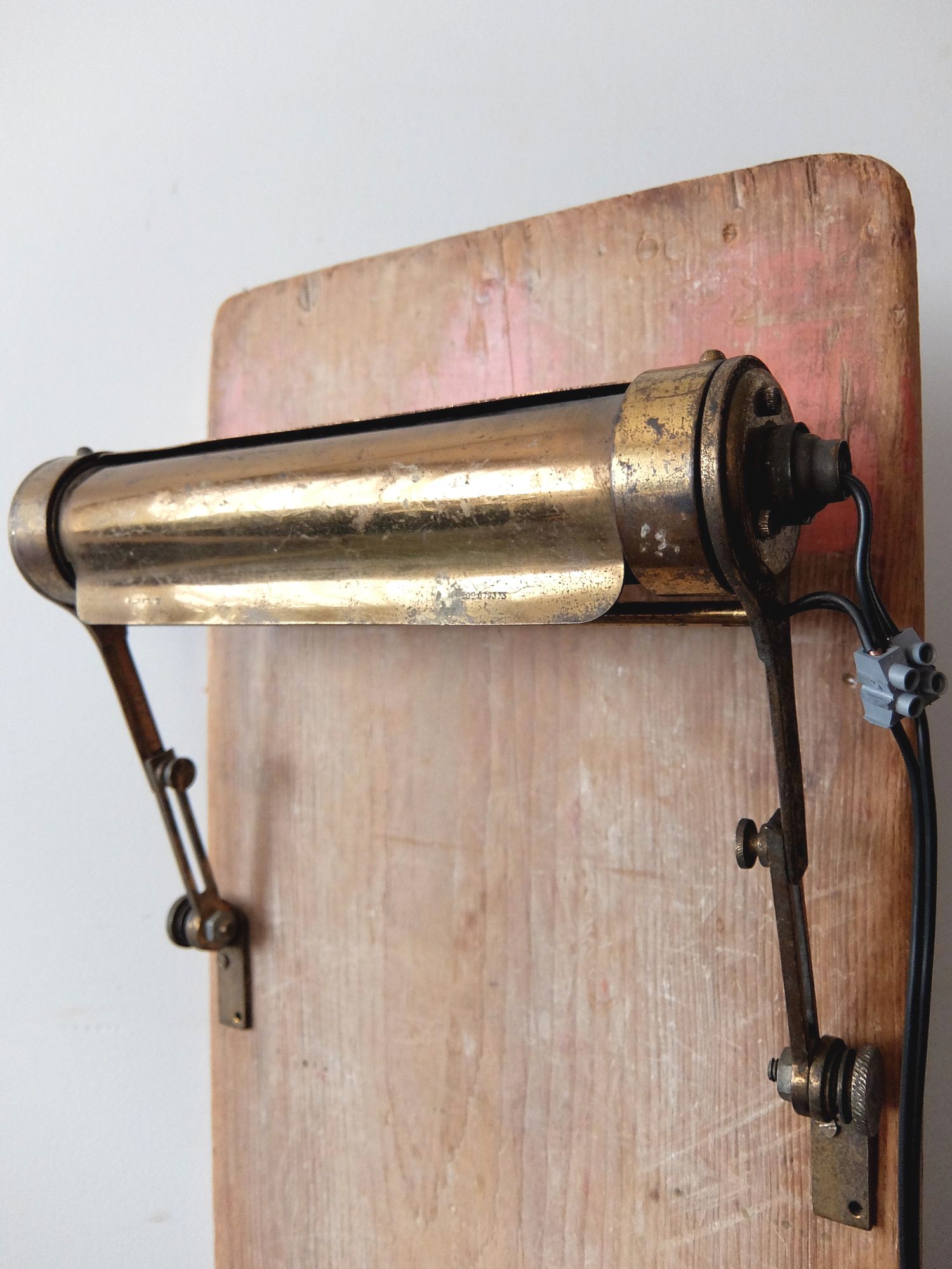 角度や長さが調整可能な真鍮製のピクチャーランプ(2灯)