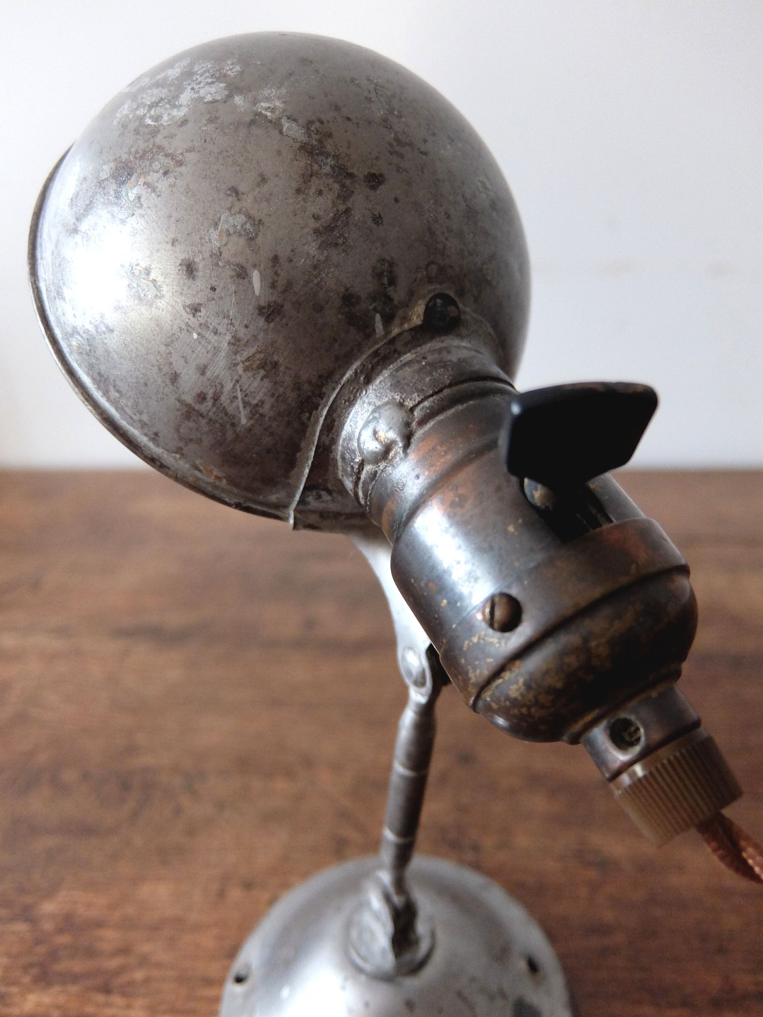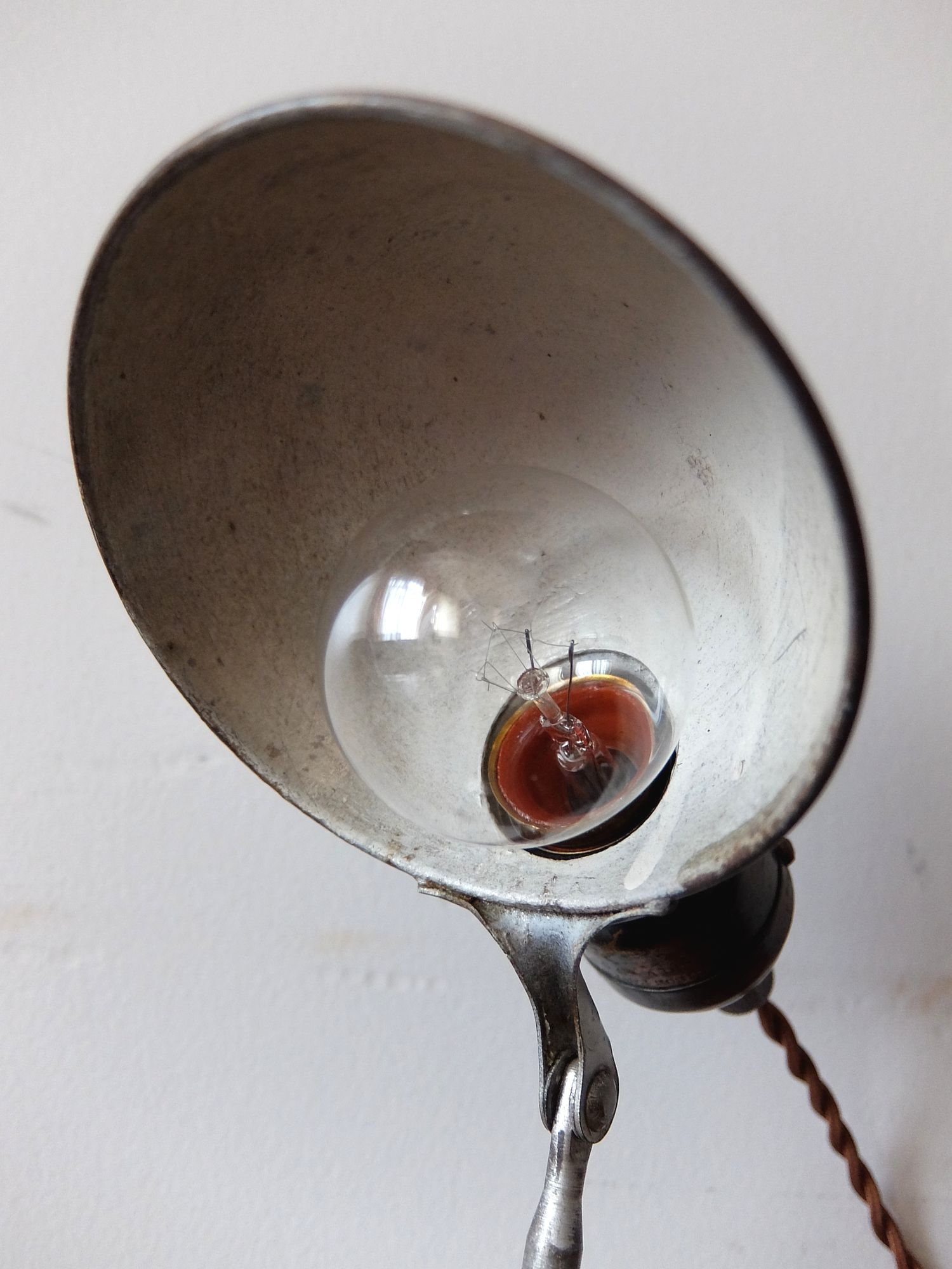 底部のクリップで天板に固定可能な折り畳み式デスクランプ
