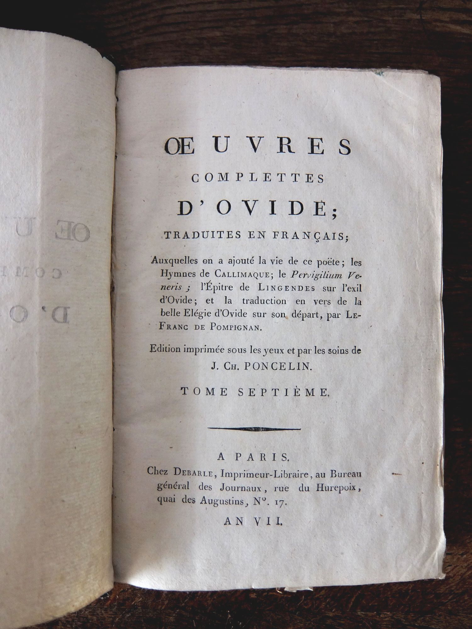 古代ローマの詩人【オウィディウス [Publius Ovidius Naso] (B.C.43~A.D.17)】の作品集 ※フランス語訳 (7冊セット)