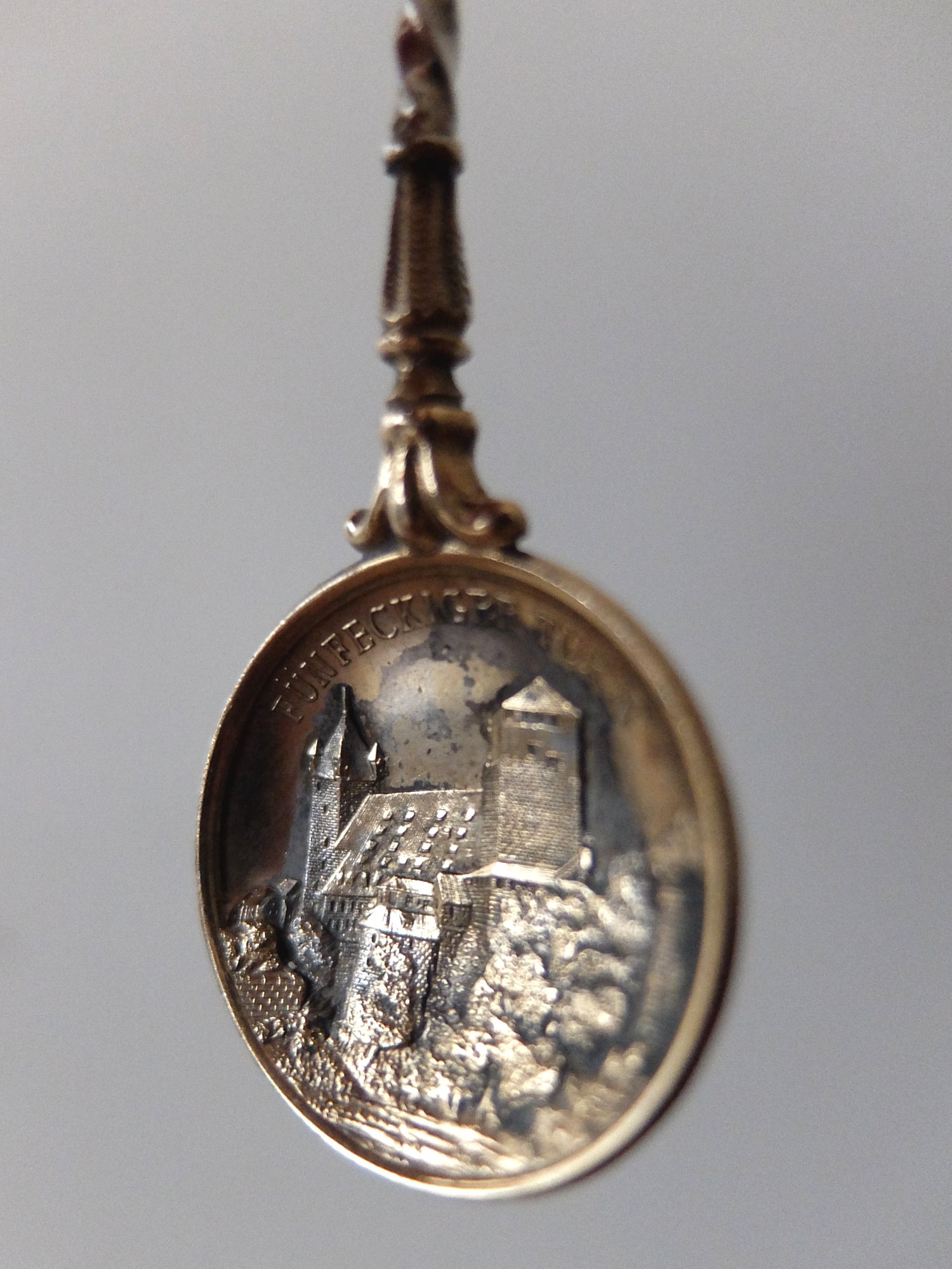 アイアンメイデンの細工が素晴らしいニュルンベルクの街並みが装飾されたスターリングシルバーのスプーン