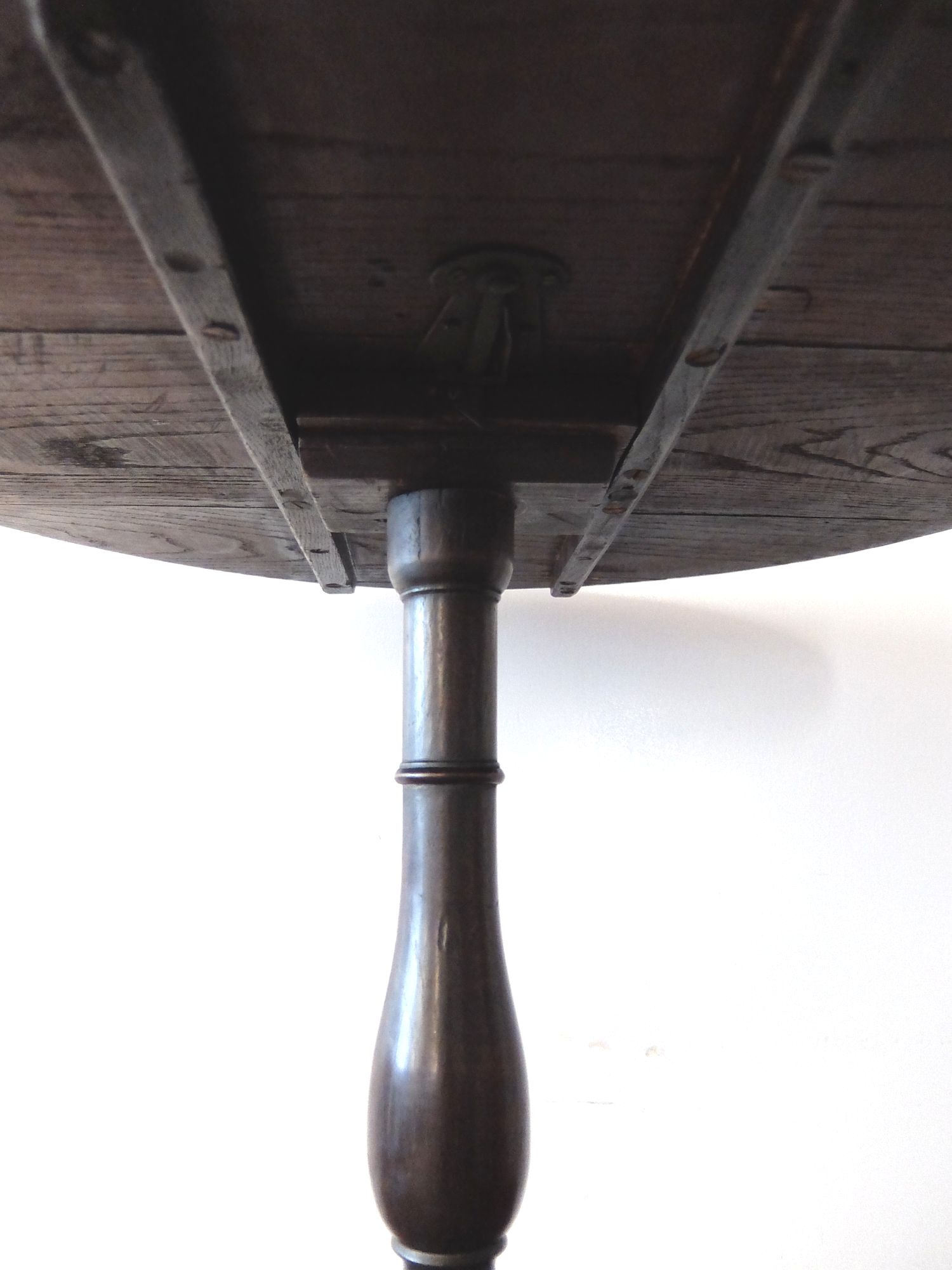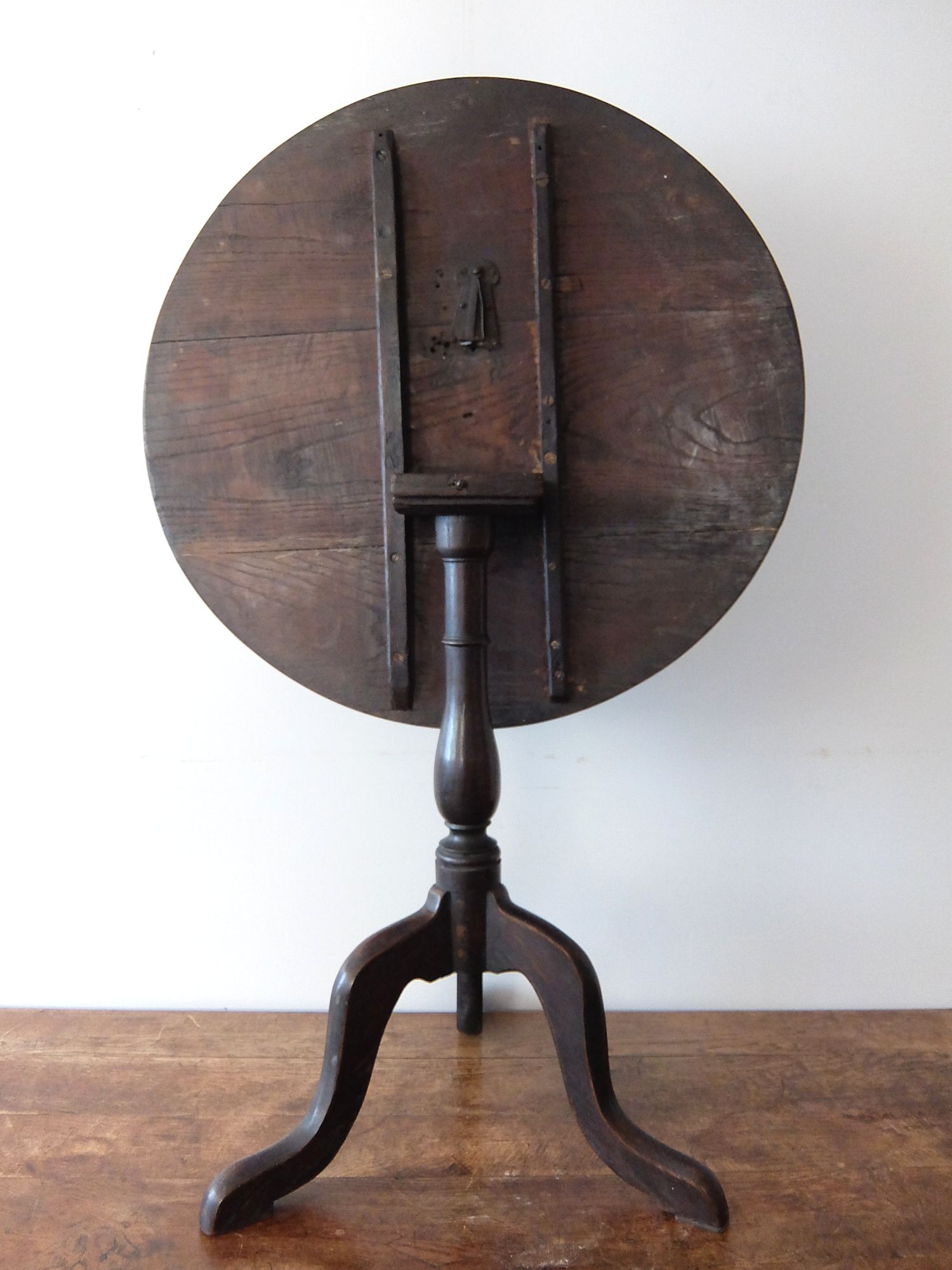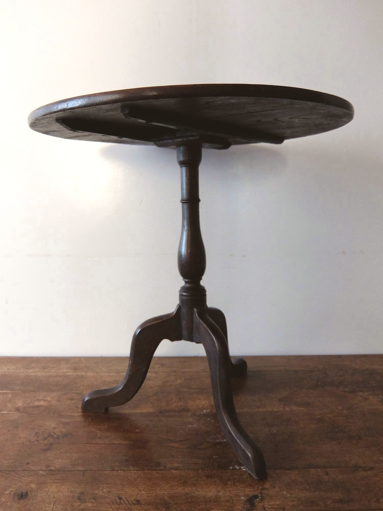 天板がたためるオーク材で作られたトライポッドのサイドテーブル
