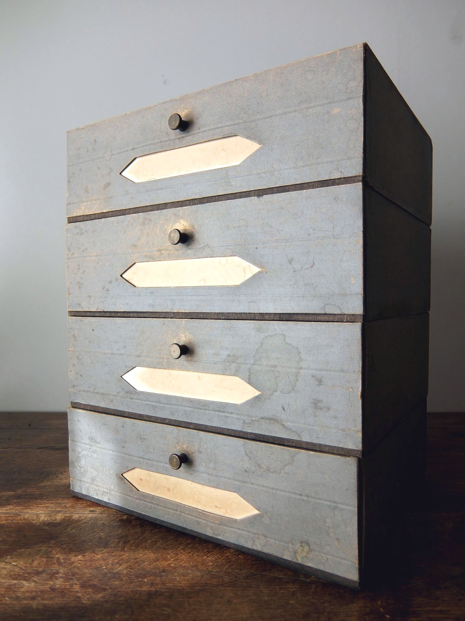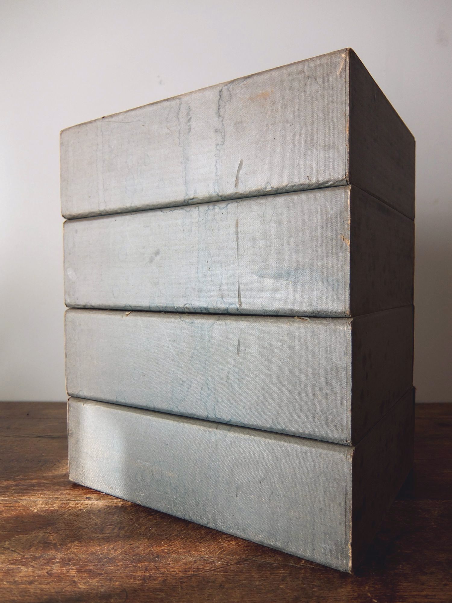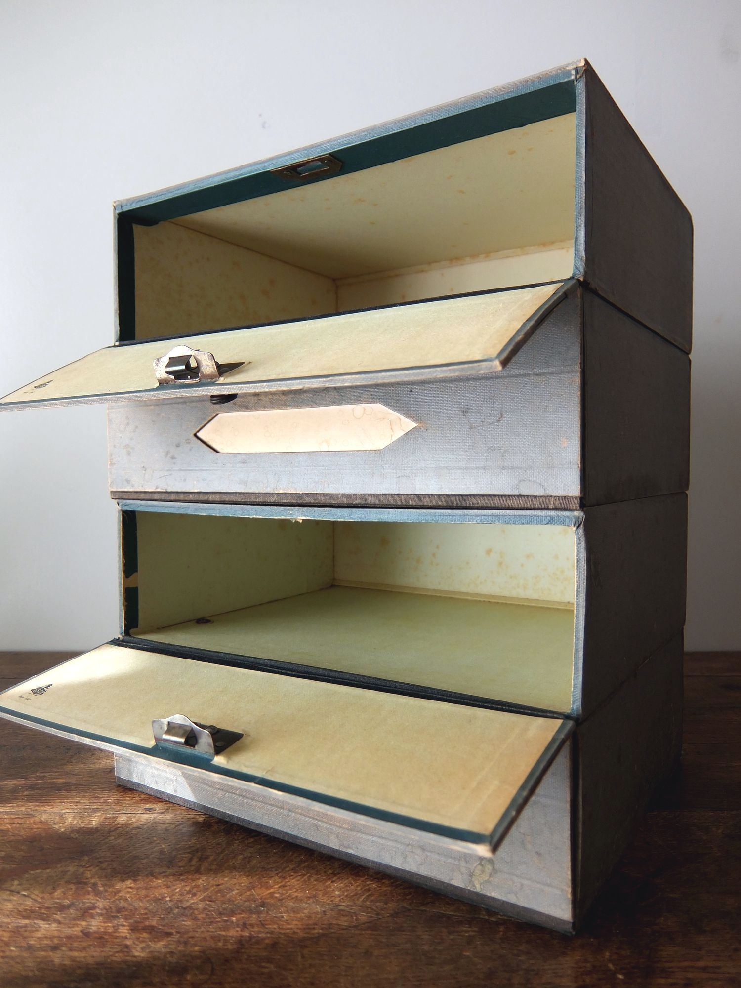 古めかしい色が素敵な紙製のファイルボックス (4個セット)