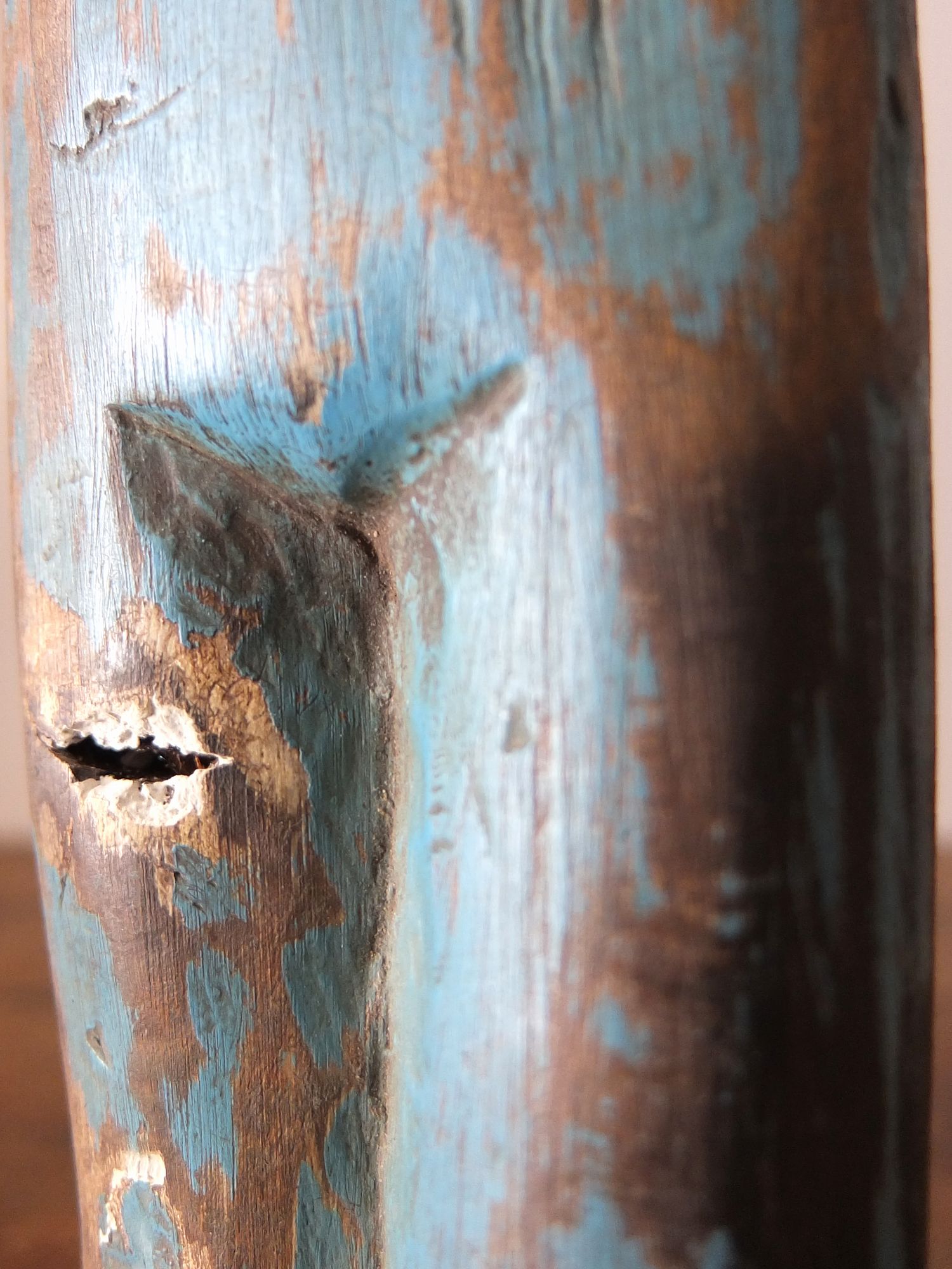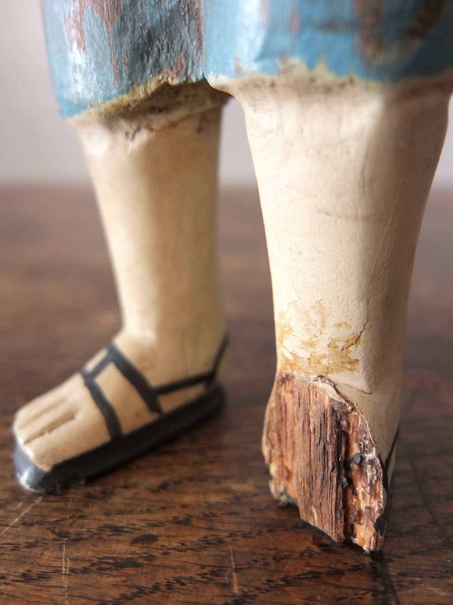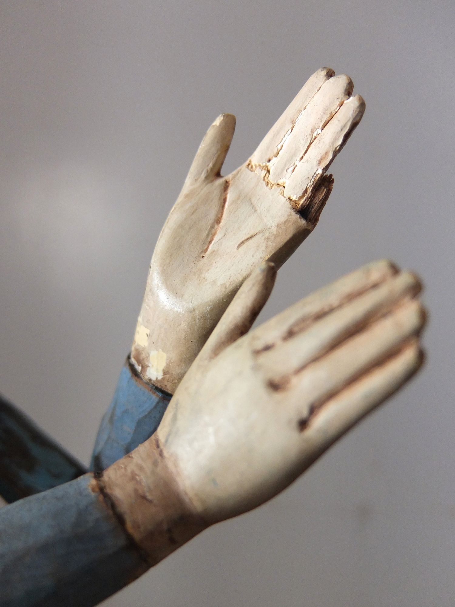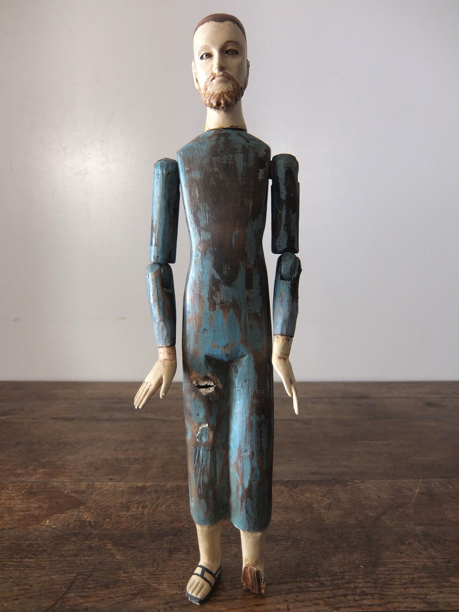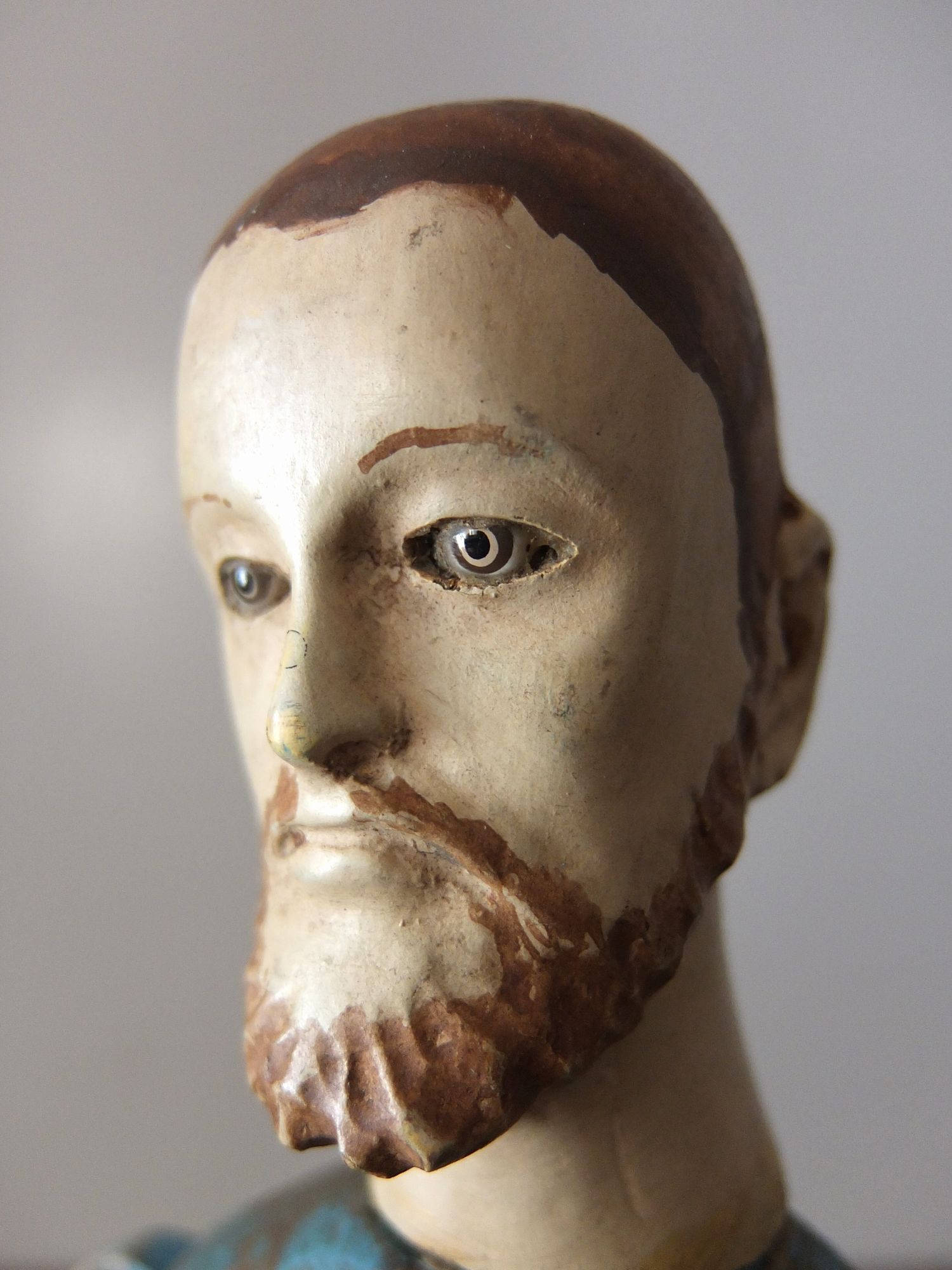 グラスアイズが印象的な木製の聖人像