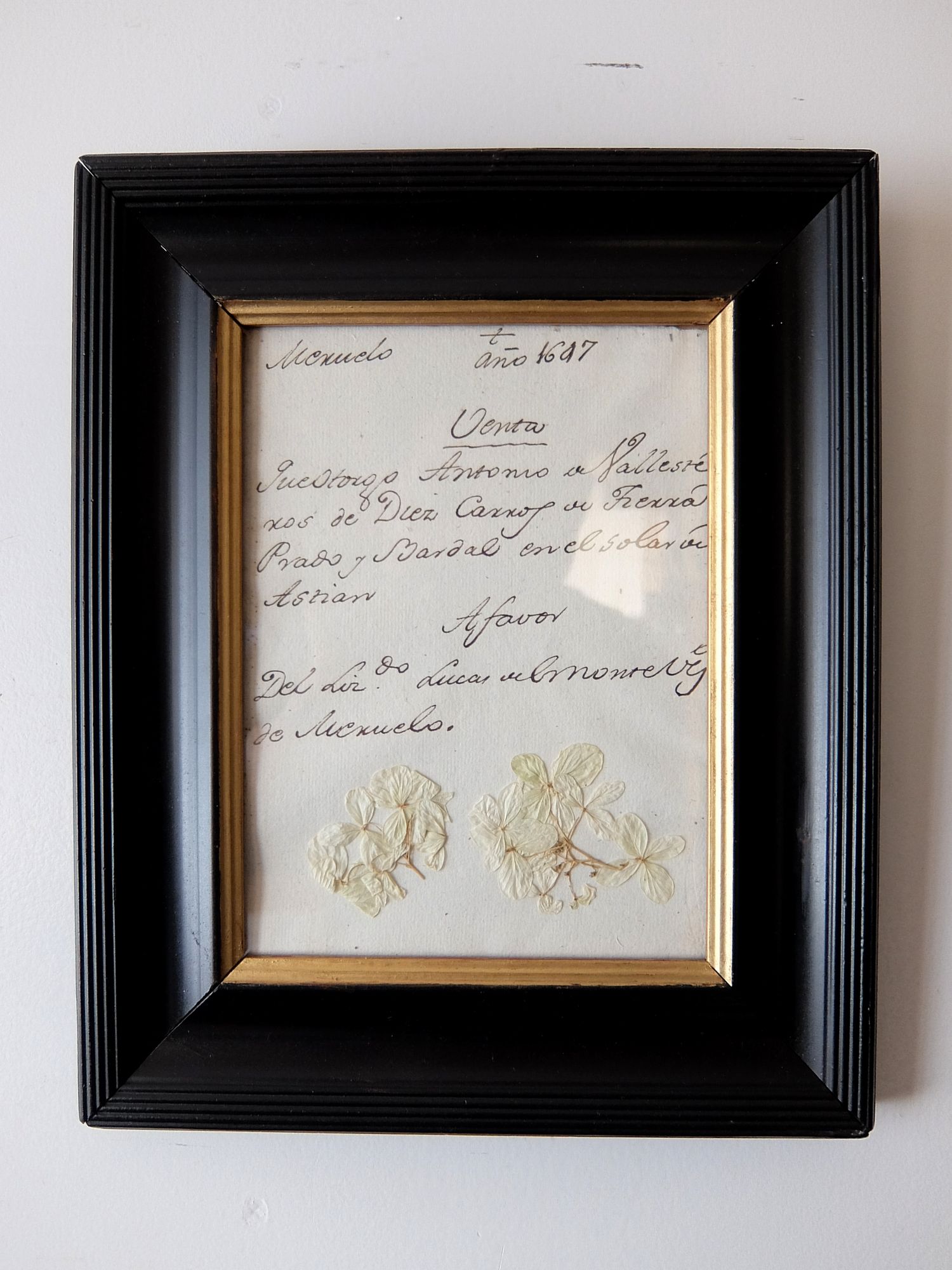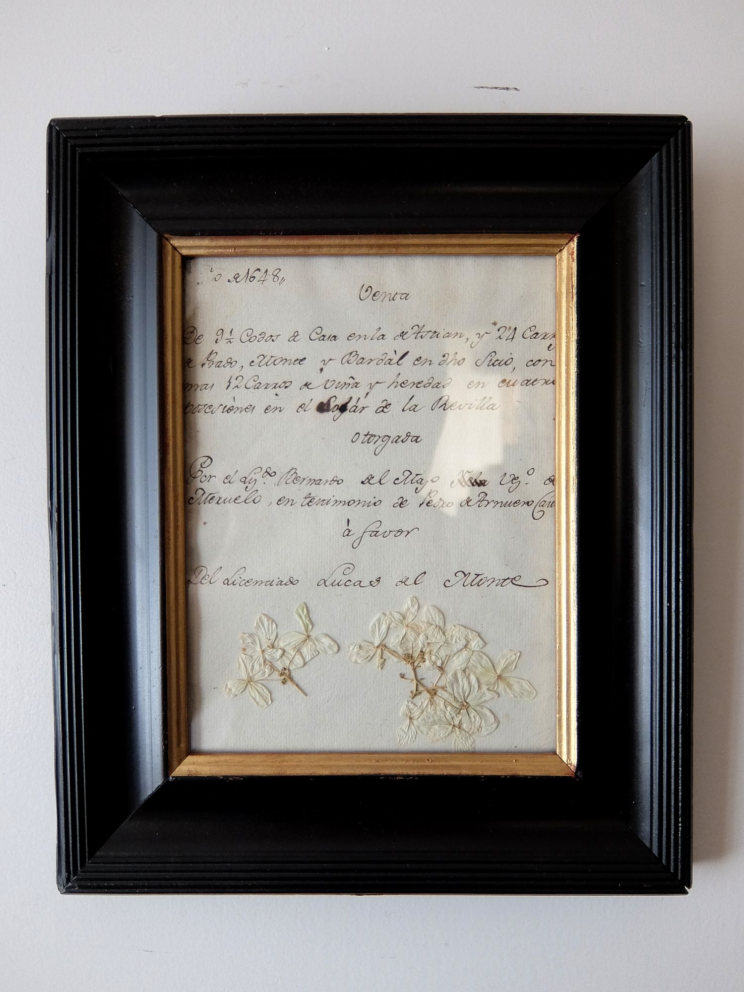 美しい揺らめくガラスがはめ込まれたナポレオンⅢ世様式のフレーム(古紙・ドライフラワー入り)