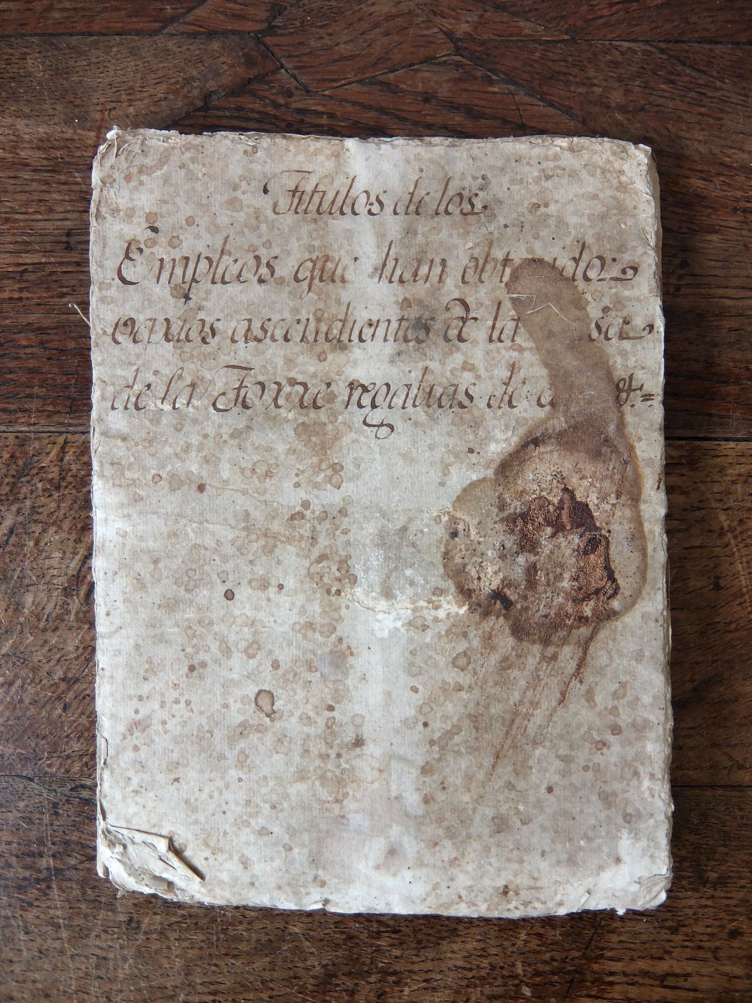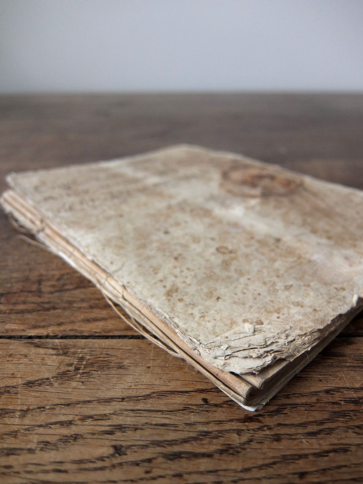 約50枚の手書きの書物が綴られた朽ち果てた古書