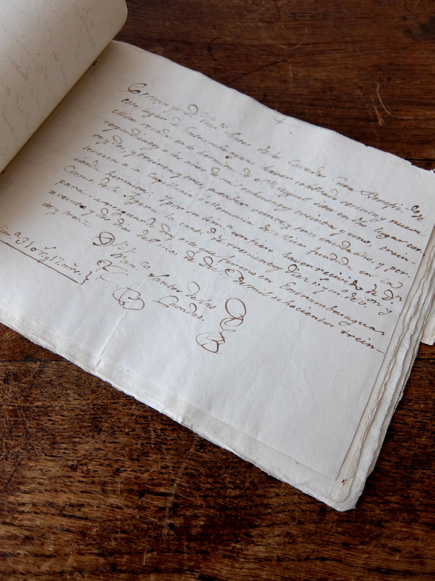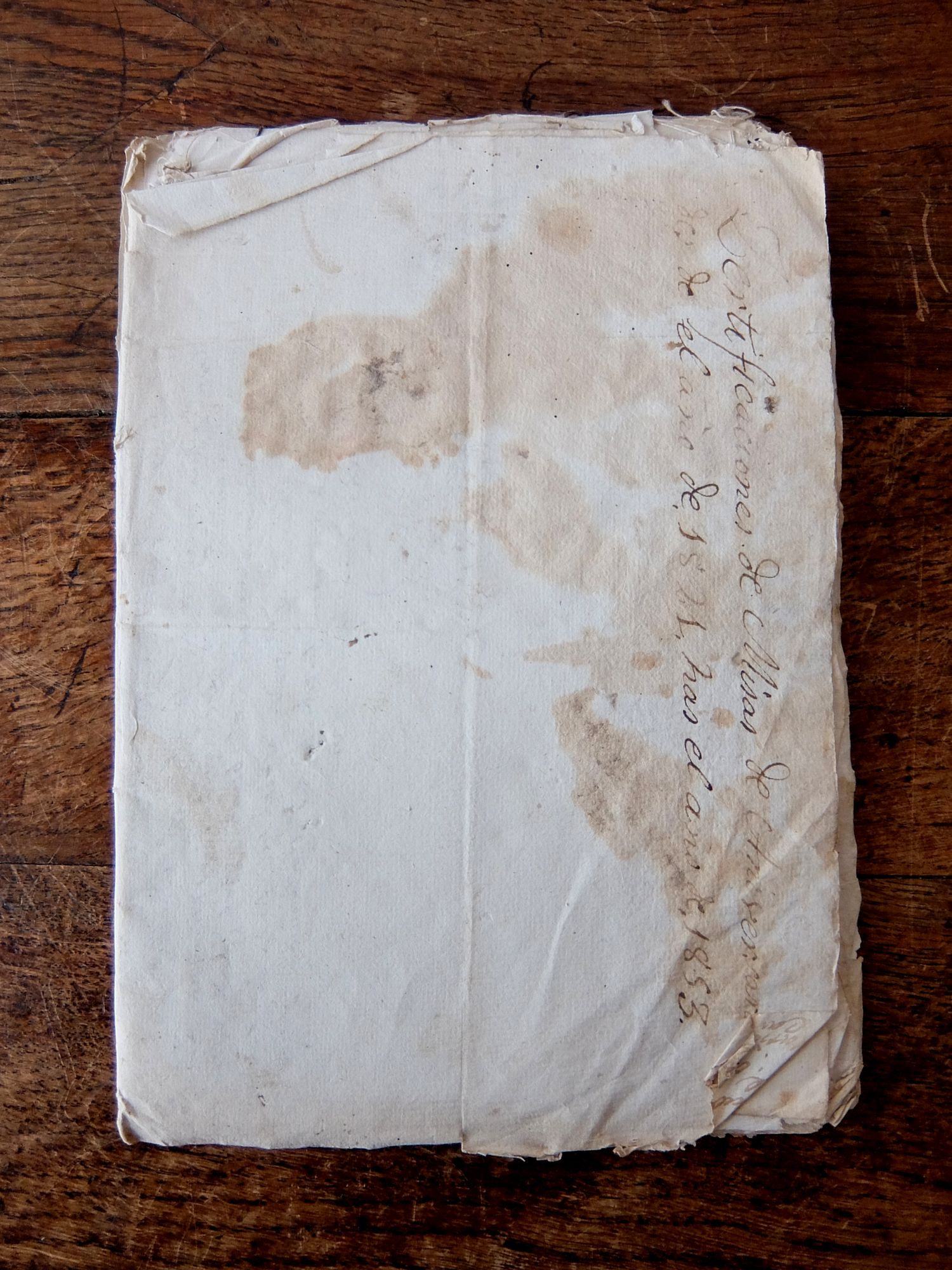 18世紀中期から19世紀初頭に記されたフランス語の書類の束(約32枚程度)