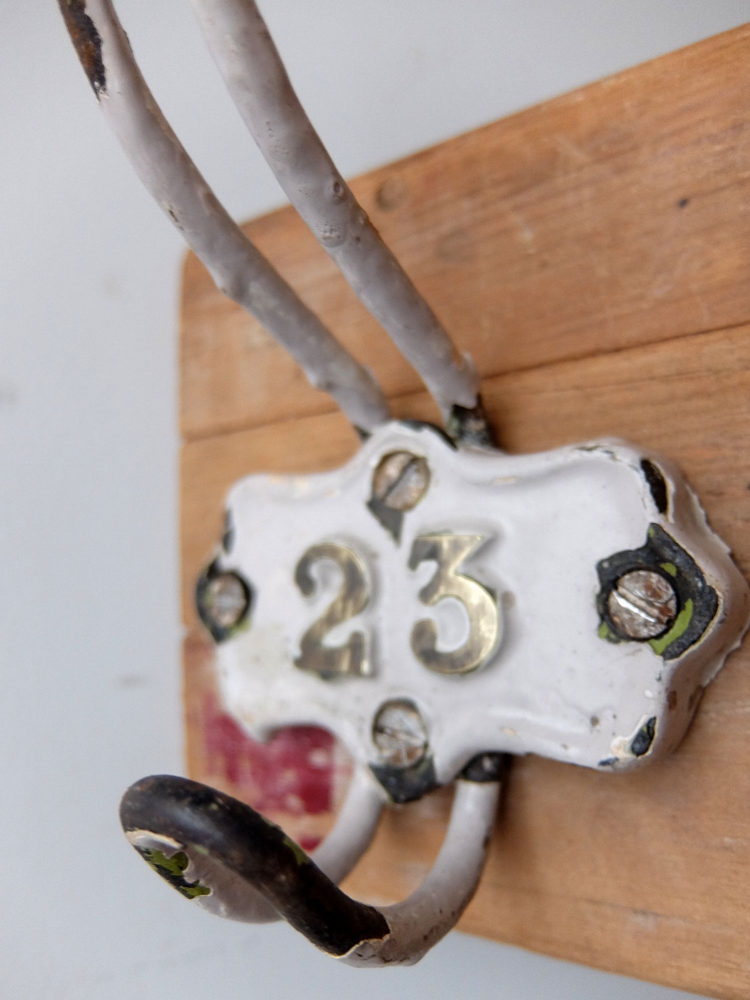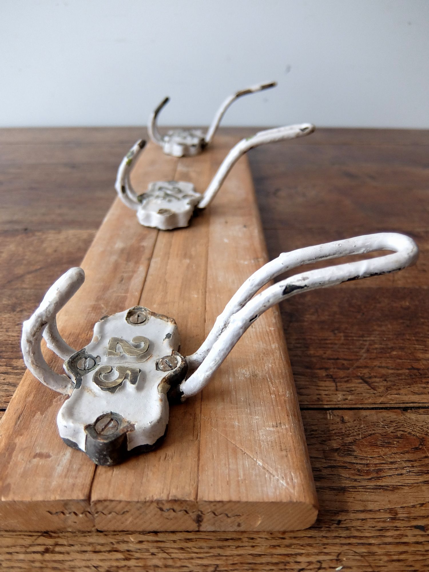 学校で使用されていたナンバリングされた3連フック